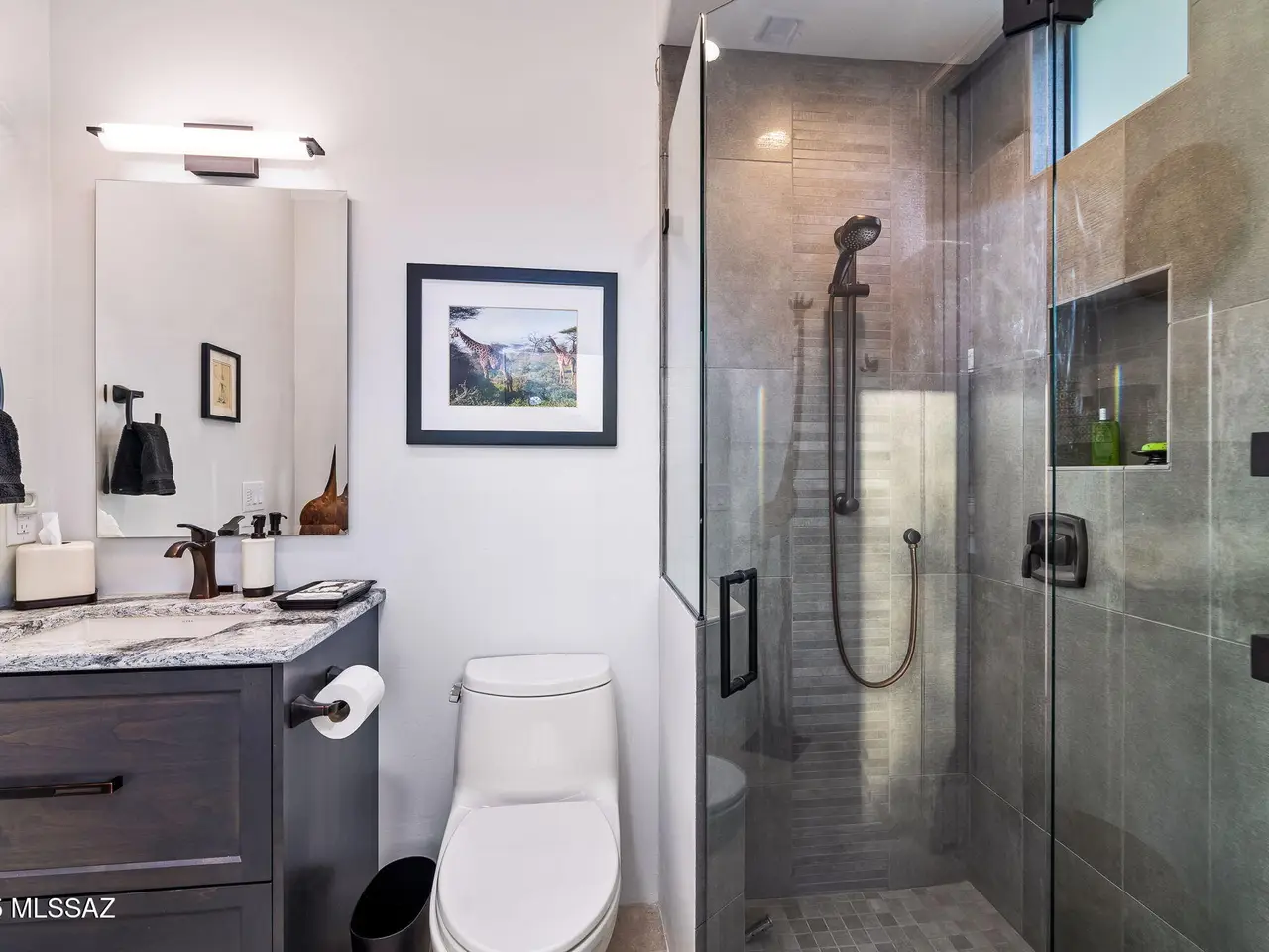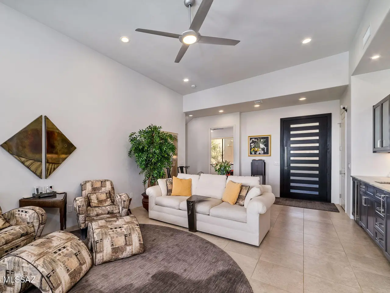 Contemporary desert retreat perched on quiet hillside w/sweeping city & golf course views offers rare privacy & elegance without the restrictions of an HOA. Designed for modern living & entertaining w/clean architectural lines that blend seamlessly w/natural landscape for exceptional curb appeal. Step inside to discover light-filled open spaces w/soaring ceilings, sophisticated finishes & versatile floorplan that invites relaxation or gatherings w/friends. Expansive living area flows to chef's kitchen & dining area while comfortable lounge spaces make everyday living feel special. Exceptional primary suite hosts luxurious bath, kitchenette, custom closet & private patio access all w/valley views. But the true magic is outside-generous patios & terraces expand your living area dramatically
