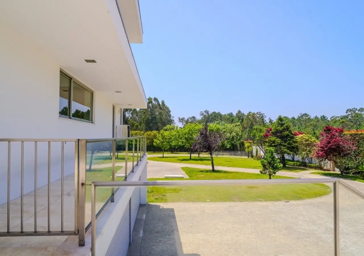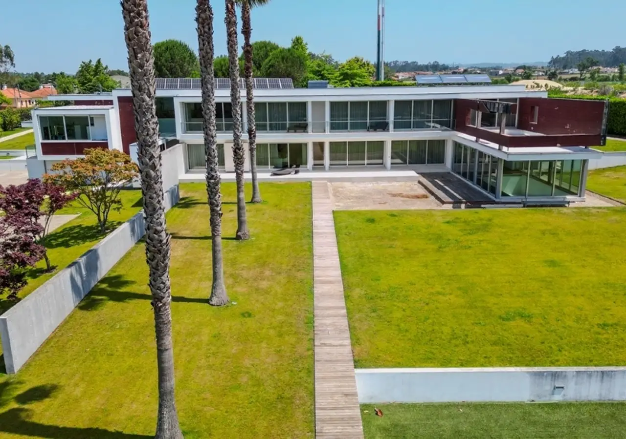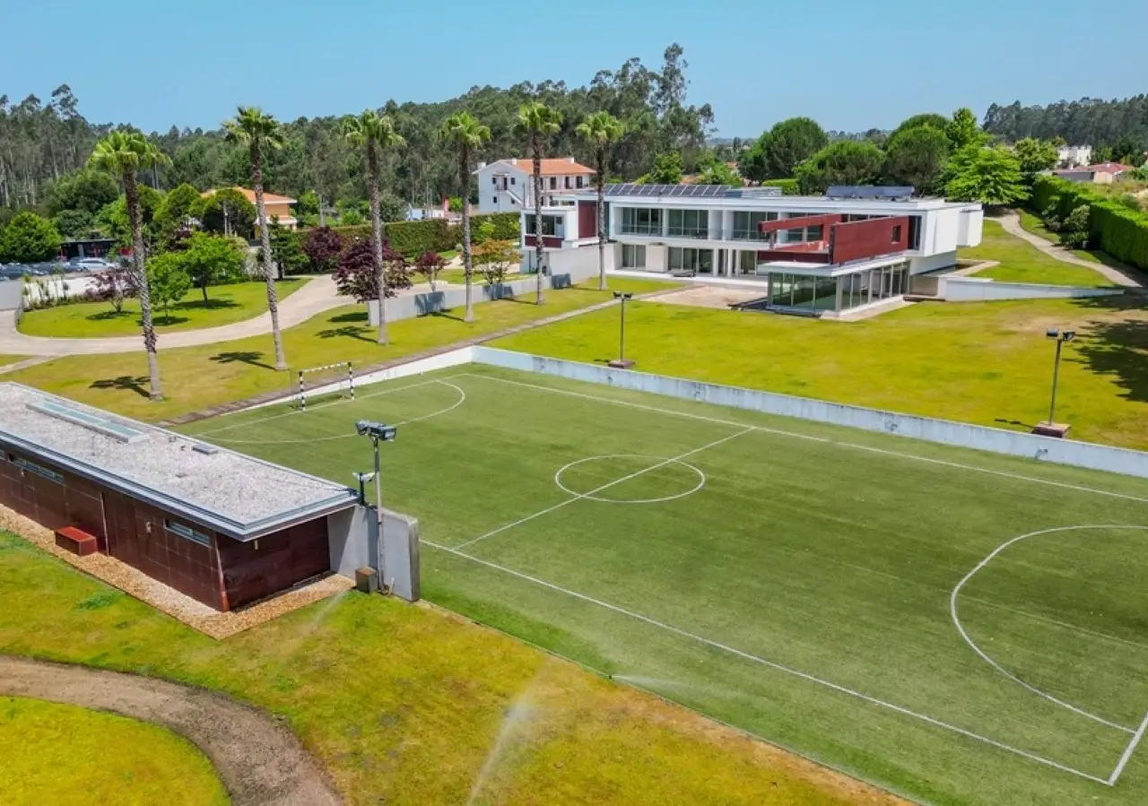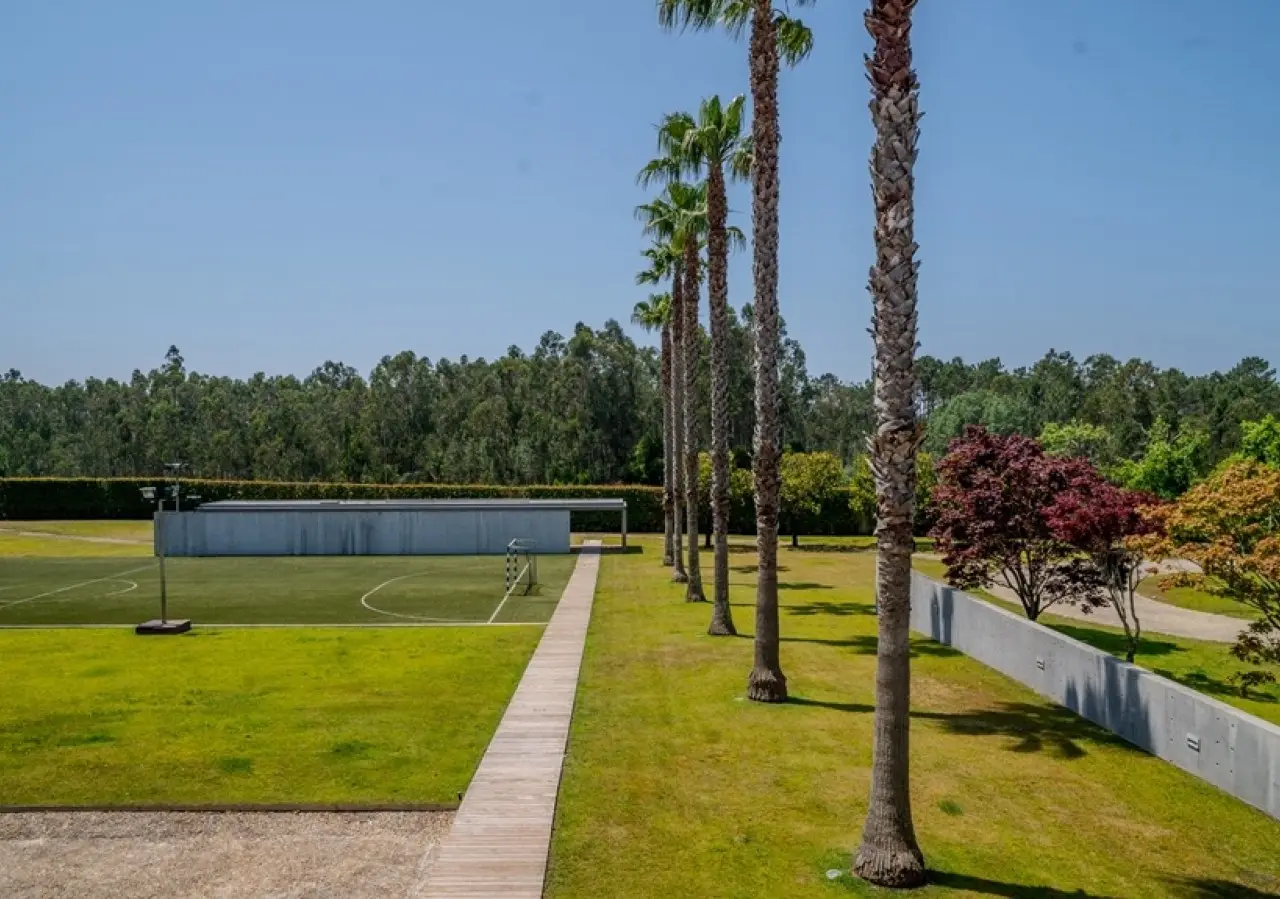 Surrounded by more than 15,000m2 of private gardens, this detached villa is more than a property - it's a manifesto of elegance, space and serenity. Set with rare sensitivity in the heart of a verdant landscape, this residence offers a lifestyle that transcends everyday life: here, luxury lives in harmony with nature and every detail has been designed to surprise and inspire. The journey begins with a first overwhelming visual impact: a contemporary architecture of sober features and well-proportioned volumes, framed by a perfectly manicured lawn that stretches as far as the eye can see. The house, flooded with natural light on all four fronts, gradually reveals itself - a constant invitation to enjoy the interior and exterior with equal pleasure. At the heart of the property, the social area unfolds with grandeur and lightness: the living room with fireplace and direct connection to the garden merges with the endless green landscape.The dining room, although separate, is surrounded by the practical and elegant kitchen, which is as inviting for day-to-day routine as it is for receiving guests. This villa also includes an area dedicated to entertaining and an outdoor annex with a multi-functional space - ideal for leisure time, a gym or a lounge - further extending the experience of the house beyond its walls. The private area is a true refuge within the refuge. The four spacious, light-filled suites all have walk-in closets and have been designed to guarantee absolute comfort, refinement and privacy. Each room is a small universe of well-being, where noble wood finishes, soft tones and natural light create a deeply welcoming and elegant atmosphere. Outside, the setting is worthy of a private resort. The swimming pool, surrounded by a sunny deck, invites you to long days of tranquillity and conviviality. A grass soccer field and ample leisure areas are spread throughout the grounds, creating distinct zones to enjoy at the rhythm of each season and mood. All this is wrapped in a frame of silence, privacy and incomparable natural beauty. Despite the feeling of seclusion, the location is surprisingly central. Just a few minutes from the main roads, all the essential services and less than half an hour from the center of Porto, this villa combines the best of both worlds: the serenity of the countryside and the convenience of the city. CHARACTERISTICS: Plot Area: 15 685 m2 | 168 832 sq ft Deployment Area: 804 m2 | 8 654 sq ft Building Area: 1 000 m2 | 10 764 sq ft Bedrooms: 4 Bathrooms: 6 Garage: 4 Energy efficiency: D