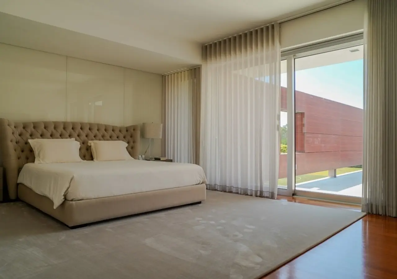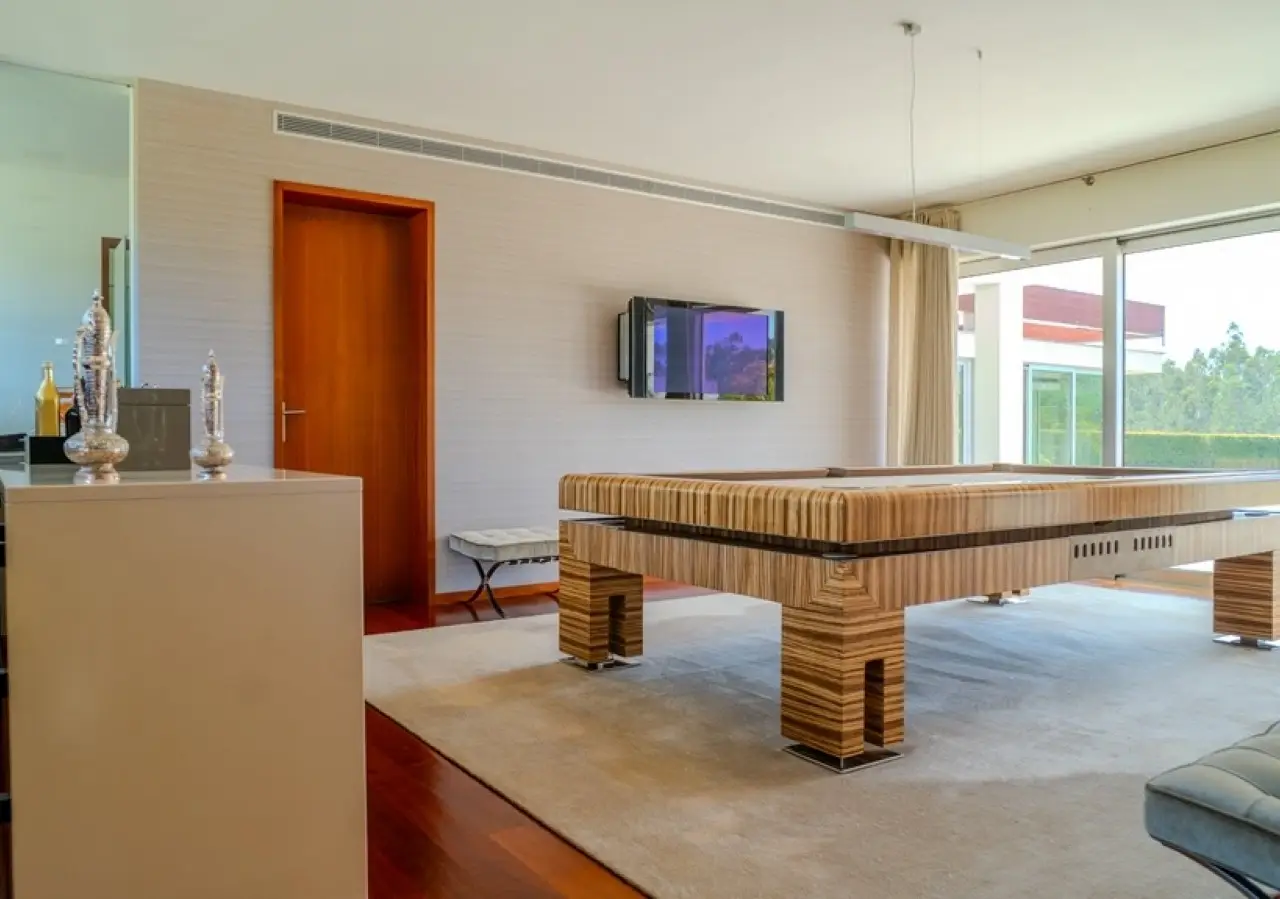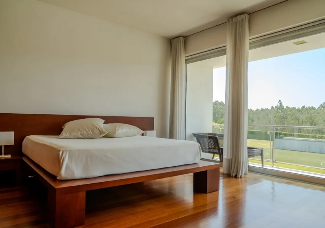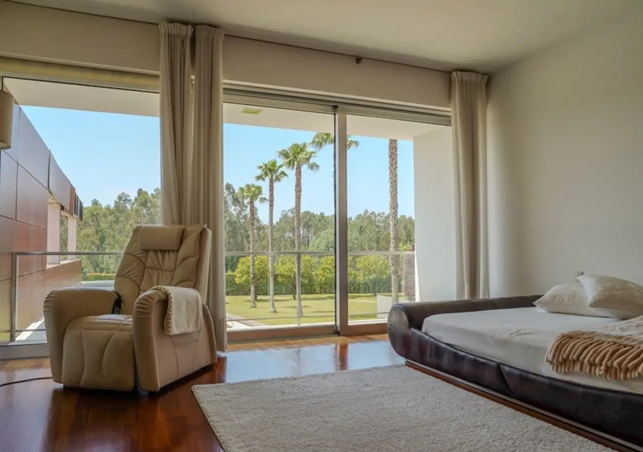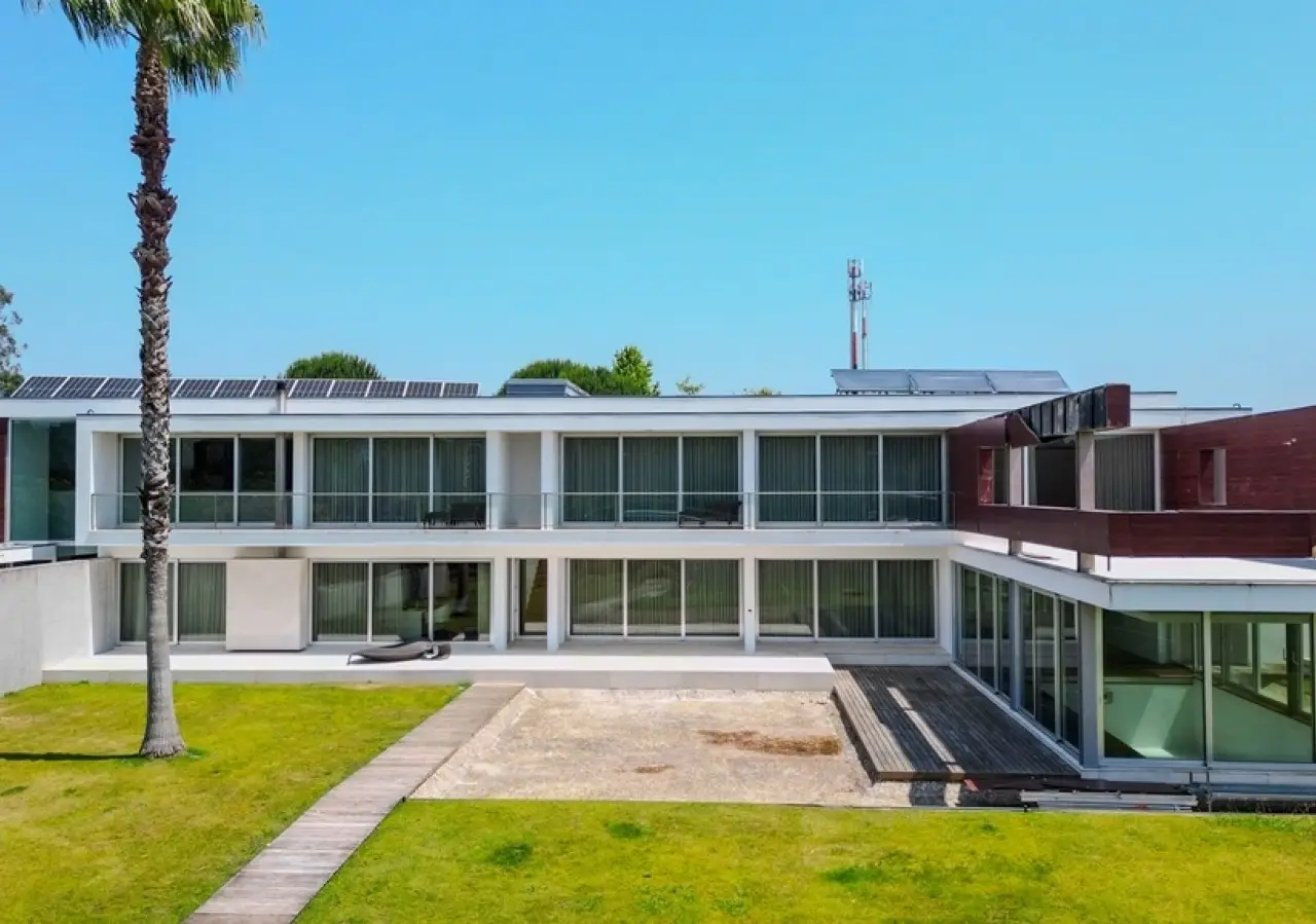 Surrounded by more than 15,000m2 of private gardens, this detached villa is more than a property - it's a manifesto of elegance, space and serenity. Set with rare sensitivity in the heart of a verdant landscape, this residence offers a lifestyle that transcends everyday life: here, luxury lives in harmony with nature and every detail has been designed to surprise and inspire. The journey begins with a first overwhelming visual impact: a contemporary architecture of sober features and well-proportioned volumes, framed by a perfectly manicured lawn that stretches as far as the eye can see. The house, flooded with natural light on all four fronts, gradually reveals itself - a constant invitation to enjoy the interior and exterior with equal pleasure. At the heart of the property, the social area unfolds with grandeur and lightness: the living room with fireplace and direct connection to the garden merges with the endless green landscape.The dining room, although separate, is surrounded by the practical and elegant kitchen, which is as inviting for day-to-day routine as it is for receiving guests. This villa also includes an area dedicated to entertaining and an outdoor annex with a multi-functional space - ideal for leisure time, a gym or a lounge - further extending the experience of the house beyond its walls. The private area is a true refuge within the refuge. The four spacious, light-filled suites all have walk-in closets and have been designed to guarantee absolute comfort, refinement and privacy. Each room is a small universe of well-being, where noble wood finishes, soft tones and natural light create a deeply welcoming and elegant atmosphere. Outside, the setting is worthy of a private resort. The swimming pool, surrounded by a sunny deck, invites you to long days of tranquillity and conviviality. A grass soccer field and ample leisure areas are spread throughout the grounds, creating distinct zones to enjoy at the rhythm of each season and mood. All this is wrapped in a frame of silence, privacy and incomparable natural beauty. Despite the feeling of seclusion, the location is surprisingly central. Just a few minutes from the main roads, all the essential services and less than half an hour from the center of Porto, this villa combines the best of both worlds: the serenity of the countryside and the convenience of the city. CHARACTERISTICS: Plot Area: 15 685 m2 | 168 832 sq ft Deployment Area: 804 m2 | 8 654 sq ft Building Area: 1 000 m2 | 10 764 sq ft Bedrooms: 4 Bathrooms: 6 Garage: 4 Energy efficiency: D