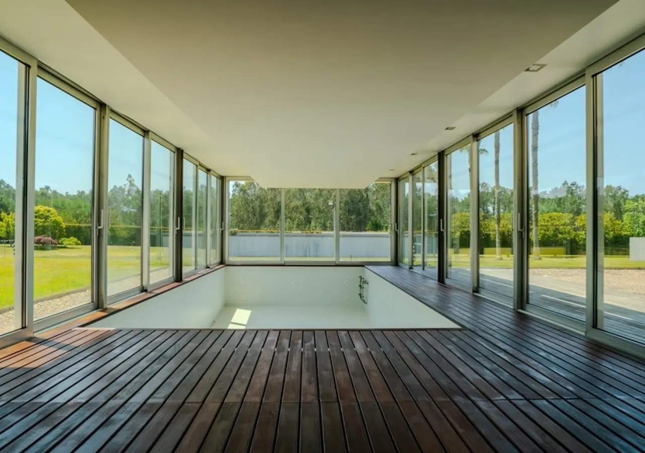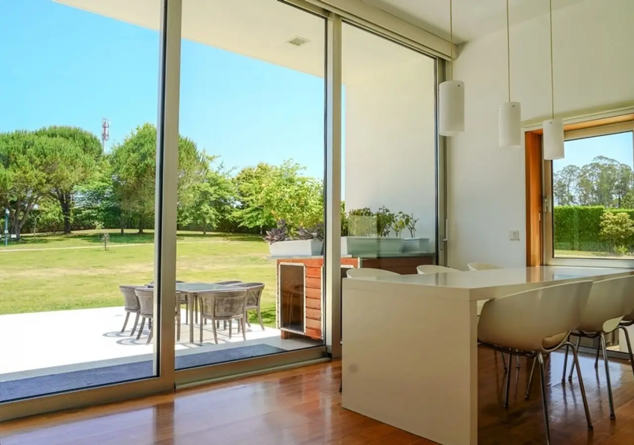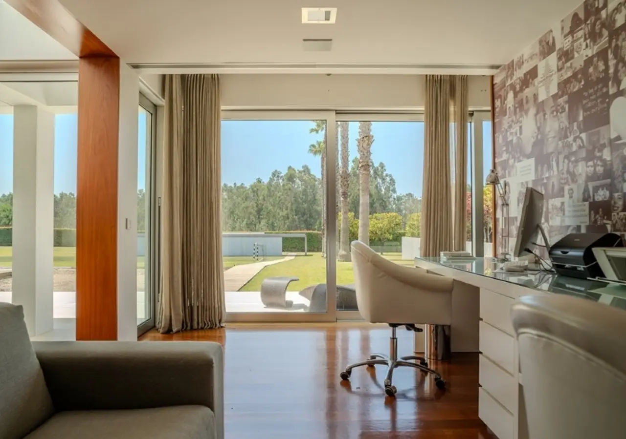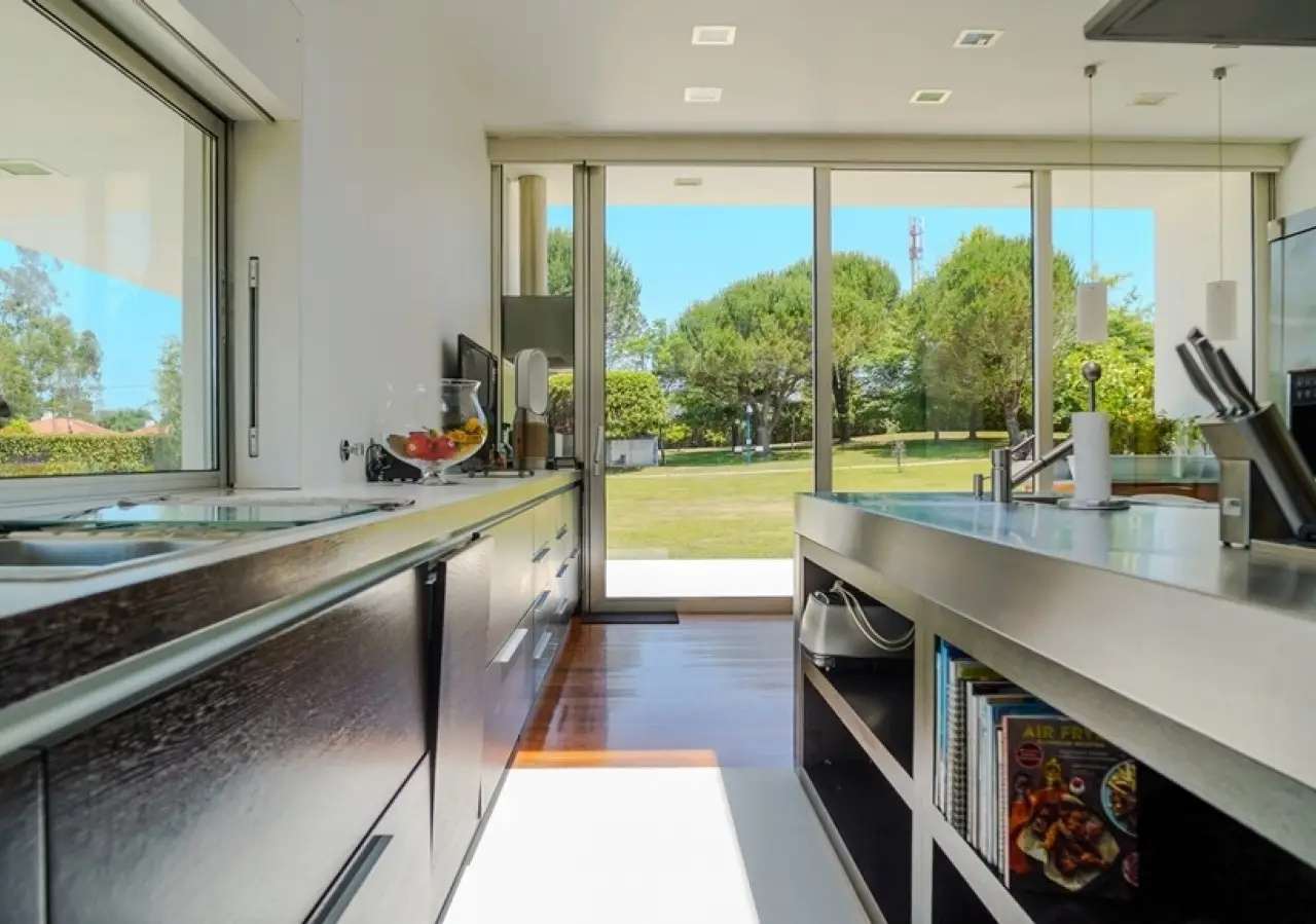 Surrounded by more than 15,000m2 of private gardens, this detached villa is more than a property - it's a manifesto of elegance, space and serenity. Set with rare sensitivity in the heart of a verdant landscape, this residence offers a lifestyle that transcends everyday life: here, luxury lives in harmony with nature and every detail has been designed to surprise and inspire. The journey begins with a first overwhelming visual impact: a contemporary architecture of sober features and well-proportioned volumes, framed by a perfectly manicured lawn that stretches as far as the eye can see. The house, flooded with natural light on all four fronts, gradually reveals itself - a constant invitation to enjoy the interior and exterior with equal pleasure. At the heart of the property, the social area unfolds with grandeur and lightness: the living room with fireplace and direct connection to the garden merges with the endless green landscape.The dining room, although separate, is surrounded by the practical and elegant kitchen, which is as inviting for day-to-day routine as it is for receiving guests. This villa also includes an area dedicated to entertaining and an outdoor annex with a multi-functional space - ideal for leisure time, a gym or a lounge - further extending the experience of the house beyond its walls. The private area is a true refuge within the refuge. The four spacious, light-filled suites all have walk-in closets and have been designed to guarantee absolute comfort, refinement and privacy. Each room is a small universe of well-being, where noble wood finishes, soft tones and natural light create a deeply welcoming and elegant atmosphere. Outside, the setting is worthy of a private resort. The swimming pool, surrounded by a sunny deck, invites you to long days of tranquillity and conviviality. A grass soccer field and ample leisure areas are spread throughout the grounds, creating distinct zones to enjoy at the rhythm of each season and mood. All this is wrapped in a frame of silence, privacy and incomparable natural beauty. Despite the feeling of seclusion, the location is surprisingly central. Just a few minutes from the main roads, all the essential services and less than half an hour from the center of Porto, this villa combines the best of both worlds: the serenity of the countryside and the convenience of the city. CHARACTERISTICS: Plot Area: 15 685 m2 | 168 832 sq ft Deployment Area: 804 m2 | 8 654 sq ft Building Area: 1 000 m2 | 10 764 sq ft Bedrooms: 4 Bathrooms: 6 Garage: 4 Energy efficiency: D