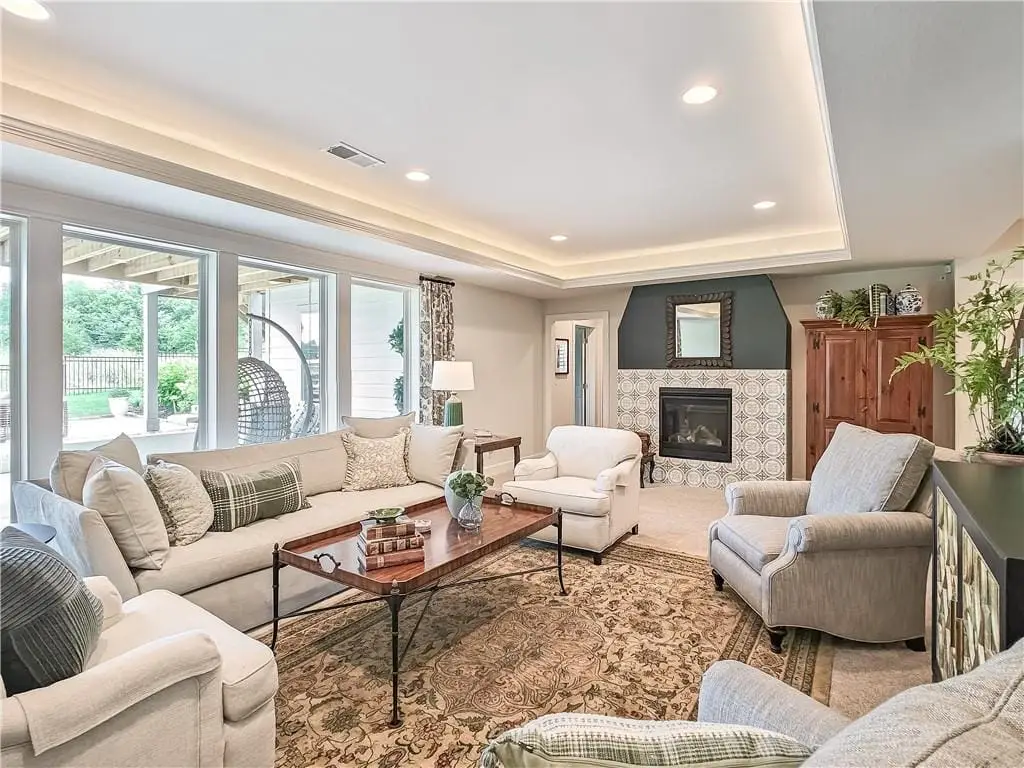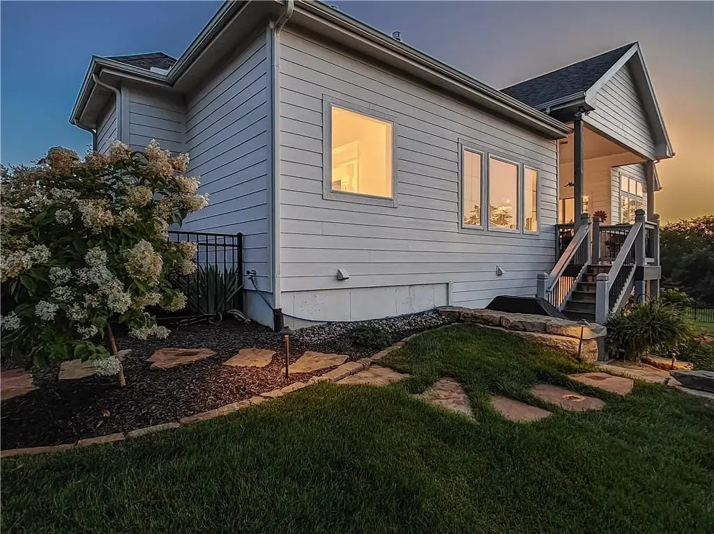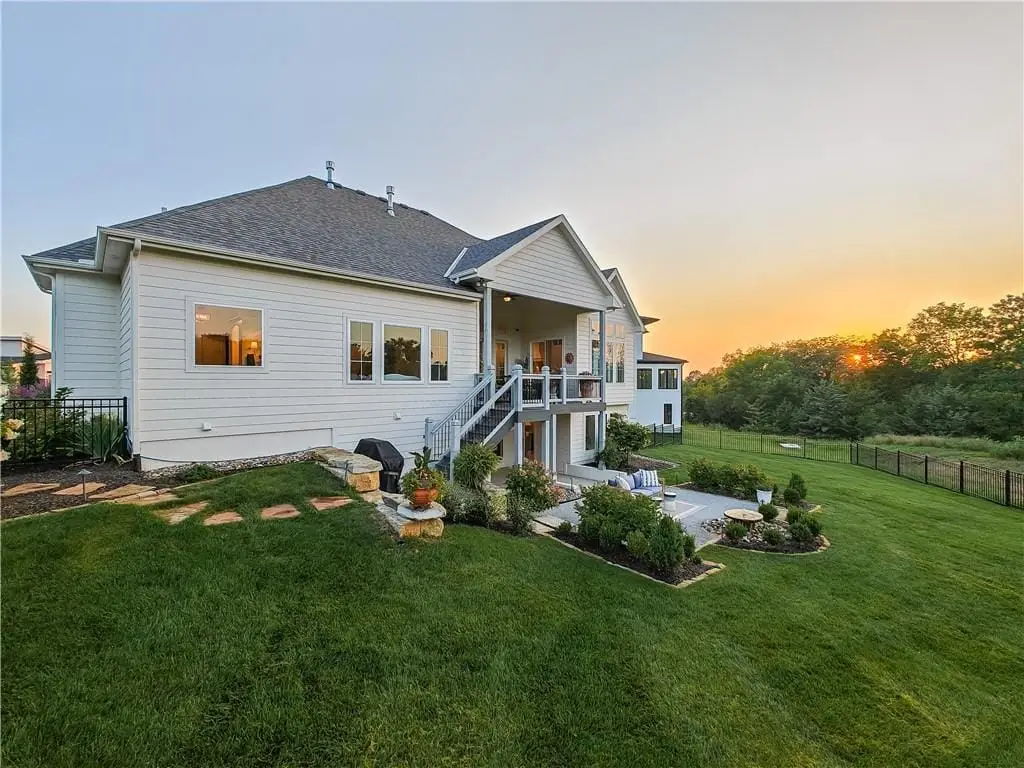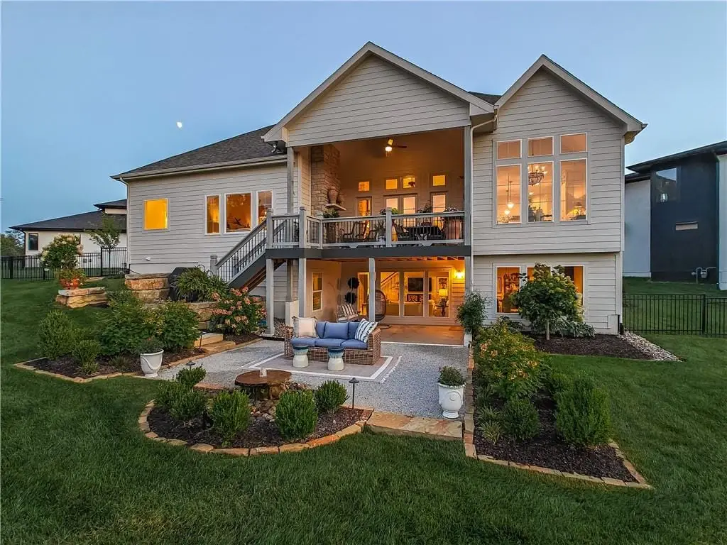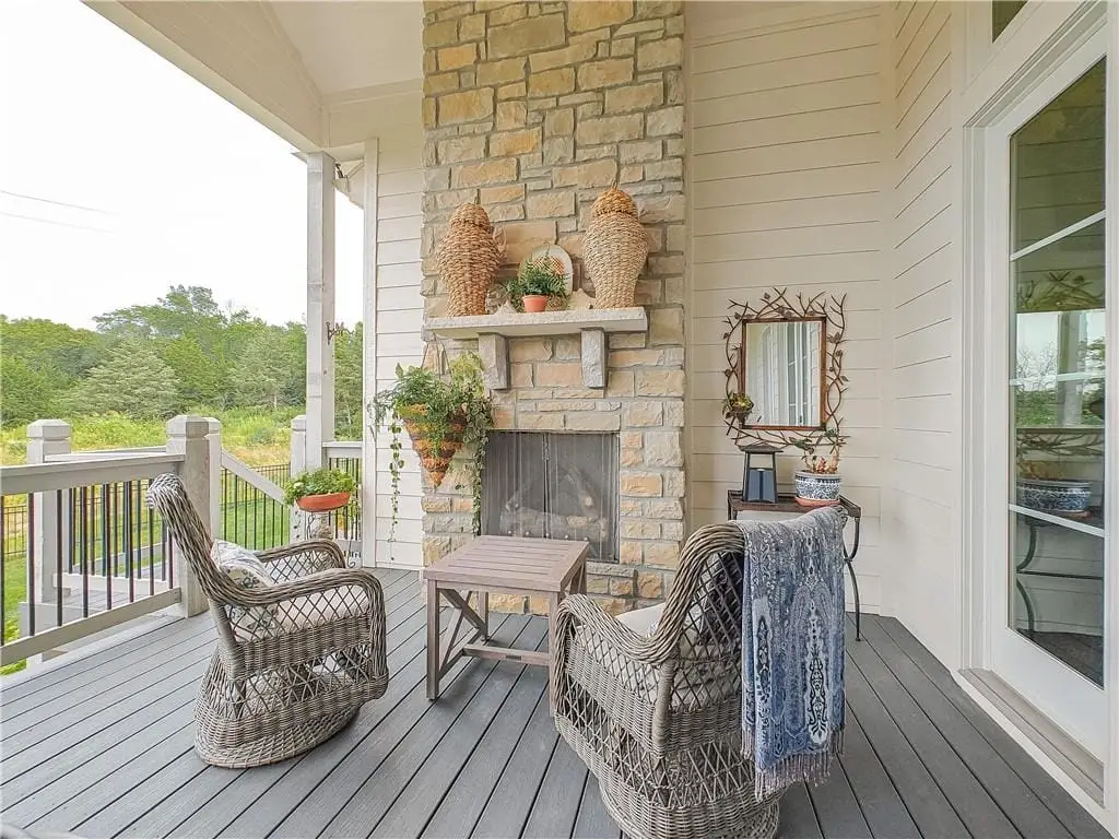 Avoid the uncertainty of new construction with its unforeseen delays and expenses. This nearly new, two-year-old beauty is better than new construction with established landscaping, fenced back yard and premium upgrades throughout. This four bedroom James Engle Stoneybrook Expanded Reverse 1.5-story home delivers all the features you want, without the wait. Nestled on what many call the most coveted lot in Wilshire Hills, this home backs to lush, wooded green space with no neighbors in sight, offering unmatched privacy and tranquility. Expansive windows create a seamless transition from indoors to outdoors. French doors take you to a covered deck and fireplace. From there, stairs lead to the lower level patio with fountain, extending your living space and entertainment options. The kitchen, with custom inset cabinetry, is extra special with a large breakfast area, a prep kitchen, and large pantry. Every appliance is top-of-the line. The marble island contains a large farm sink. A formal dining room is conveniently located directly off of the prep kitchen. The open-concept main level features a great room with stone fireplace, a powder room with wall mount faucets above the sink and two bedrooms, each with ensuite. The large primary bathroom has custom inset cabinets, custom makeup area, heated marble floors, shower and spa tub. The bright, lower level living area has a fireplace for cozy evenings in front of the TV, or entertain in the bar area with its abundant cabinets, sink, microwave, beverage fridge and large island. There are two bedrooms with Jack and Jill bathroom as well as a half bath that complete the walk-out lower level. Enjoy the perfect blend of thoughtful design, luxury finishes, and a move-in ready experience all in one remarkable home. Wilshire Hills is conveniently close to 69 HWY, and the Bluhawk shopping center with grocery, retail, dining and soon a theater.