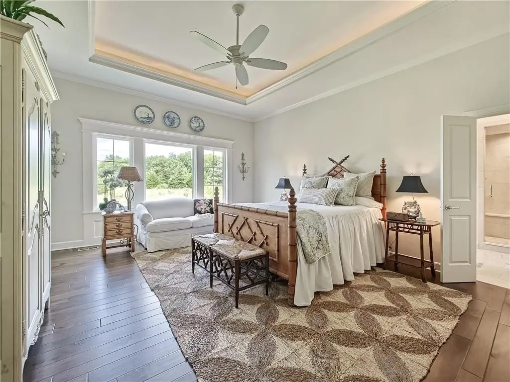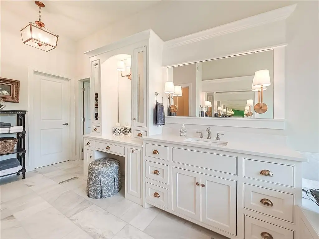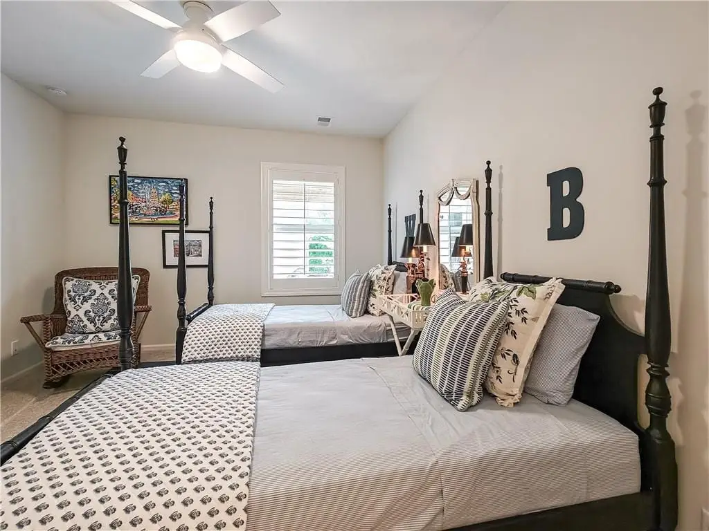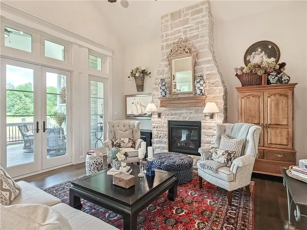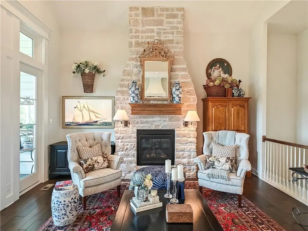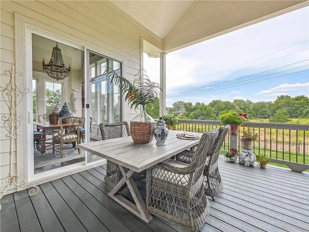 Avoid the uncertainty of new construction with its unforeseen delays and expenses. This nearly new, two-year-old beauty is better than new construction with established landscaping, fenced back yard and premium upgrades throughout. This four bedroom James Engle Stoneybrook Expanded Reverse 1.5-story home delivers all the features you want, without the wait. Nestled on what many call the most coveted lot in Wilshire Hills, this home backs to lush, wooded green space with no neighbors in sight, offering unmatched privacy and tranquility. Expansive windows create a seamless transition from indoors to outdoors. French doors take you to a covered deck and fireplace. From there, stairs lead to the lower level patio with fountain, extending your living space and entertainment options. The kitchen, with custom inset cabinetry, is extra special with a large breakfast area, a prep kitchen, and large pantry. Every appliance is top-of-the line. The marble island contains a large farm sink. A formal dining room is conveniently located directly off of the prep kitchen. The open-concept main level features a great room with stone fireplace, a powder room with wall mount faucets above the sink and two bedrooms, each with ensuite. The large primary bathroom has custom inset cabinets, custom makeup area, heated marble floors, shower and spa tub. The bright, lower level living area has a fireplace for cozy evenings in front of the TV, or entertain in the bar area with its abundant cabinets, sink, microwave, beverage fridge and large island. There are two bedrooms with Jack and Jill bathroom as well as a half bath that complete the walk-out lower level. Enjoy the perfect blend of thoughtful design, luxury finishes, and a move-in ready experience all in one remarkable home. Wilshire Hills is conveniently close to 69 HWY, and the Bluhawk shopping center with grocery, retail, dining and soon a theater.