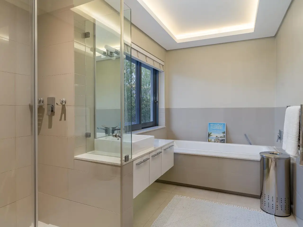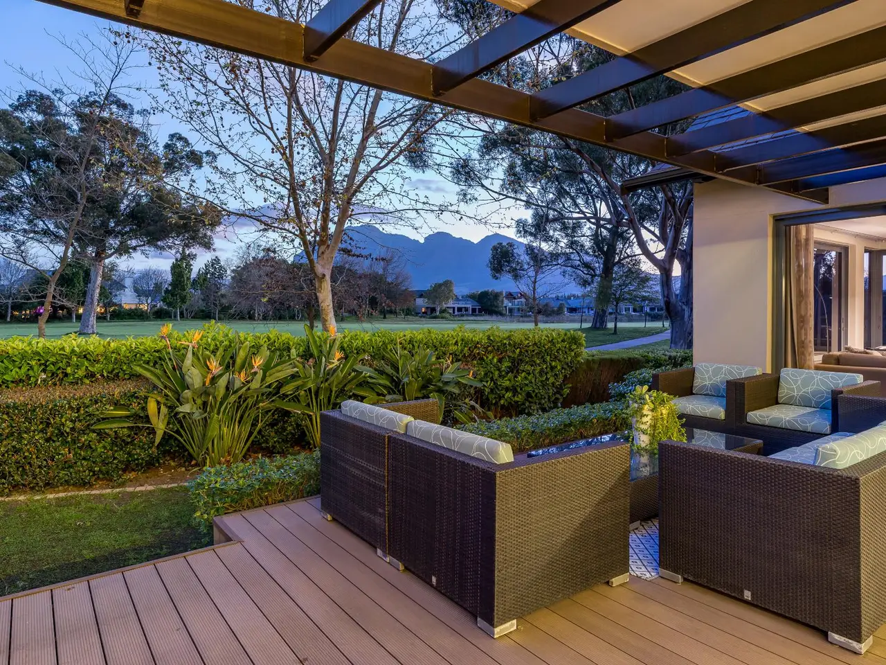This impeccable property sets the bar for a home on Pearl Valley Golf and Country Estate. The superb location, on the 14th fairway of the award winning Jack Nicklaus Pearl Valley Golf Course, gave the architect an opportunity to work with a great stand and to match the homeowners requirements with the natural beauty of the golf course and surrounding mountain ranges with impressive results. The views from this property are magical. From the home's threshold there are views through floor-to-ceiling glass across the central garden area and beyond making the unique layout truly captivating on entering the property. The living spaces are crafted by a refined and highly practical floor plan with an open plan custom designed kitchen, with integrated Gaggenau appliances, that connects with a number of interior living spaces as well as offering direct access to the stunning outdoor areas including a covered patio, scenic garden, heated pool and sundecks - all that invites for amazing entertaining. Located on the ground floor there is a luxurious guest suite, for undisturbed privacy, as well as a gym / studio / library / study room, guest cloakroom, a utility room as well as a separate laundry room with a laundry shoot from the first floor, staff accommodation, a storage room and 3 garages. The first floor comprises 3 spacious bedroom suites, including the master, as well as a sleek home office sited at the entrance to the landing of the floor. The master suite is beautiful - all that one would expect from a home of this caliber. There are many added features to this meticulous home that includes energy efficient systems of heat pump underfloor heating, solar panels with an inverter battery backup system and LED lighting, engineered wooden flooring, a smart home automation system, a Hergam combustion fireplace, air conditioning throughout, direct access for a golf cart to the golf course and so much more. Custom Features Golf cart garage and car port Underfloor heating system Engineerd wooden flooring Integrated Gaggenau Fridge freezer and wine cooler Home Automation system LED lights through out home Laundry shoot in scullery Full staff accomodation with en-suite and store room Heated pool Caesar stone in kitchen Wood fireplace Portico Entrance Water tank Engineered komposit
