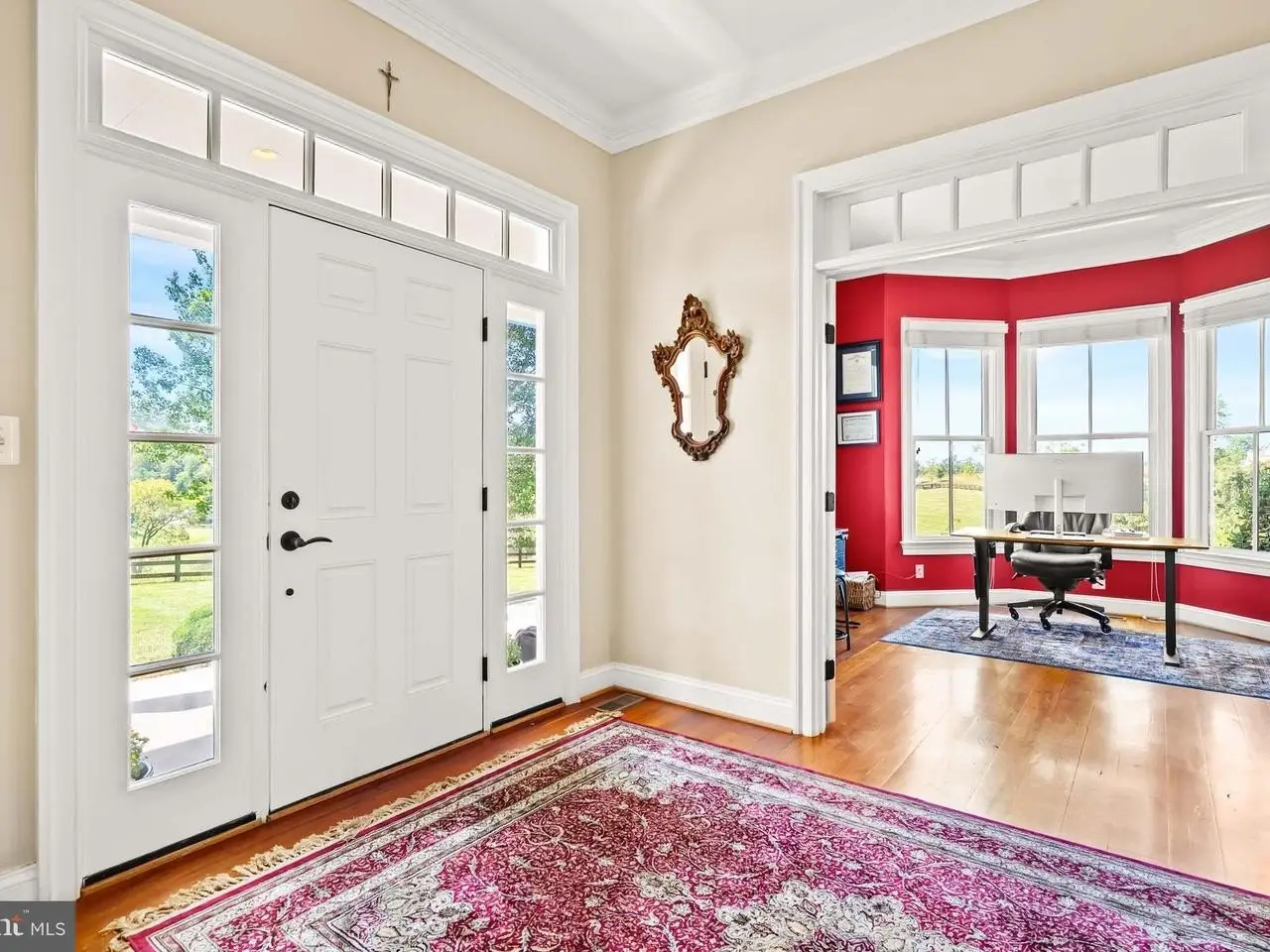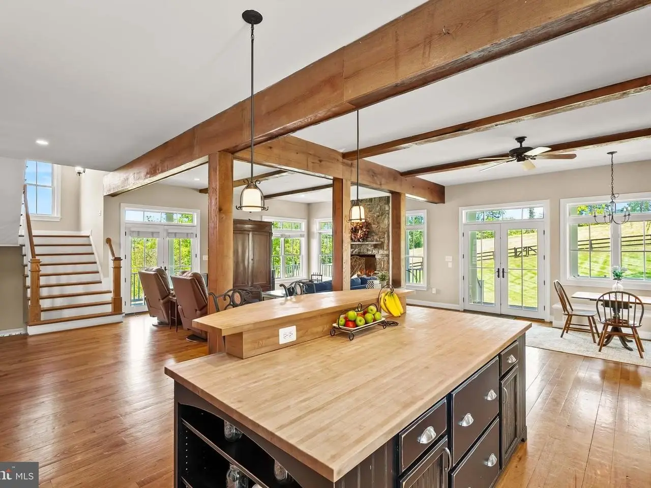 Nestled within the charming and historic area of Paeonian Springs less than a mile from the quaint Village of Waterford, this custom-designed farmhouse built in 2003 pays homage to the architectural aesthetics of the 1700s. Set on nearly 12 acres of picturesque landscape with stunning views in all directions, this residence seamlessly combines modern amenities with period-appropriate design, creating a harmonious blend of past and present. The farmhouse spans four levels, each meticulously crafted to capture the essence of colonial architecture. The exterior boasts a classic design with a wide, welcoming front porch. The interior showcases the craftsmanship of a bygone era while offering the comforts of contemporary living. The design carefully incorporates elements such as transom windows, hand-hewn cherry and oak flooring, thick wood beams and many other period-specific fixtures, transporting residents to a time when craftsmanship was an art form. With 5 bedrooms and five bathrooms across 4 levels, the farmhouse ensures ample space for both family and guests. Relax in the primary suite next to the wood-burning fireplace or take in the views from your private balcony. The 4th level guest suite is complete with large bedroom space, a living room, and an optional bath space with plumbing rough ins. The lower level is an entertainment area with a welcoming custom open pub-style bar, complete with mahogany bar tops, built in cabinetry, dishwasher, sink, beverage refrigerators and entertainment area set around a wood burning fireplace. Walk out to a large private paver patio with amazing beautiful stone retaining walls. The perfect space for grilling out with friends . Head inside for a movie in the media room.. there is also a full bath , an exercise room, and a storage room. For the car enthusiasts and hobbyists, this property offers a three-car attached garage with dog wash sink and electric car outlet. Plus a 4 car detached garage. Ascend to the level above the main garage, and you'll find a hidden gem with it's own entry-an expansive attic space brimming with potential. Finish it to your liking, and it could become a grand office, a playroom, or a studio. office space. The Pennsylvania Amish pole barn is 24' x 40', for a car collections, a workshop, or even the potential for a guesthouse conversion. 4 doors / bays and side entry access. The barn ceiling was constructed with scissor trusses in order to accommodate a future second floor or lift. The metal roof and board and batten siding complement the main farmhouse Enjoy the glorious sunrises and sunsets while still being close to shopping, restaurants, schools, Dulles Airport and the Metro for events in Washington D.C. Experience the annual Waterford Fair every Fall, holiday parades, weekly farmers markets or take in music from local artists at one of the many wineries and breweries, just minutes away. This custom-designed farmhouse offers a rare opportunity to live in an area full of historical charm while enjoying the comforts of modern living. From the wrap-around porch to the design details, this home is a testament to the enduring allure of 18th-century architecture and the dream of rural living. With its period-correct design and luxurious amenities, it truly represents the best of both worlds-a timeless masterpiece in the countryside yet close to modern conveniences. Come see the stunning views from every window.