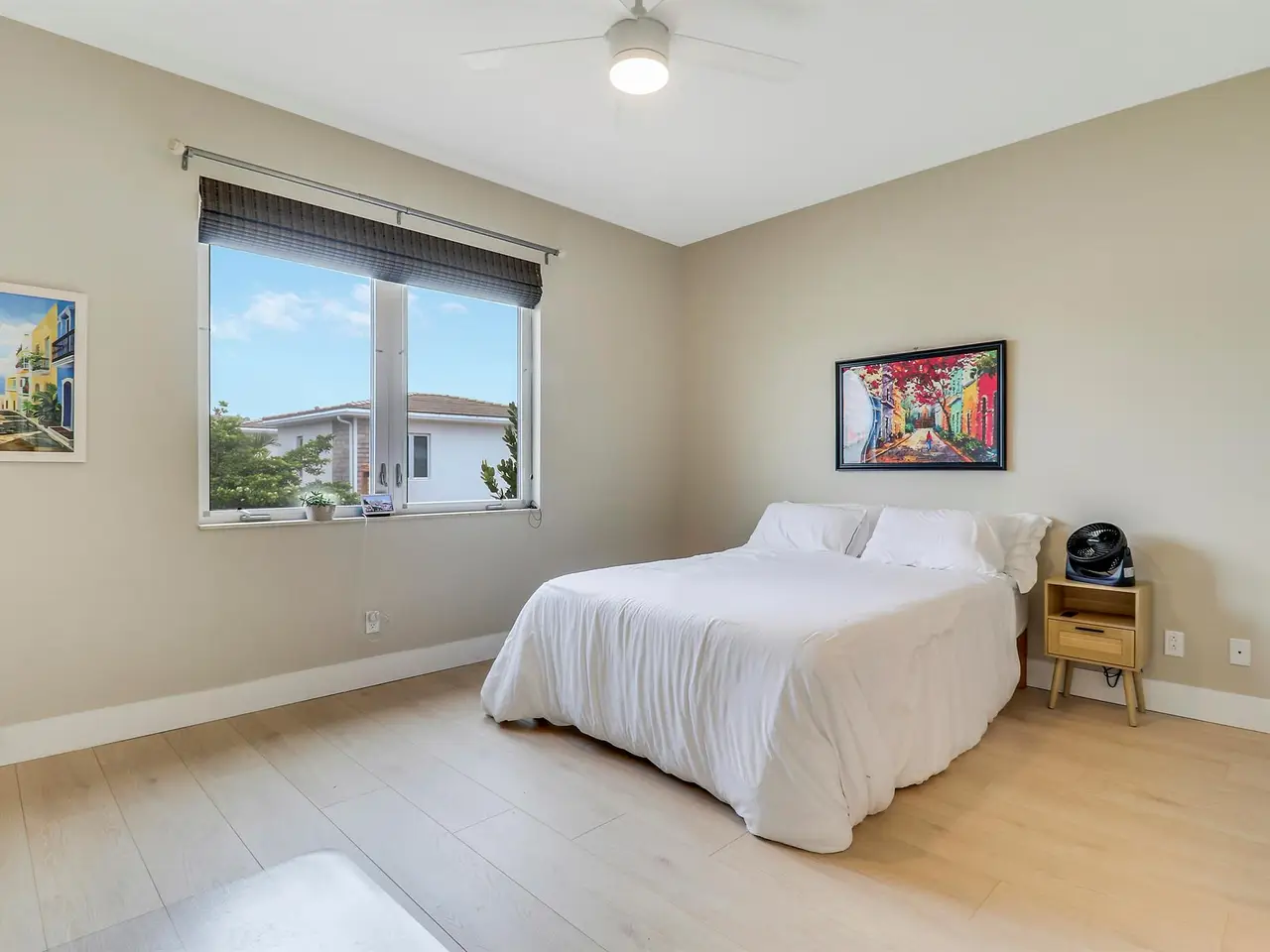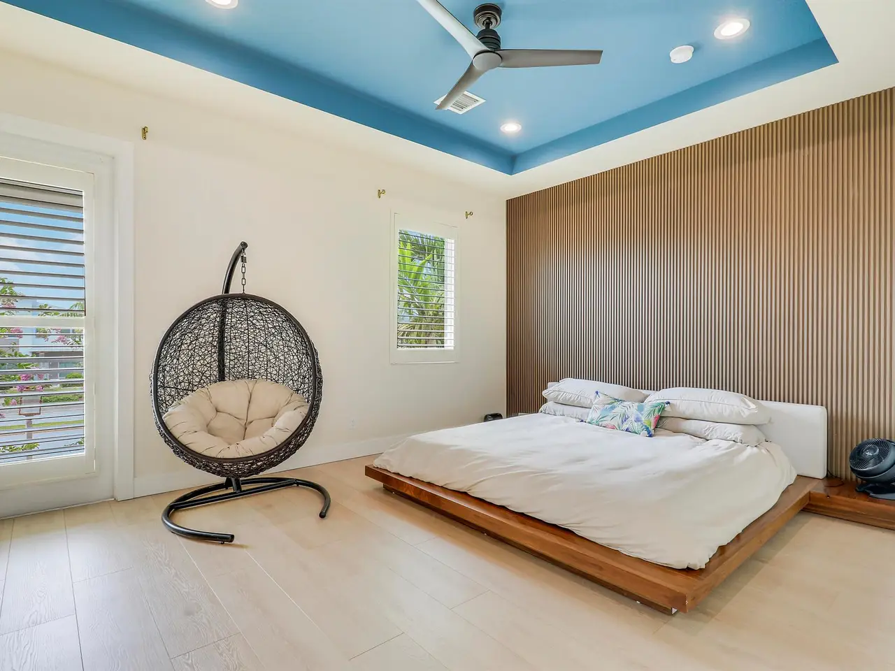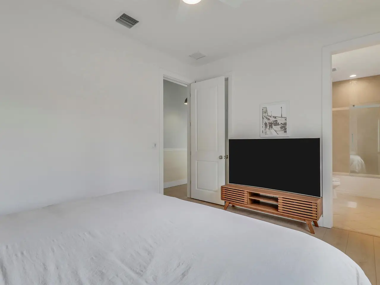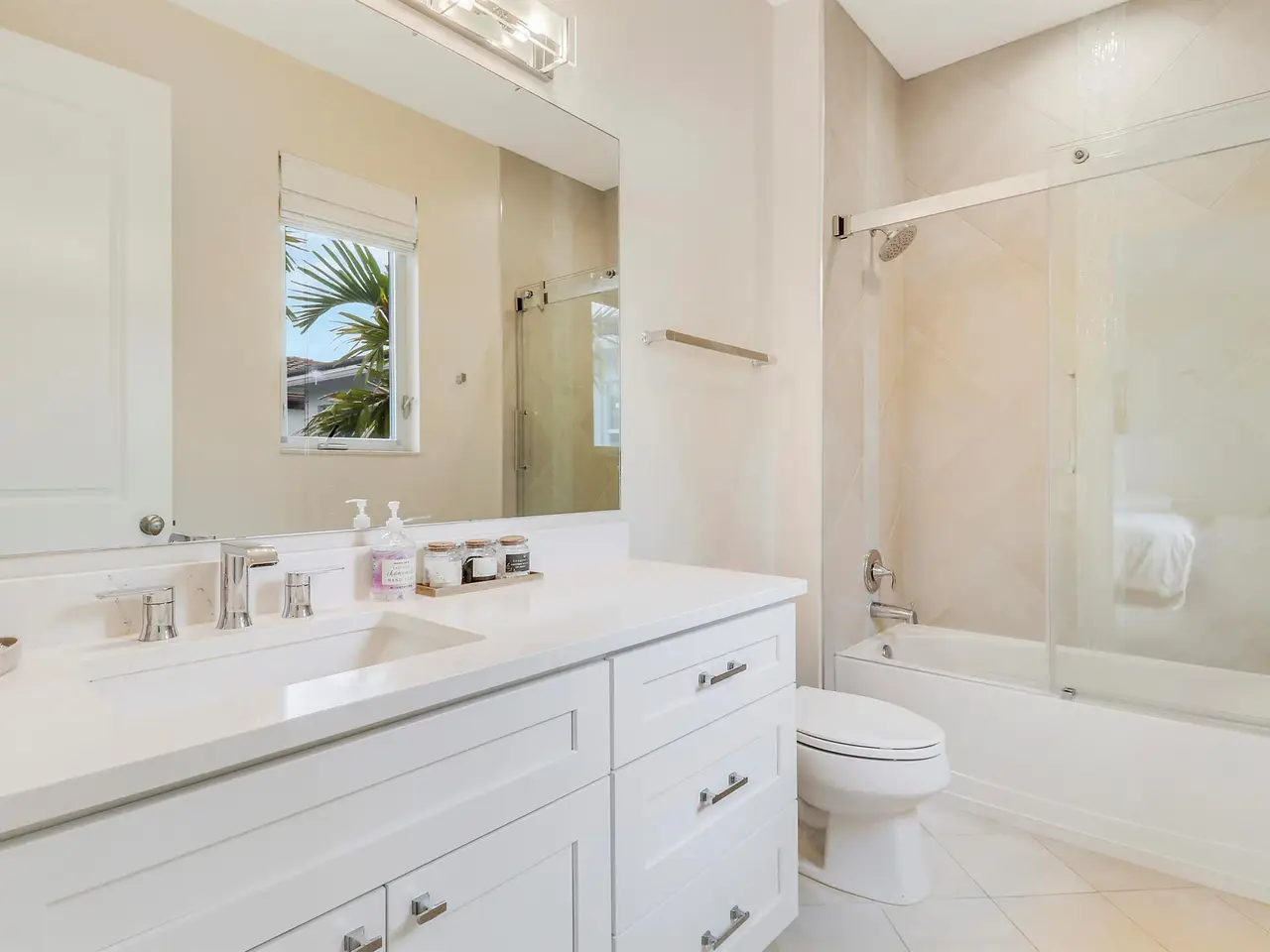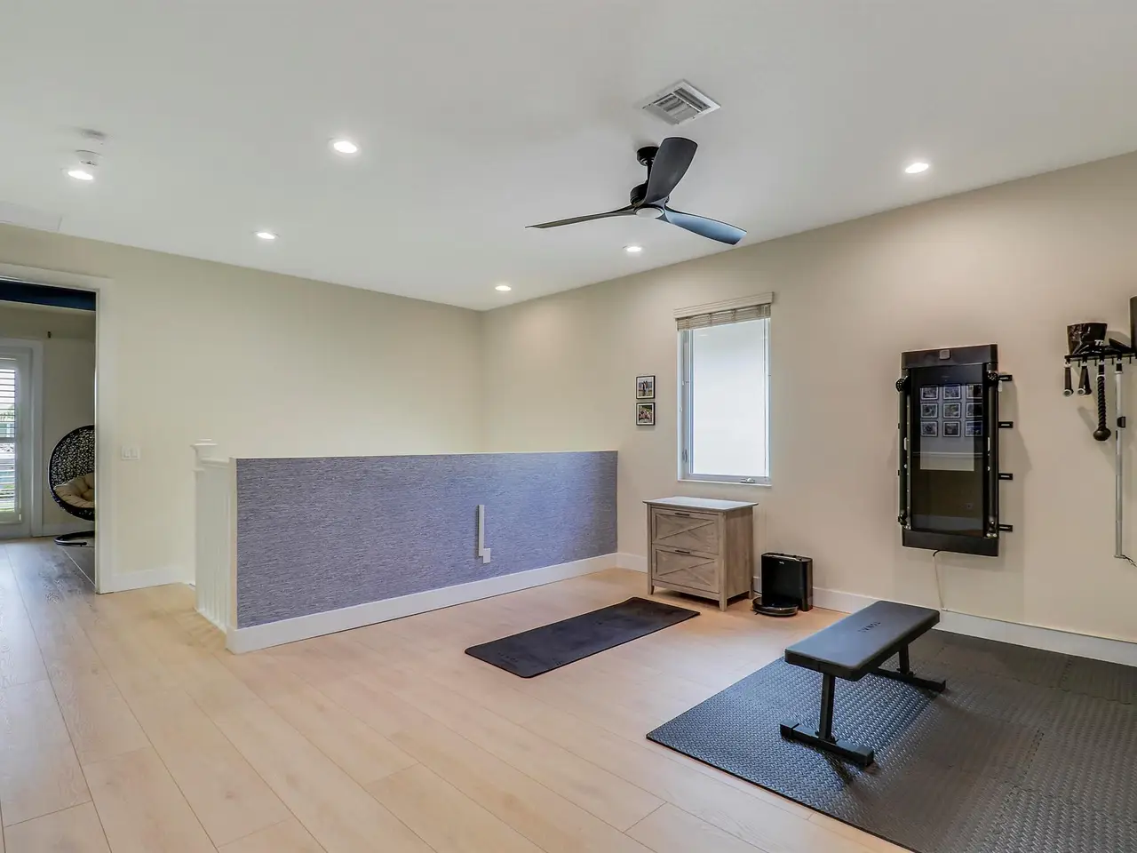 This stunning move-in ready home features porcelain floors downstairs, vinyl plank floors upstairs, custom wallpaper, designer paint, light fixtures, wood slat panels, and window treatments. The gourmet kitchen offers granite countertops, high-end appliances, and a built-in refrigerator. A stylish lounge with wet bar has replaced the downstairs office -- perfect for entertaining. Upstairs, the owner's suite includes two walk-in closets, a spa-style bathroom and a private balcony. There's also three additional bedrooms, plus a home gym and a 5th bedroom, currently used as an office. Enjoy a private outdoor oasis with pool, hot tub, and summer kitchen. A three-car garage offers ample storage, while security cameras and keypads provide peace of mind. Close to the I-95 and the Turnpike, 20 mins to PBI.
