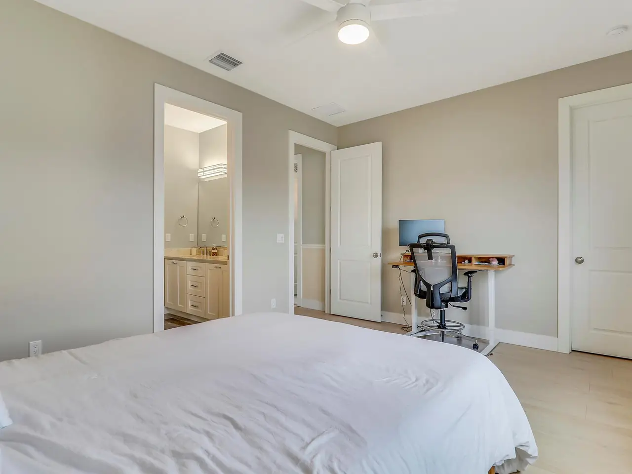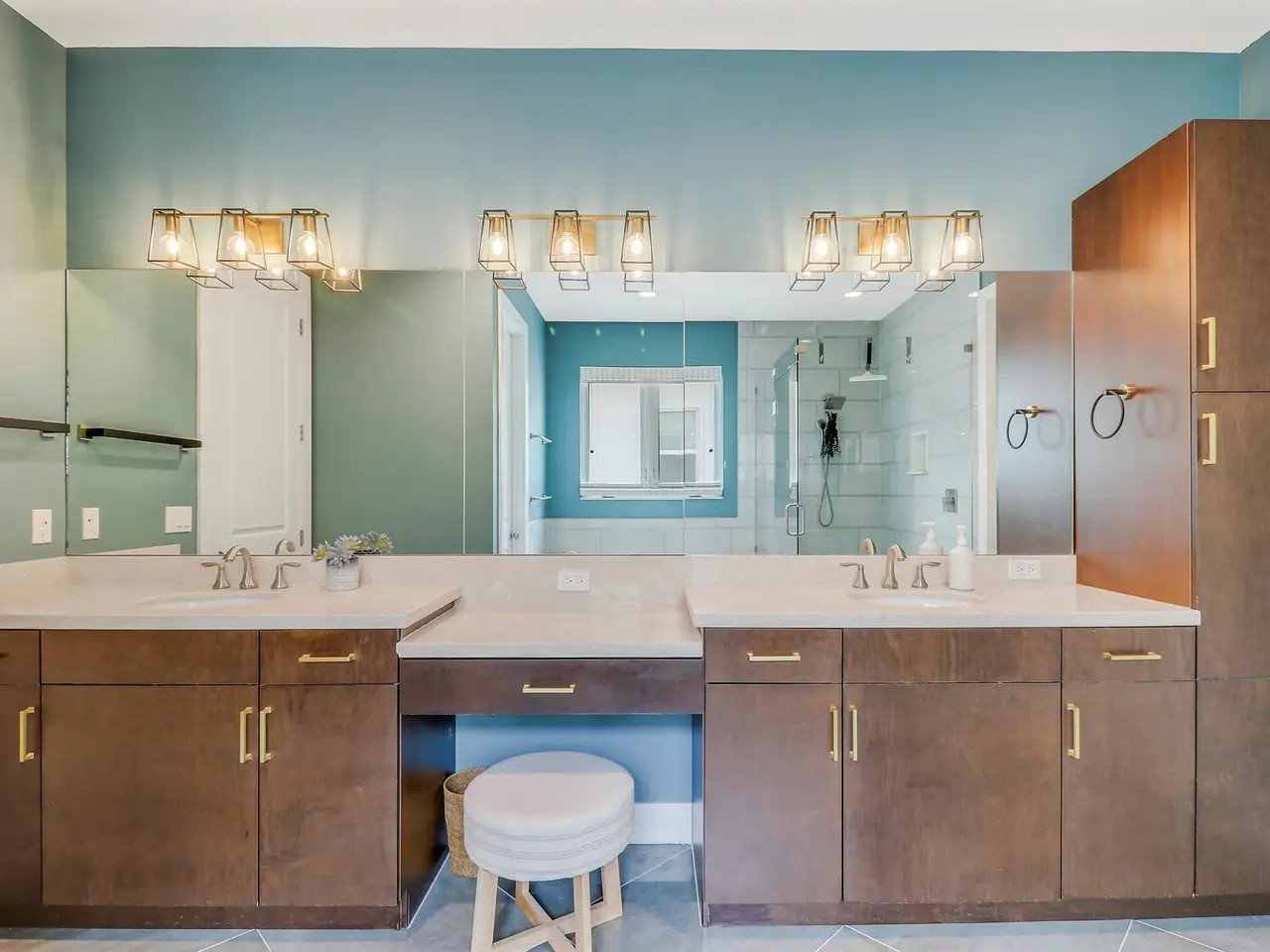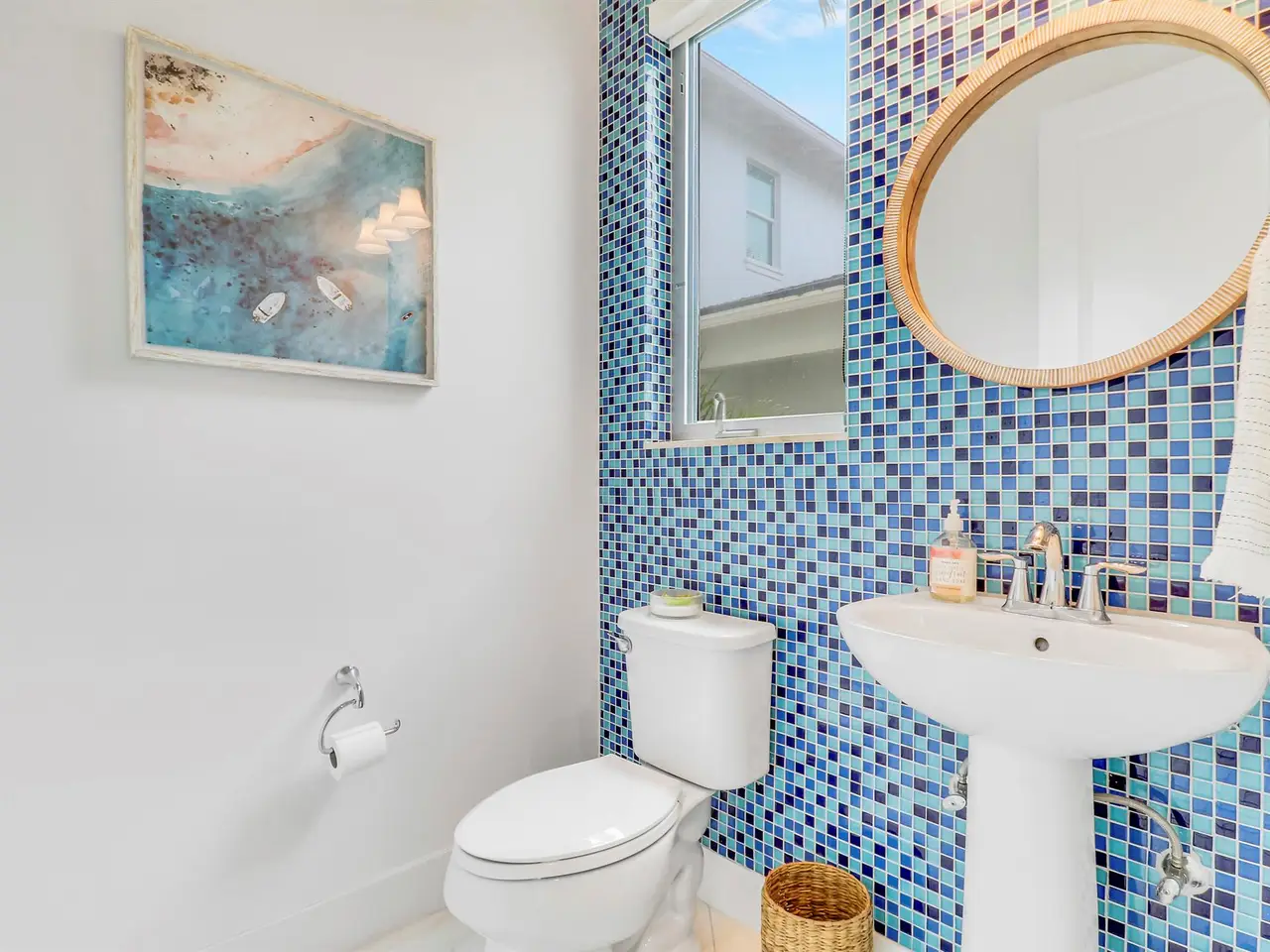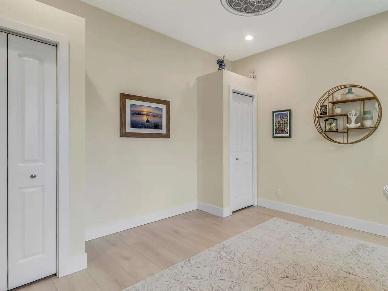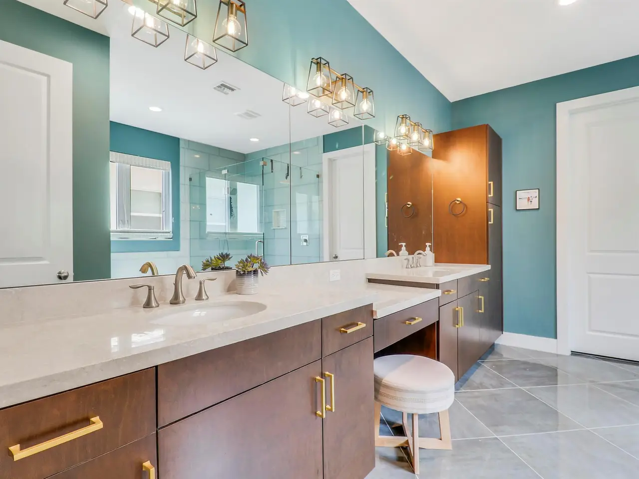 This stunning move-in ready home features porcelain floors downstairs, vinyl plank floors upstairs, custom wallpaper, designer paint, light fixtures, wood slat panels, and window treatments. The gourmet kitchen offers granite countertops, high-end appliances, and a built-in refrigerator. A stylish lounge with wet bar has replaced the downstairs office -- perfect for entertaining. Upstairs, the owner's suite includes two walk-in closets, a spa-style bathroom and a private balcony. There's also three additional bedrooms, plus a home gym and a 5th bedroom, currently used as an office. Enjoy a private outdoor oasis with pool, hot tub, and summer kitchen. A three-car garage offers ample storage, while security cameras and keypads provide peace of mind. Close to the I-95 and the Turnpike, 20 mins to PBI.