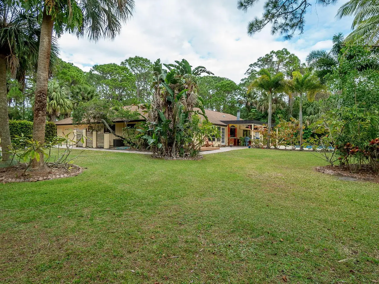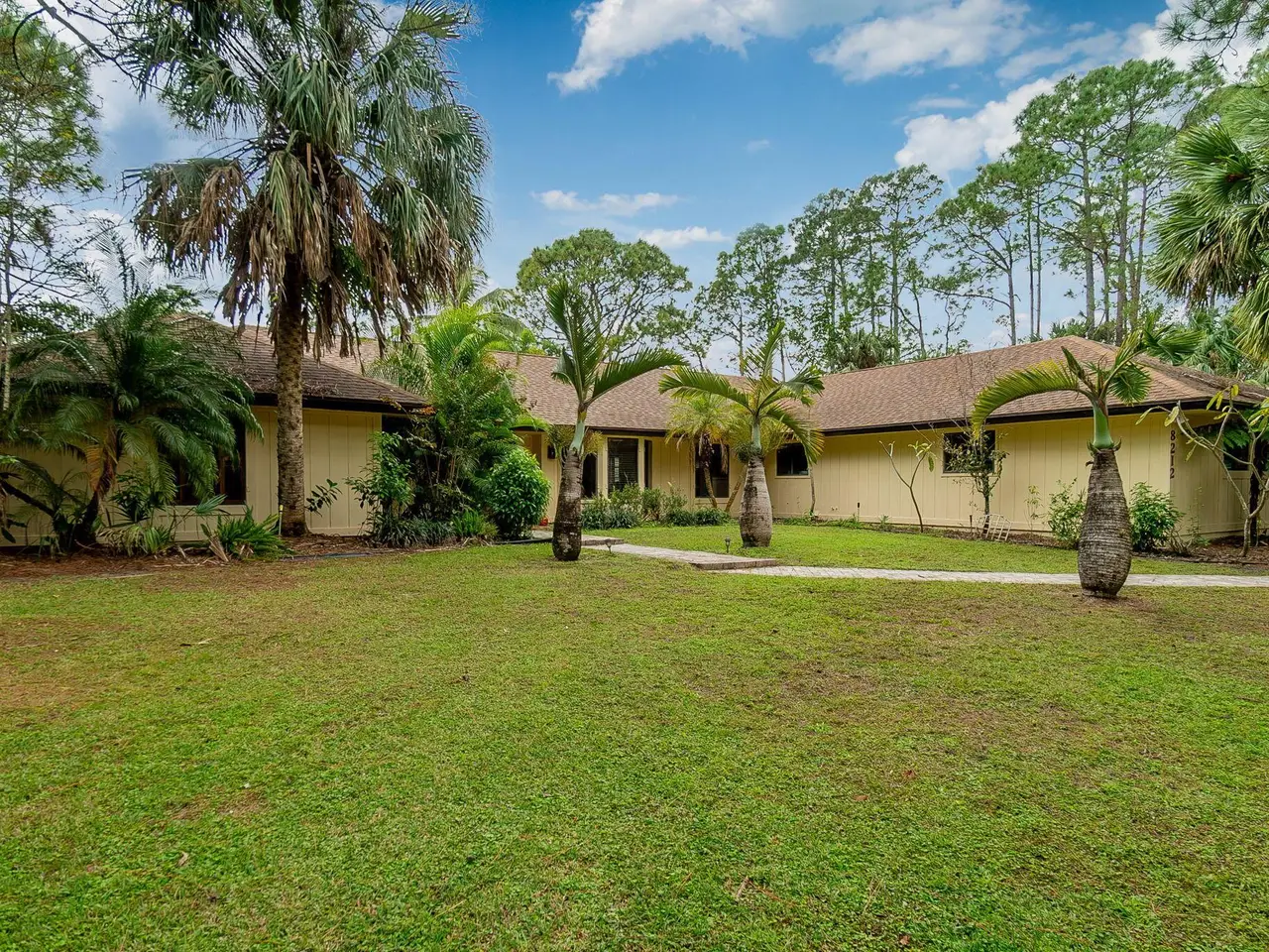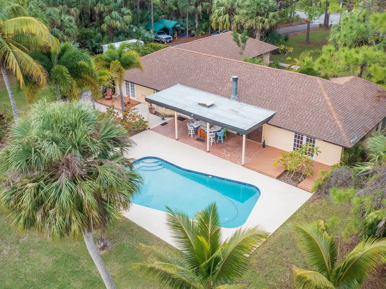 Rare find CANALFRONT four bed, two bath in Palm Beach Country Estates! This fabulous home backs up to a canal with a small private boat dock. This 1.34 acre private and secluded lot (as behind the canal is the 2,700-acre Sandhill Crane Wildlife Refuge PLUS there is a county 30-foot easement on the west side). The home features a newly refinished large pool and patio deck with 30-foot covered patio and summer kitchen with bar. Mexican tile throughout, large bedrooms, kitchen has stainless appliances, wood cabinets, granite countertop, pass thru to patio. Real wood burning fireplace, real wood exposed beams, interior laundry room, French doors, crown molding, large entry way, new epoxy garage floors. Plenty of storage with exterior shed and horse barn! Paved road! Owner has lived here for 35-plus years! No HOA! Must see!