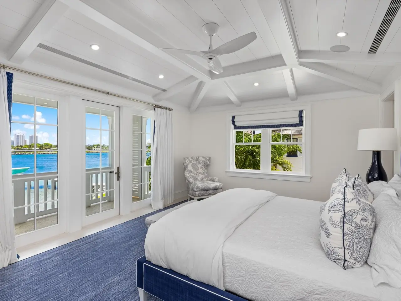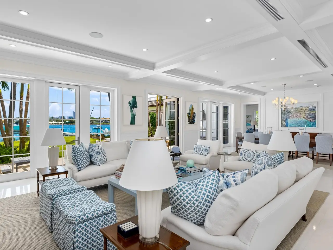 Welcome to 1610 N Ocean Blvd, a rare opportunity to own a spectacular 6-bedroom, 7.2-bathroom waterfront residence, masterfully built in 2018. With breathtaking views from all principal rooms, this elegant estate offers the perfect blend of British West indies elegance and contemporary refinement. A long private, gated driveway leads to a grand, beautifully landscaped courtyard entrance - providing the feeling of entering a lush tropical compound. The iconic entryway leads into an expansive formal living room with a stately fireplace, with Bahamian blue water colors conveniently positioned as the perfect backdrop. The gourmet chef's kitchen is a culinary dream, featuring a large center island and seamlessly flowing into the spacious family room, ideal for relaxed entertaining.