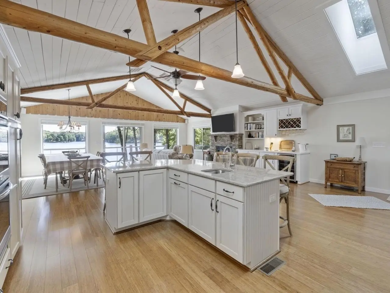 Lakefront Elegance with Docks, Beach, and Views