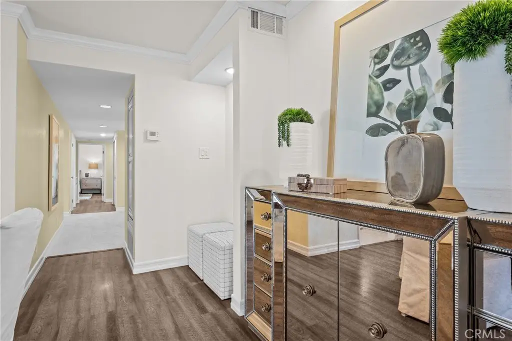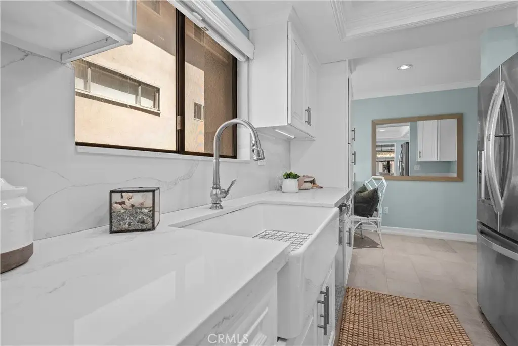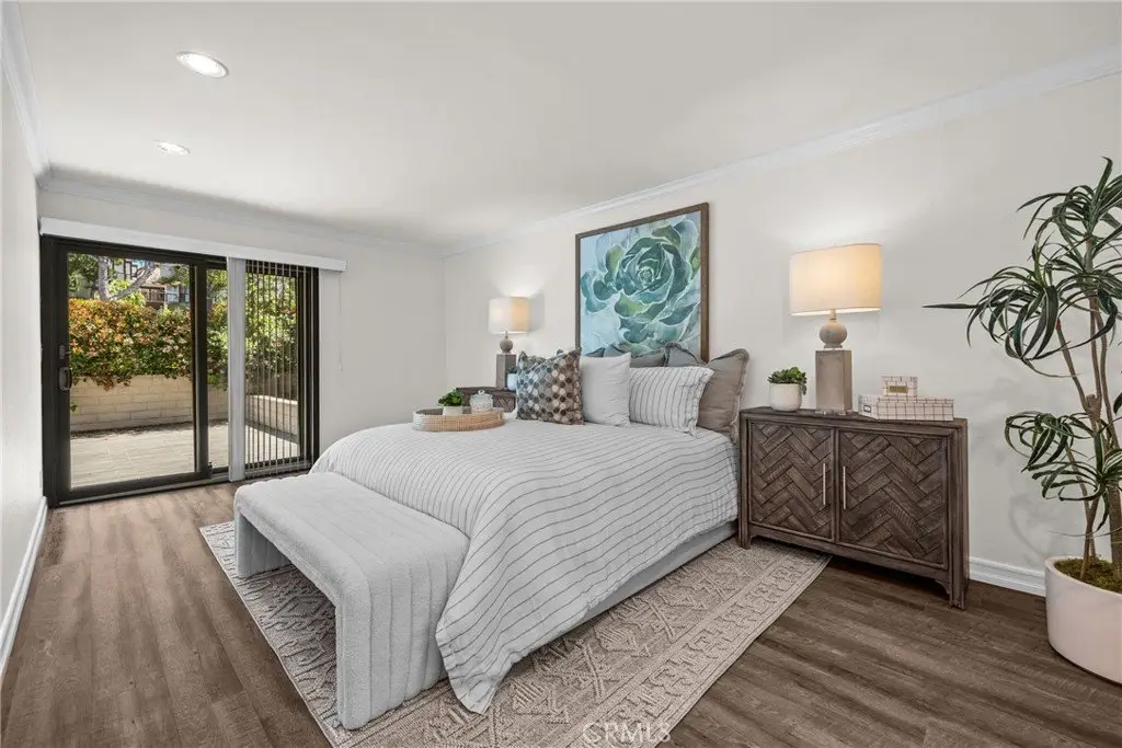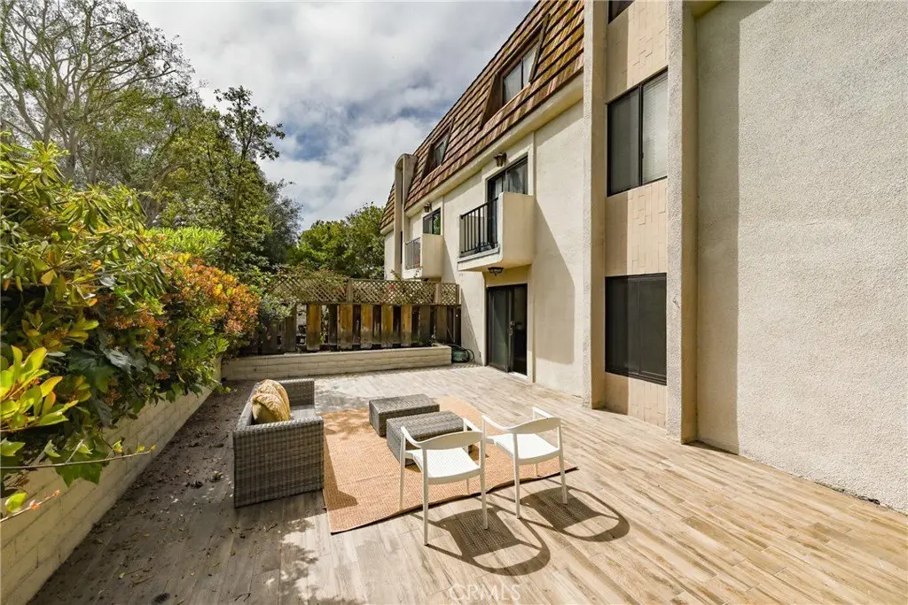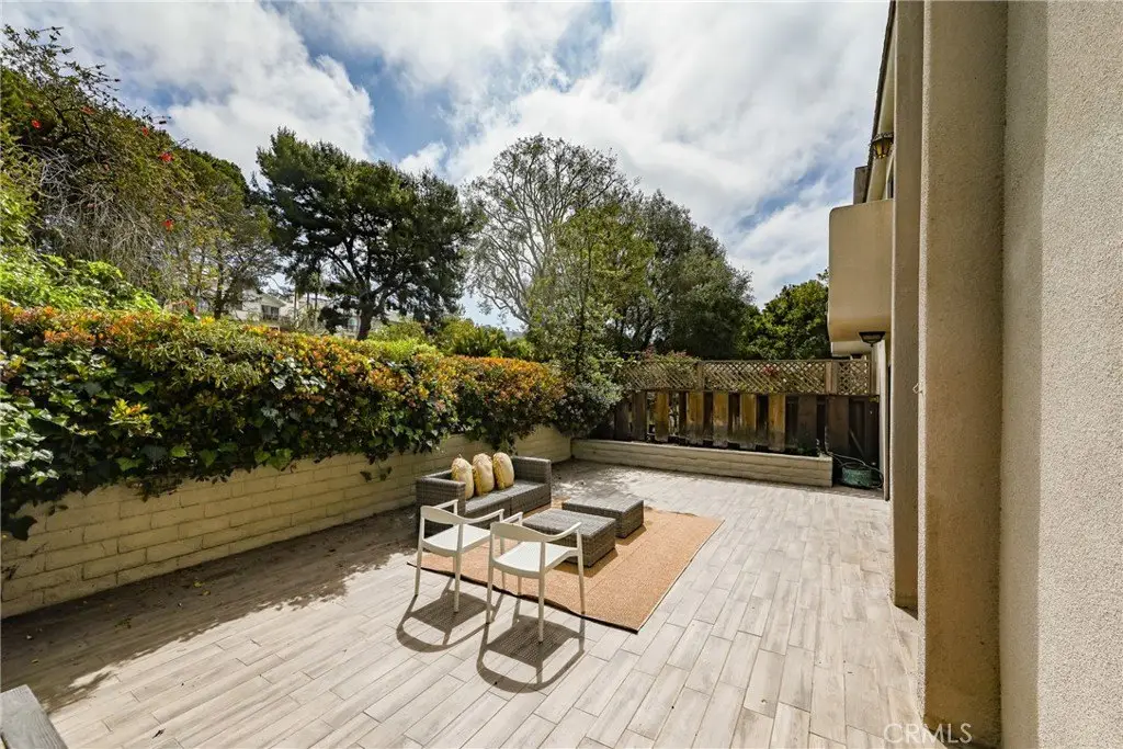 Welcome to an exceptional opportunity to own a bright, remodeled end-unit home in the heart of coveted Lunada Bay. Offering a remarkable blend of indoor luxury & outdoor living, this 3 bedroom, 2 bathroom residence spans 1,619 square feet of refined single-level living, plus a private 600 square foot garden patio rarely found in a condo. Enter through a spacious foyer into an inviting, open-concept layout designed for comfort & elegance. The dining area flows into the generous living room, warmed by a cozy gas fireplace, featuring wide-plank neutral flooring, fresh paint, crown molding & recessed lighting. A private balcony off the living area welcomes refreshing ocean breezes & offers charming neighborhood & sunset views, perfect for relaxing at the end of the day. The bright, modernized kitchen is a true centerpiece, featuring crisp white cabinetry, deep farmhouse sink, elevated fixtures, sleek white & gray quartz counters & backsplash, & stainless steel appliances including gas range & refrigerator. A built-in desk doubles as a breakfast nook, ideal for casual dining or working from home. Down the hall, a side-by-side laundry closet includes the washer & dryer, along with ample linen storage & stylishly remodeled ¾ bath servicing the living space & secondary bedrooms, offers dual sinks, quartz countertops, honeycomb tile flooring & gleaming white subway tile backsplash. Each bedroom is spacious & light-filled, with mirrored closet doors enhancing the sense of openness. Your primary suite is a private retreat, complete with a large walk-in closet with built-in organizers, a mirrored dressing area & an ensuite full bath with dual sinks, quartz counters & private water closet. The generous garden patio is well-connected here, beautifully tiled to extend the living space, with vibrant landscaping, palm trees & sunshine, perfect for entertaining, gardening, or simply enjoying a life well-made. Additional features include 2 side-by-side gated underground parking spaces, a large private secure storage room & elevator access for effortless, stair-free living. Just 1 block from Lunada Bay Plaza with its quaint shops, restaurants & services, 3 blocks from the breathtaking ocean bluffs, this residence offers a rare lifestyle of convenience & beauty. Easily accessible to all 3 prestigious local elementary, middle & high schools. Move right in & start living the good life in Palos Verdes Estates, where ocean breezes, sunset views & a vibrant coastal community await.