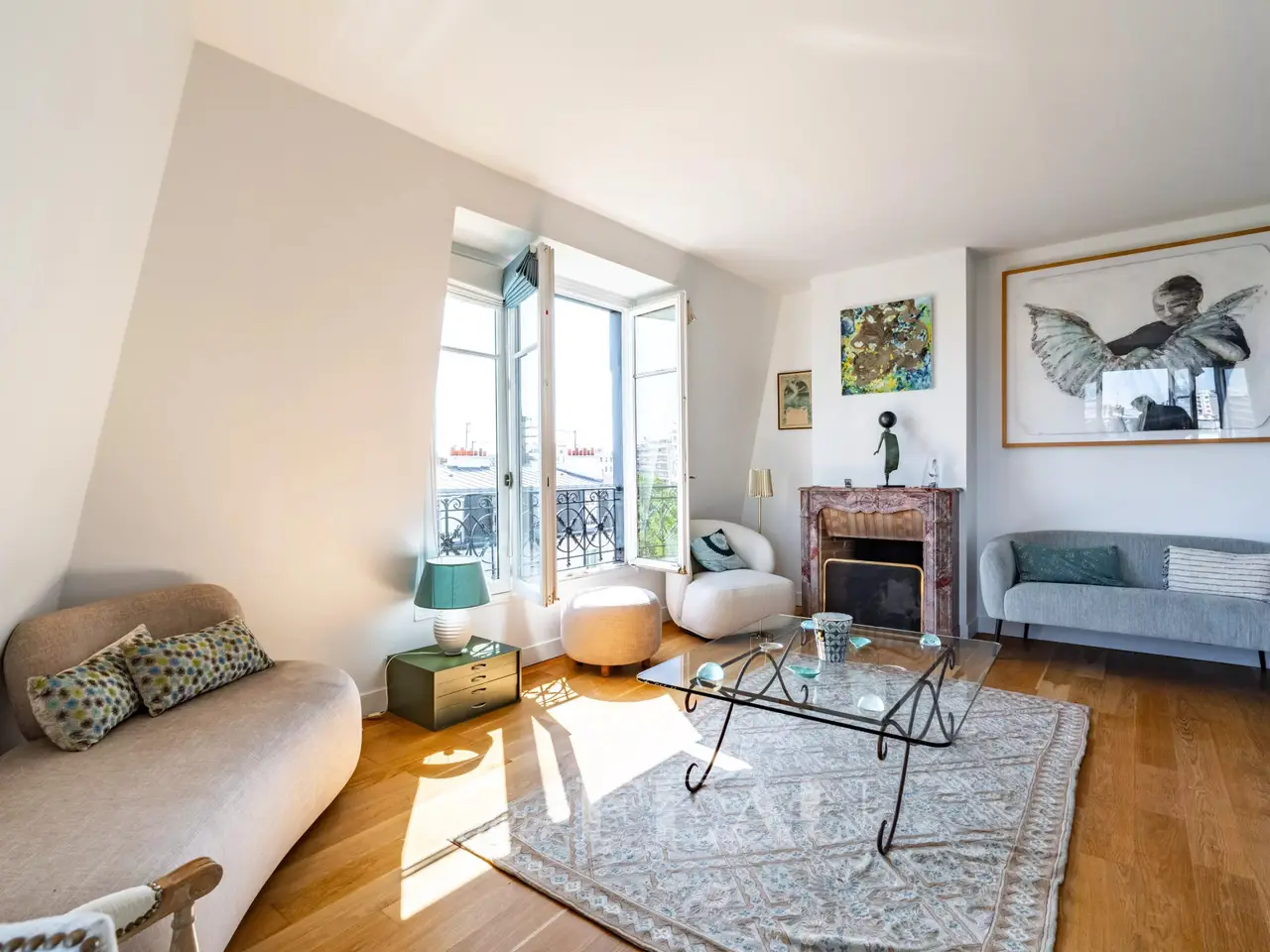 Alesia neighbourhood. This entirely renovated 81 sqm apartment is on the 6th and top floor of a luxurious late 19th century building. Bright and enjoying open views, it includes a living/reception room with a fireplace, a separate kitchen, two bedrooms, a bathroom and a separate wc. With a cellar.