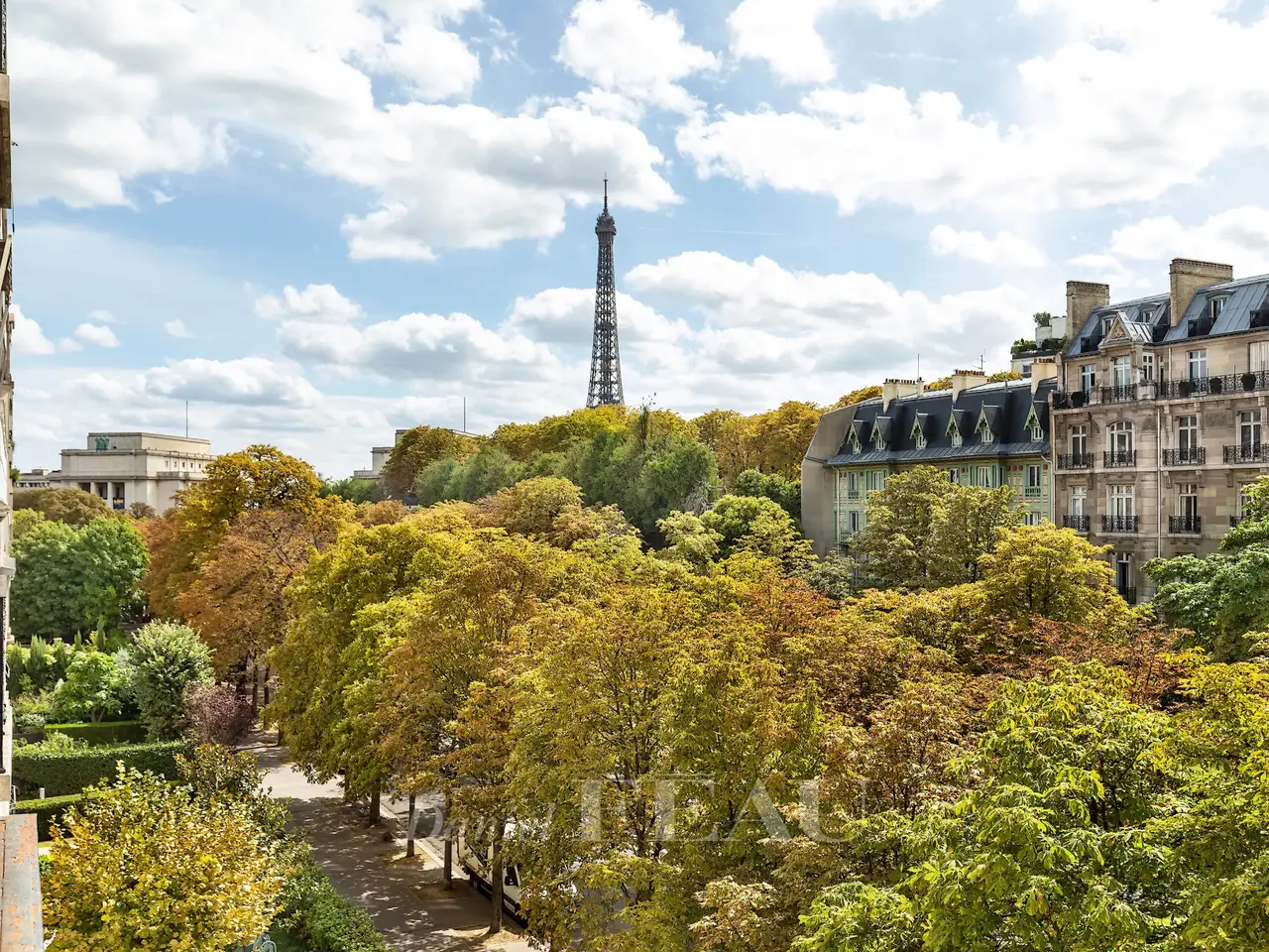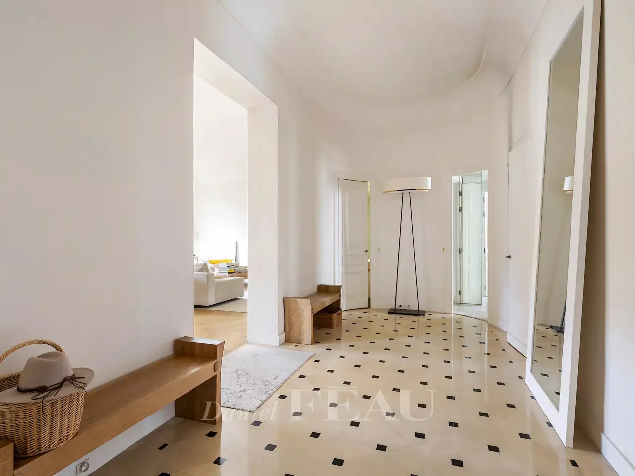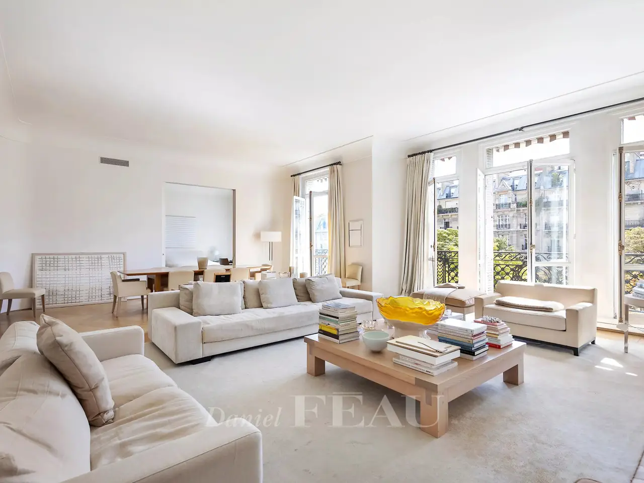 Avenue Georges Mandel/Trocadero. This sunny air-conditioned apartment on the 3rd floor of a fine freestone building with a caretaker offers 165 sqm of living space. South-facing and featuring 3.70 metre high ceilings, it includes an entrance hall, a double living/reception room bathed in sunshine, a separate kitchen, and two bedrooms with bathrooms and dressing rooms. Sold with a 13 sqm maid’s bedroom and a cellar.