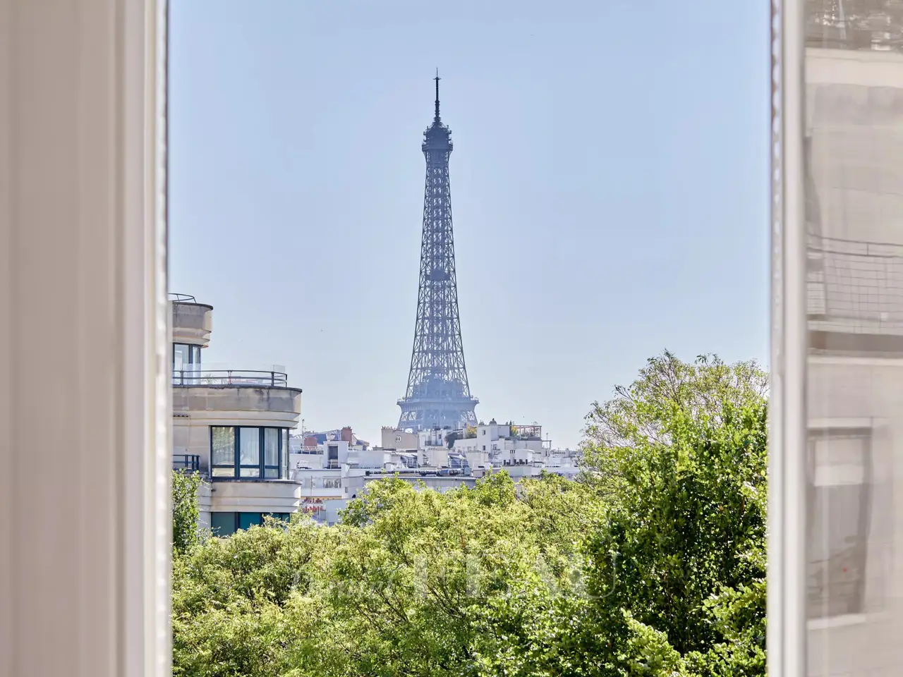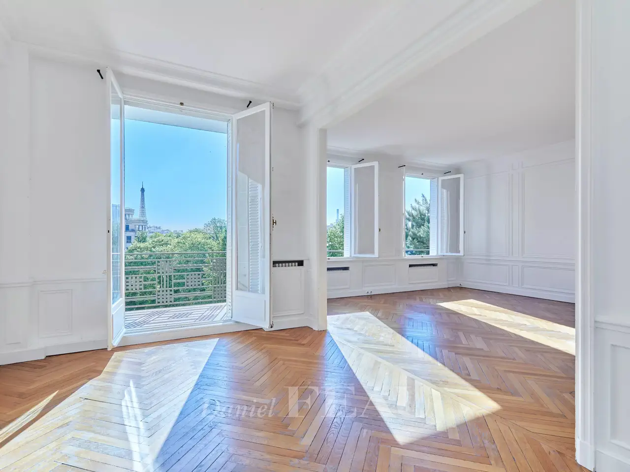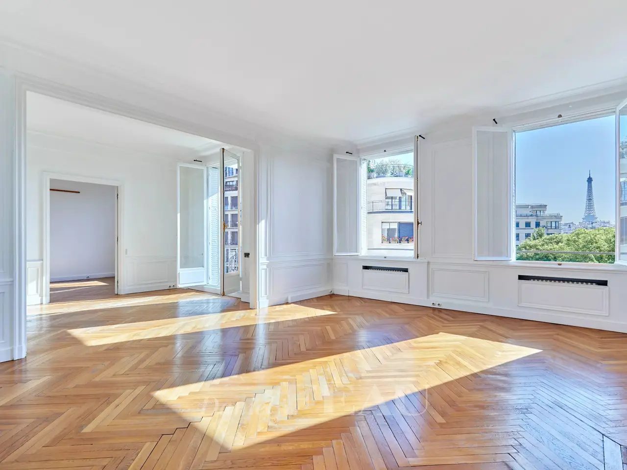 Place Rodin. This superb 260 sqm apartment is on the 4th floor of an elegant 1930s building. It includes an entrance hall, a triple living/reception room with a fireplace opening onto a balcony and enjoying a view of the Eiffel Tower, a dining room, a kitchen with dining facilities, a utility room, a suite with a bathroom and dressing room, three further bedrooms, a bathroom, a shower room and two separate wc. It would be possible to create up to six bedrooms if required. With a storage room as well as a cellar. Two maid’s bedrooms and a parking space may also be acquired at extra cost.