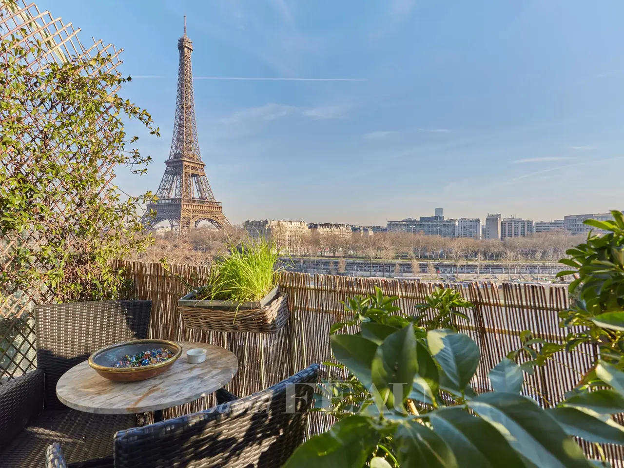 Balcony Living Overlooking Eiffel and Seine