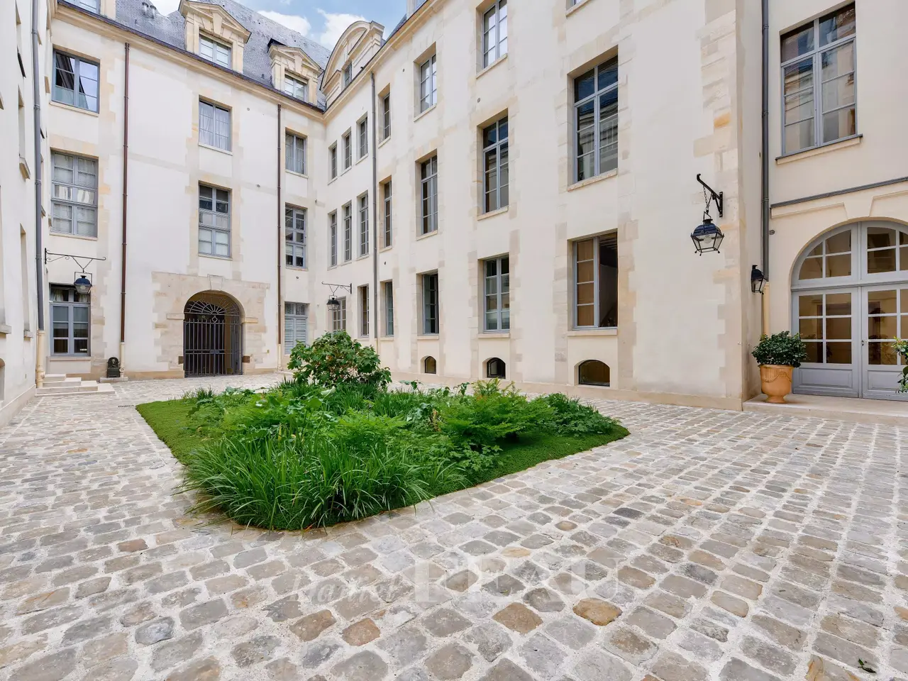 This elegant duplex apartment is on the 1st and 2nd floors of a building with a lift accessed from historic Place des Vosges. Recently renovated, it includes a bright west-facing living/reception room with a fitted and equipped open-plan kitchen, two bedrooms, a bathroom, a dressing room and two wc. A basement parking space in the building may be acquired at extra cost.
