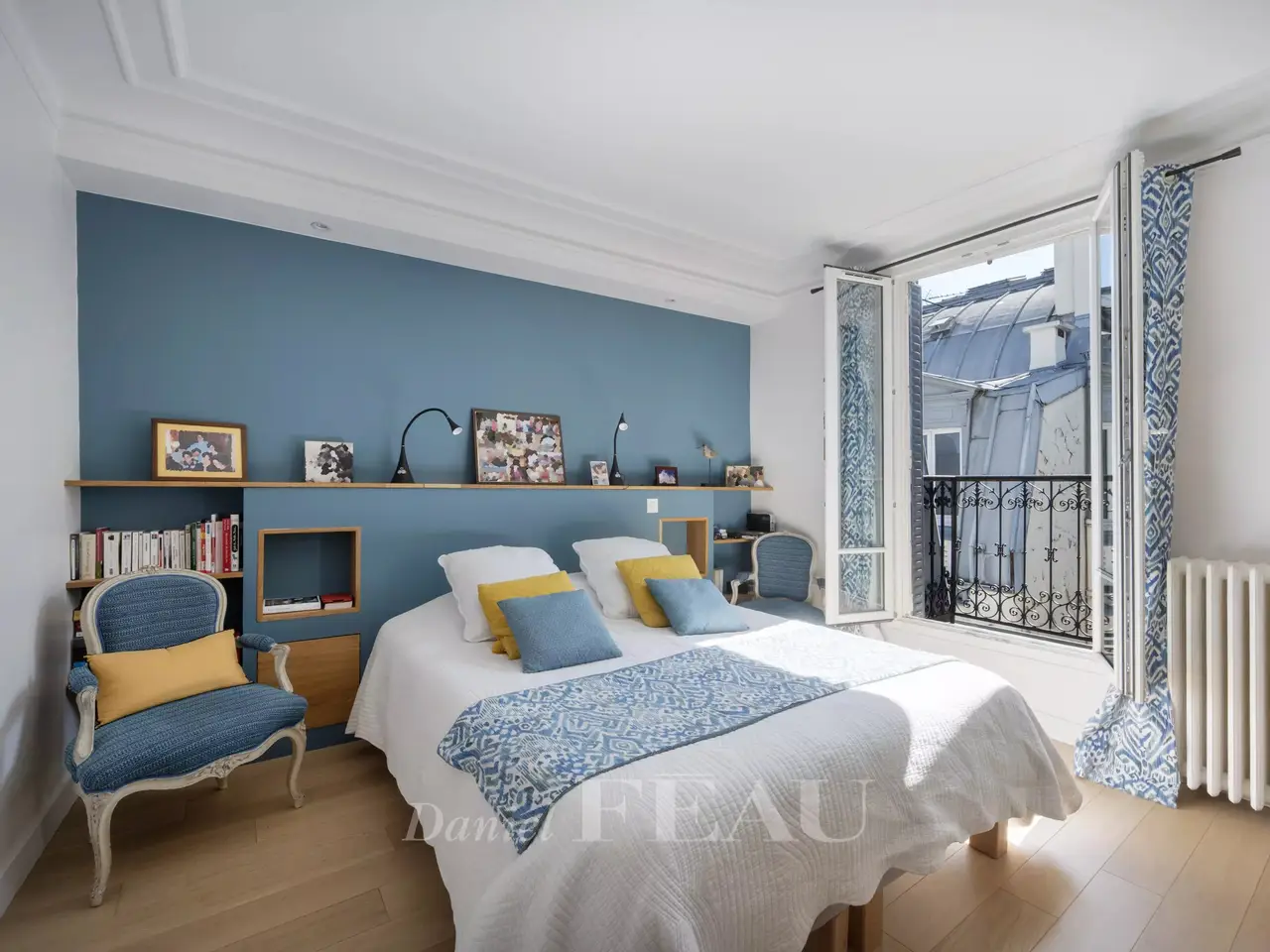 Saint Germain des Prés, near the iconic Café de Flore. This air-conditioned and fully south-facing apartment in perfect condition is on the top two floors of a fine late 19th century freestone building. Sunny and oozing with charm, it includes a living/reception room opening onto balconies, a kitchen/dining room, a bedroom with a shower room, two further bedrooms, a bathroom and three wc.