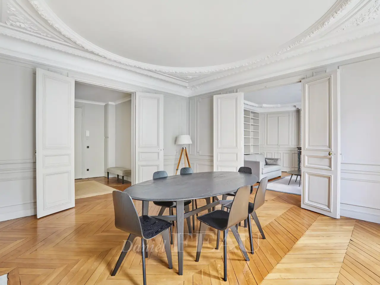 Rue de Bourgogne, near Palais Bourbon. This bright and peaceful 117.23 sqm apartment is on the 4th floor of a luxurious early 20th century building with a lift. Overlooking a courtyard garden, it includes two spacious living/reception rooms with fireplaces, a fitted and equipped kitchen with dining facilities, two bedrooms, a dressing room, a bathroom, a shower room and a separate wc. With a cellar.