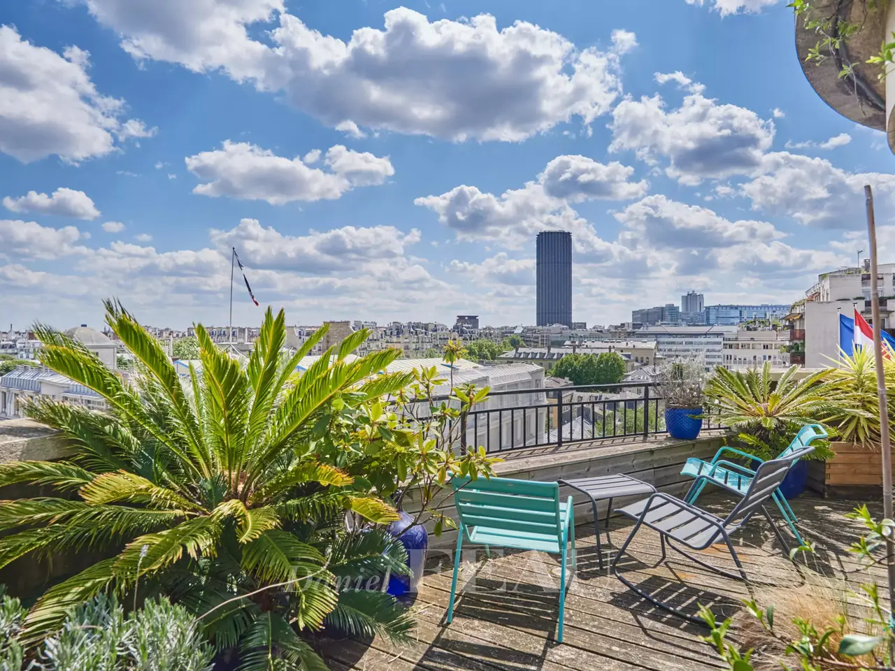Saint-François-Xavier neighbourhood. This 55 sqm apartment benefiting from a 66 sqm terrace is on the 8th and top floor of a mid 20th century building with a lift. It comprises a corner living/reception room opening onto the terrace commanding open views of Montmartre and the Invalides Dome, a separate kitchen, a bedroom, a bathroom, a utility room and a separate wc. A second bedroom with a shower room would be possible. Cellar. The buildinbg benefits from cycle storage premises.
