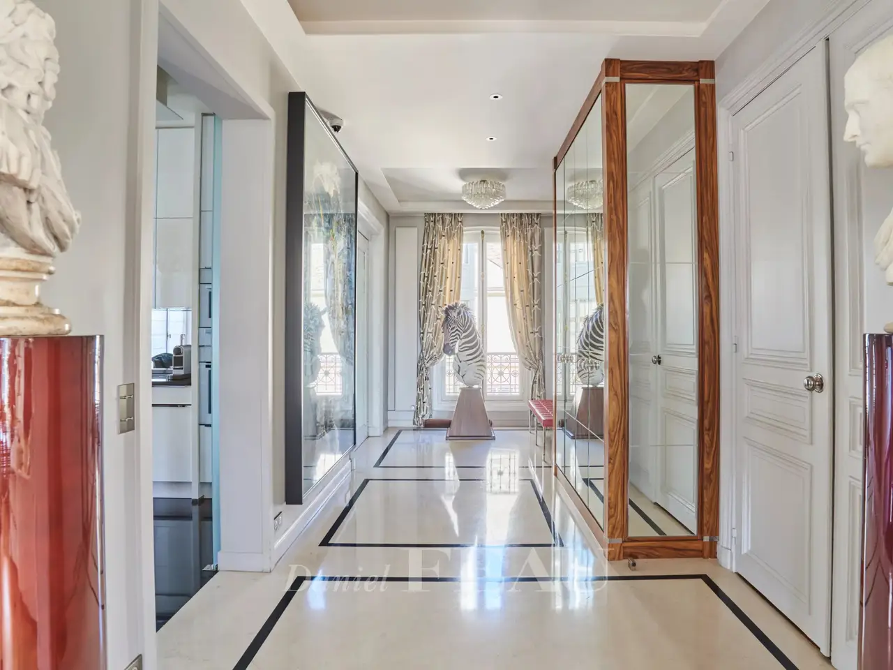 Saint Augustin neighbourhood, near the schools. This sunny corner apartment offering 315 sqm of living space in excellent condition is on the top two floors of a late 19th century freestone building with elegant common areas. Benefiting from a continuous balcony enjoying open views, it includes a 60 sqm double living/reception room, a 30 sqm dining room, a separate equipped kitchen, two spacious suites with bath/shower rooms and dressing rooms, a utility room and a little kitchen. A 4th bedroom would be possible. The main rooms are air conditioned. With a basement cellar and two maid’s bedrooms on the top floor.