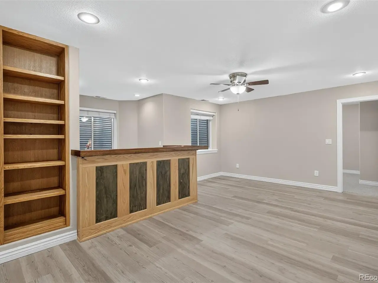 Theater room with wet bar