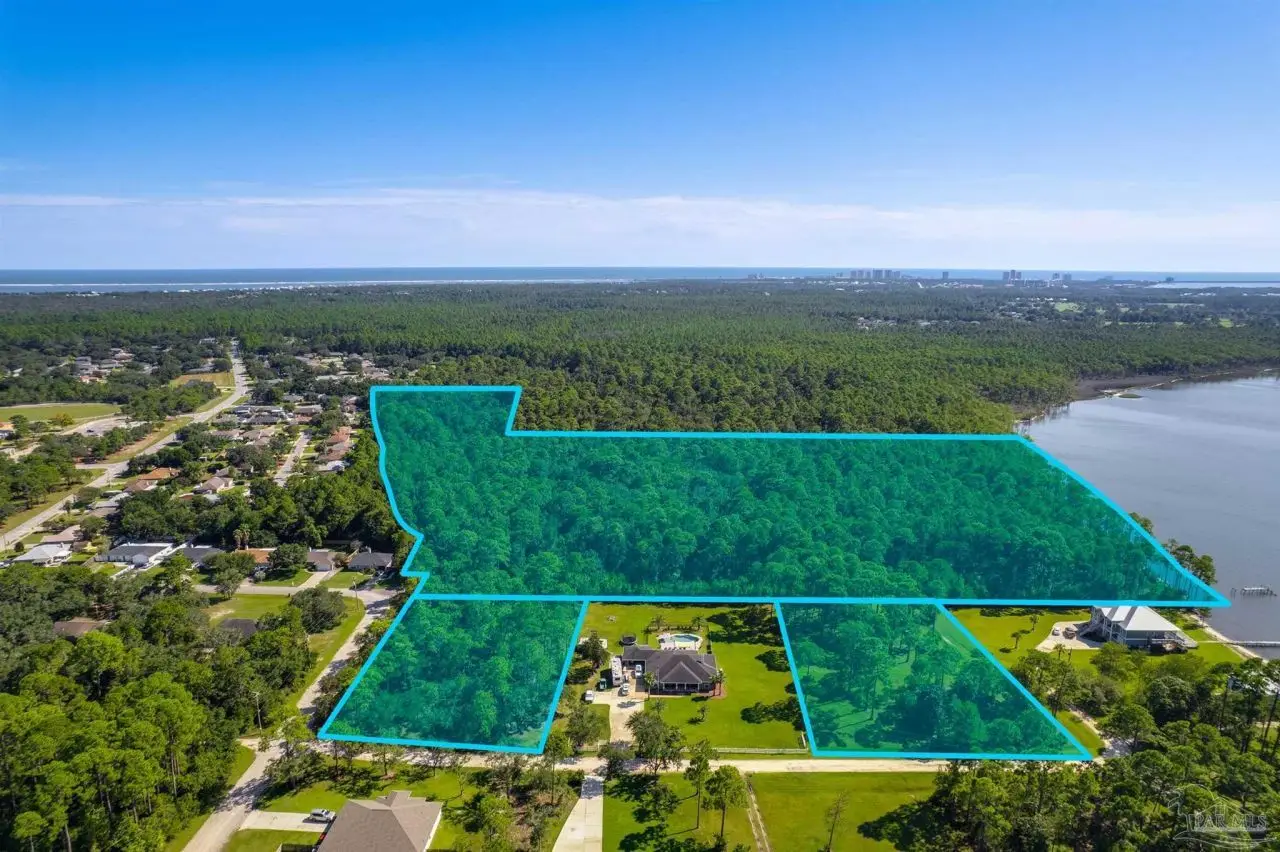 Rare opportunity! This 30.81-acre property along Perdido Bay in Perdido Key/Pensacola offers an incredible 850 feet of waterfront-making it one of the largest and most versatile land offerings in the area. Whether you're dreaming of building a private estate, family compound, or developing a resort-style community, the possibilities are endless. Developers will love the potential here: room for both waterfront and interior homes, plus space for amenities like a pool, pickleball courts, pavilion with fireplace, boardwalks, trails, and a community beach with picnic area. The property is as beautiful as it is expansive, with mature trees, native vegetation, and abundant wildlife creating a peaceful natural setting. The wide bay frontage is ideal for boating, fishing, kayaking, or simply relaxing while soaking in the views and coastal breezes. Just minutes from Perdido Key's sugar-white beaches, Orange Beach, and the Gulf of Mexico, you'll also enjoy easy access to NAS Pensacola, downtown Pensacola, and nearby parks like Tarkiln Bayou Preserve with miles of hiking and bird-watching trails. This is truly a rare find-vast acreage, significant waterfront, and unmatched natural beauty all in one location. Whether kept as a private sanctuary or transformed into a thoughtfully designed community, this land is a blank canvas ready for the vision of its next owner. Totaling three parcels - giving you multiple access points. The Alabama Pass is just a 30-minute boat ride away, giving you endless access to both inshore and offshore adventures. Don't miss your chance to secure a remarkable piece of Perdido Bay.