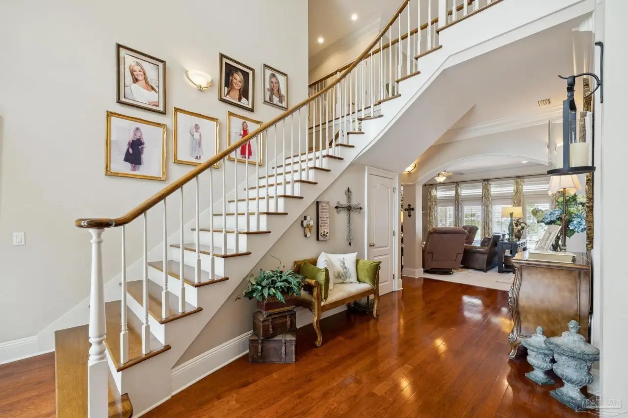 Discover coastal elegance at this stunning 5-bedroom waterfront estate perfectly positioned on a pristine stretch of shoreline overlooking pristine Johnson's Beach. This extraordinary residence offers the ultimate blend of privacy, comfort, and breathtaking views-complete with its own sandy white beach and gunite pool. Step inside to find a thoughtfully designed floor plan featuring a formal dining room ideal for hosting gatherings, a dedicated home office for remote work or study, a spacious waterfront living room with panoramic water views, a chef's kitchen ready for everyday meals or upscale entertaining a sunroom, a luxurious primary suite and a guest bedroom all on the main level. A spacious family room with built in cabinetry upstairs opens to three generous bedrooms and a game room perfect for entertaining. The 2-car garage adds convenience and storage, while the expansive covered outdoor area creates your own personal retreat with a private pool just steps from the water's edge. Enjoy sunrise strolls on your own beach, sunset views over the bay, and quick access to the natural beauty of Johnson's Beach and the Gulf Islands National Seashore-just minutes from your back door. This rare waterfront gem combines luxury living with laid-back coastal charm. Whether you're looking for a full-time residence or a private escape, this is where your dream lifestyle begins. Schedule your private tour today and experience waterfront living at its finest.