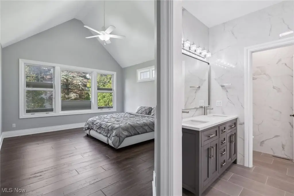 Striking modern colonial home in Sterling Lakes of Pepper Pike. Exceptionally maintained grounds makes this low-maintenance GATED community of prestigious homes stand out like no other in the area. Beautifully set among other fine homes, this property offers tasteful upgrades & updates throughout. The first floor layout keeps ease of living in mind, w/a spacious & vaulted 1st floor owners suite boasting remodeled glamor bath with fully tiled walk-in shower, soaking tub & his/her closets, among other fine details. The renovated modern eat-in kitchen boasts a waterfall quartz top center isle, stunning counter top lighting, exceptional walk-in pantry, plus butler's pantry pass-through to the formal dining room. A floor to ceiling gas fireplace warms the space w/stone veneer. The private first floor den/sitting room is smartly set away from the hustle and bustle, offering it's own private patio to steel away w/your thoughts. The stairs & loft area have been fully transformed with a sleek cable railing system, adding to the dramatic modern appeal. Two addl spacious bedrooms w/2 full baths, plus large loft area provide private quarters for family & guests. The recently finished basement adds tremendous flex space (approx 1500 sqft), including recreation, storage, and bedroom suite, offering a large closet & full bath. This property has been transformed from traditional to stunningly modern, including but not limited to: new solid surface flooring throughout (no carpet), lighting, paint, baseboards, fully remodeled kitchen and baths, two full bath added, basement finished, & so much more! 1st floor laundry room. 3 car garage w/8' doors and built in cabs. Low maintenance living includes lawn care, landscaping, snow removal & general grounds care. Enjoy the meandering walking paths overlooking multiple water views around the community. Excellent location. Close to I-271, fine shopping, and some of the best hospitals and schools in Greater Cleveland! Quick possession if needed.