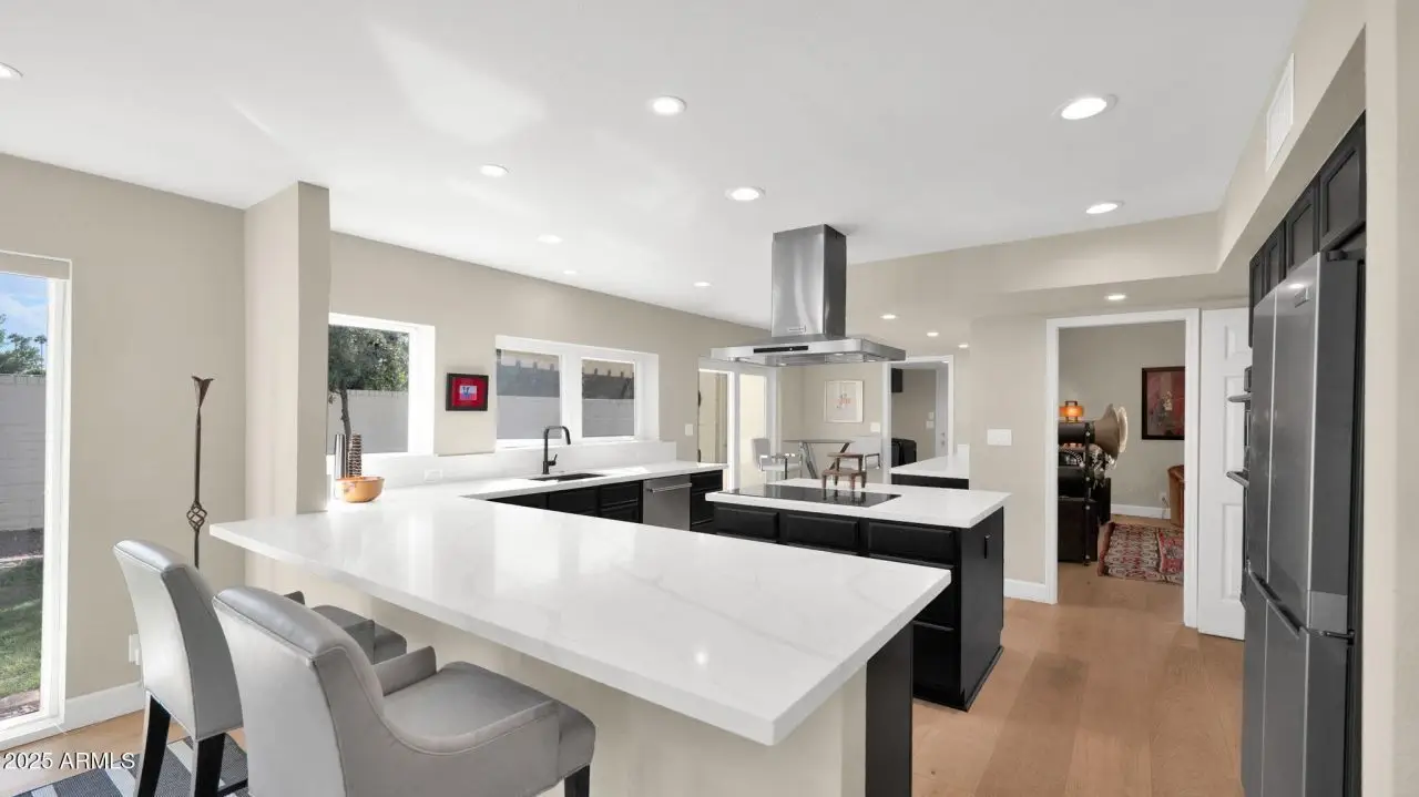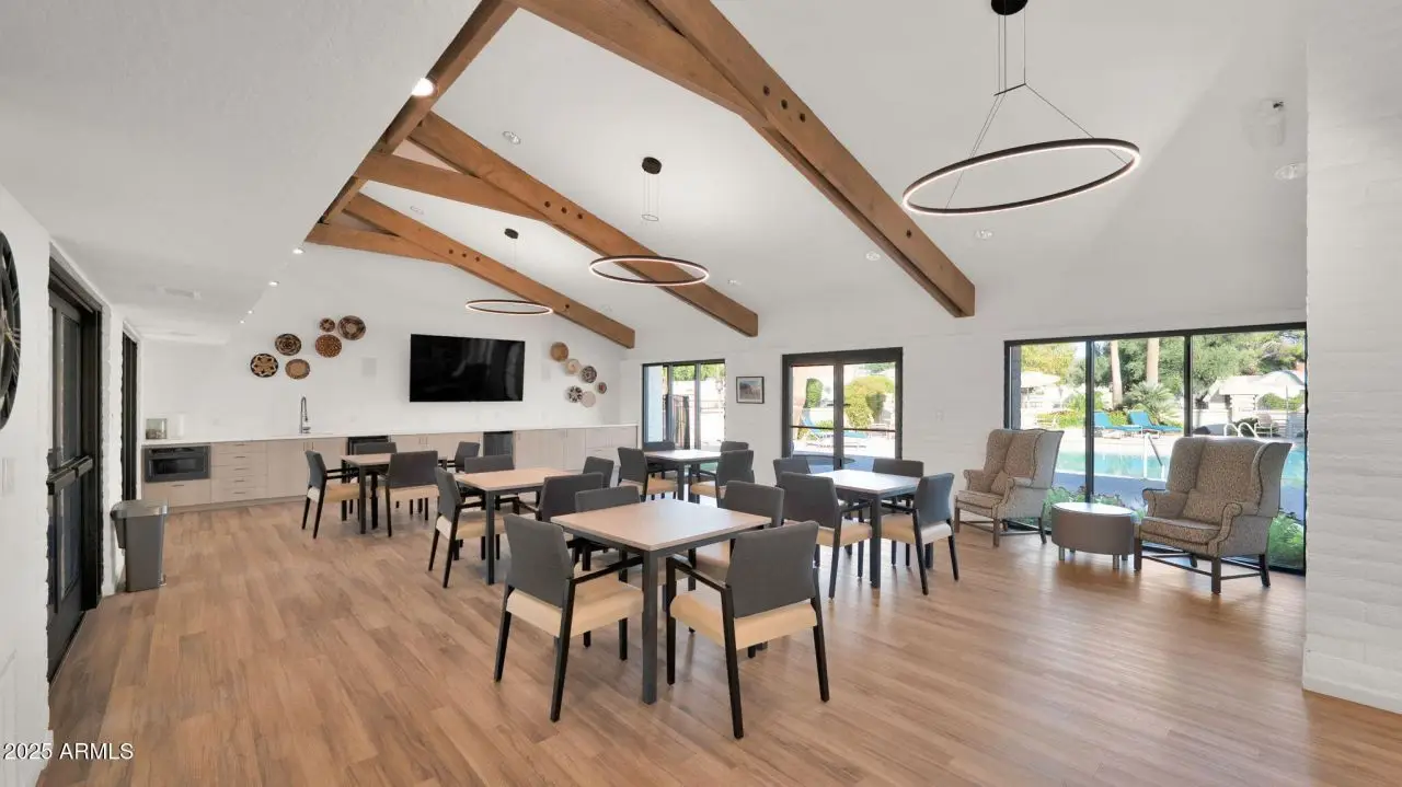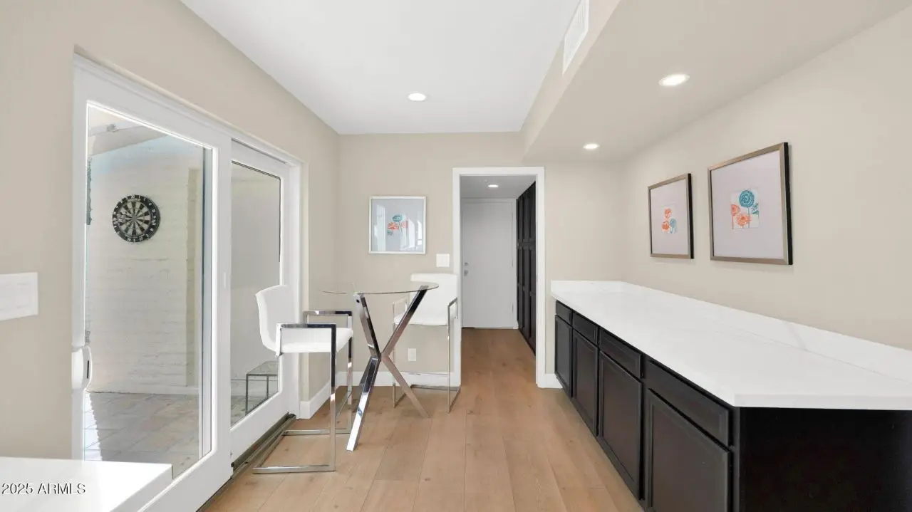 Poised behind the gates of Coulter Estates, this North Central classic blends timeless character with modern updates. The entry opens to a beautiful listening room with elevated ceilings and a vintage crystal chandelier that sets the tone for whats to come. New wood floors lead to a hearth room centered around a floor-to-ceiling tiled fireplace...warm, inviting, and perfectly scaled. The updated kitchen features generous quartz counters and windows, opening to a cozy den with a wet bar. The spacious primary suite extends to the patio, while the all-new bath offers a walk-in shower, dual vanities, and a dream-worthy dressing area. Life in Coulter Estates is as much about the neighborhood as the home itself...once you experience it, youll understand why. Coulter Estates is one of North Central Phoenixs most desirable gated enclaves, known for its lush landscaping, timeless architecture, and friendly sense of community. This homes thoughtful updates enhance its classic design with warm wood flooring, quartz countertops, and a neutral palette that complements any style. The layout offers flexible living spaces, an office or third bedroom, and a seamless connection to the private patio for indoor-outdoor living. Positioned on a large corner lot of over 11,000 sq. ft., it offers a generous driveway, side parking, and endless potential for your own vision. Residents enjoy a community pool, tennis courts, and a prime location just steps from the Uptown Farmers Market. Minutes to Postino, Windsor, LGO, the 7th Street dining corridor, downtown, and Sky Harbor...this home captures the best of North Central living: charm, convenience, and enduring value.
