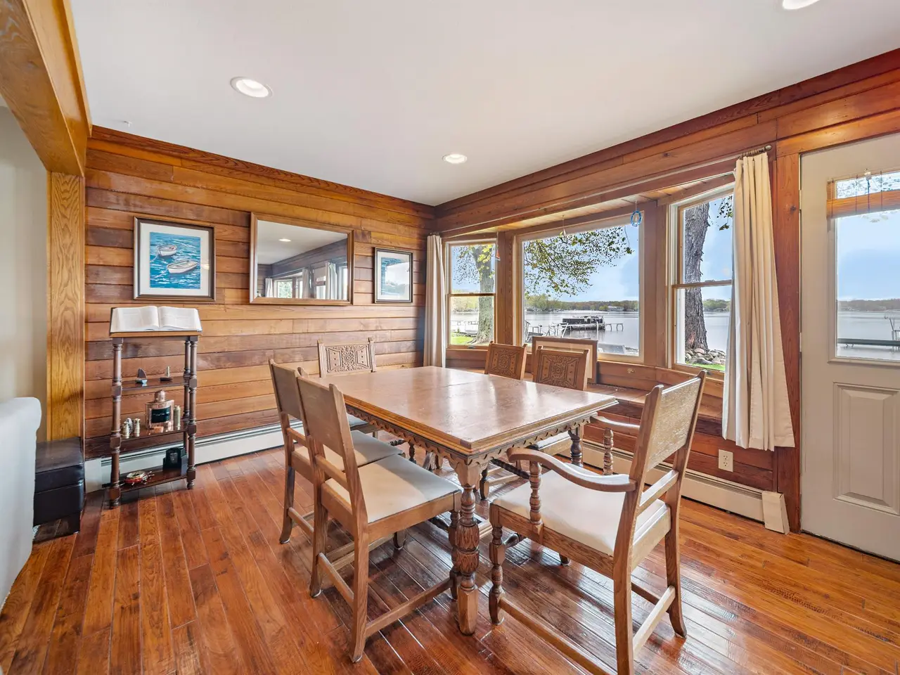 • Lodge-like charm with wood-paneled walls