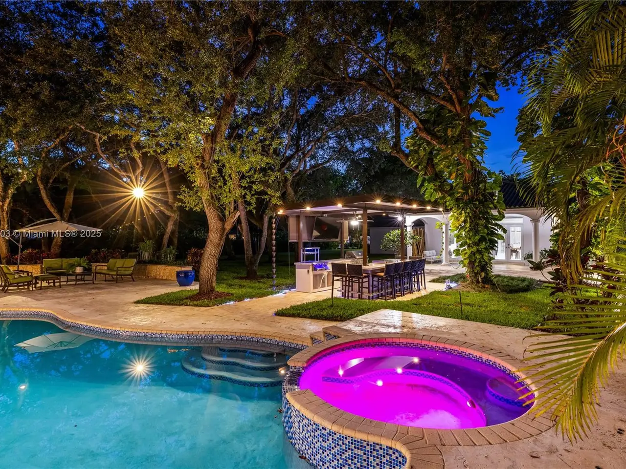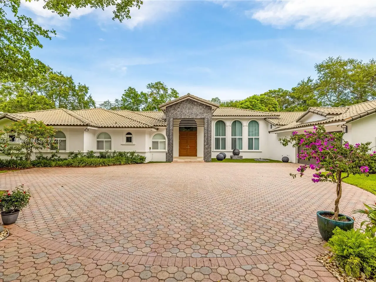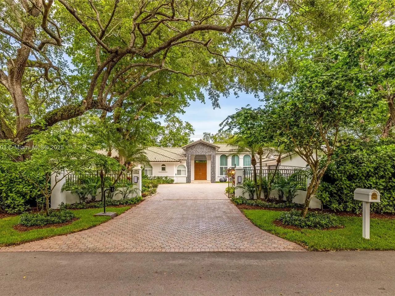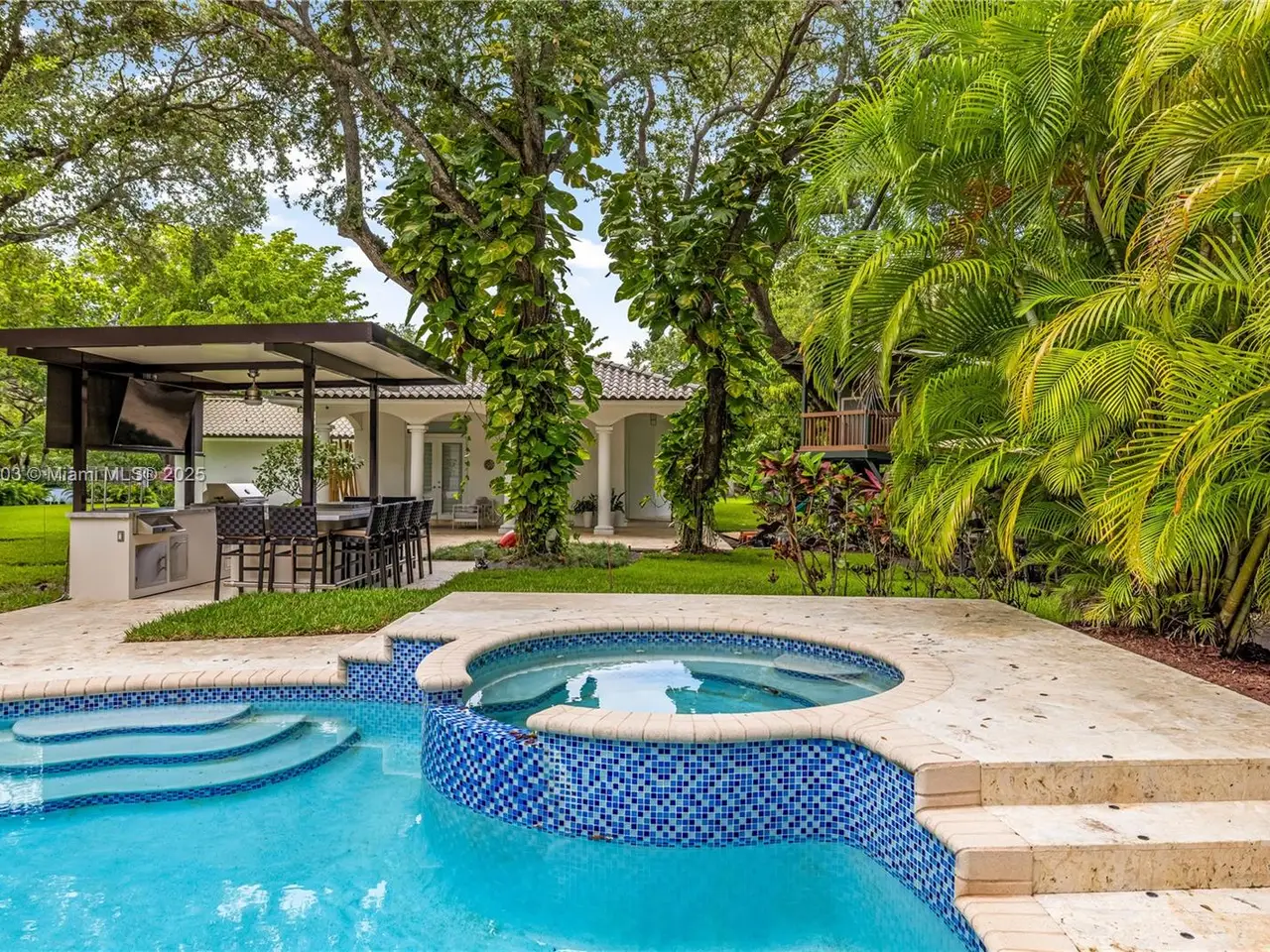 Stunning gated 1-story 8,126 total SF residence on a quiet cul-de-sac in prime North Pinecrest, steps from Gulliver & Beth Am. Set on a lush 1.1 acre with a 2-story, 1,300 SF guesthouse, treehouse, & ample parking. The 6-bed, 5.5-bath main home offers an office, new impact windows/doors, & Firenze Carrara polished marble tile throughout. Gourmet kitchen boasts a leather-textured marble island, Veneta Cucine cabinetry, & Miele appliances. Guest bath features full-height, single-slab Italian tile. Primary suite includes dual walk-in closets & a spa-style bath with Kohler DTV+ faucet less system for steam, audio, chromotherapy, & lighting. Whole-house Brilliant system manages lighting, Zoom intercom, & Sonos audio indoors/out. Outdoor oasis includes a new summer kitchen & resort-style pool.