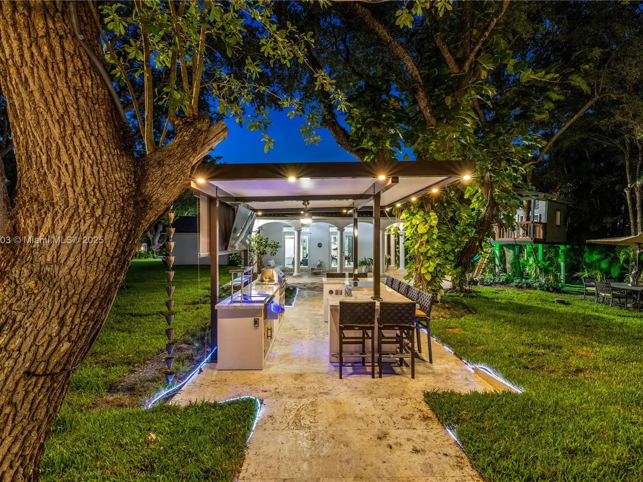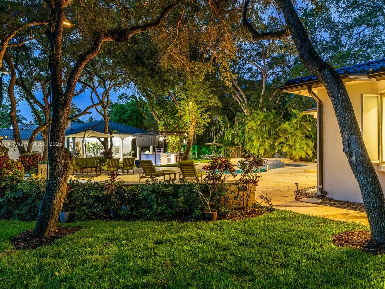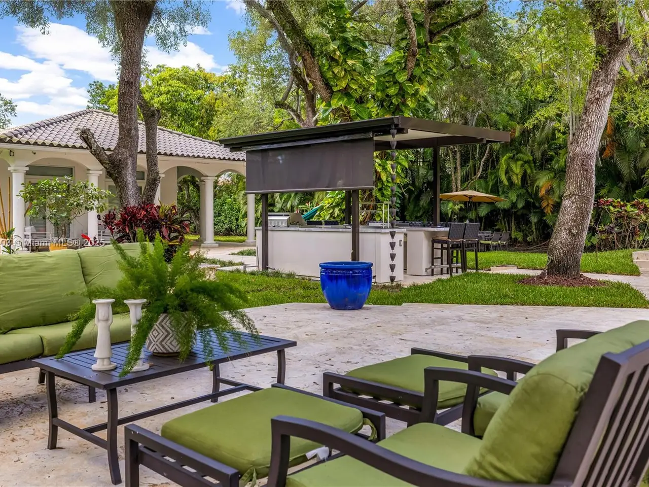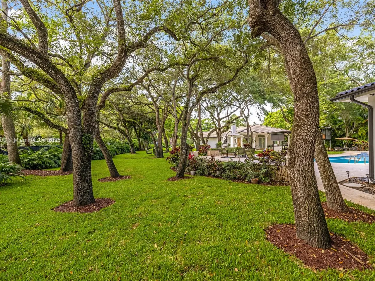 Stunning gated 1-story 8,126 total SF residence on a quiet cul-de-sac in prime North Pinecrest, steps from Gulliver & Beth Am. Set on a lush 1.1 acre with a 2-story, 1,300 SF guesthouse, treehouse, & ample parking. The 6-bed, 5.5-bath main home offers an office, new impact windows/doors, & Firenze Carrara polished marble tile throughout. Gourmet kitchen boasts a leather-textured marble island, Veneta Cucine cabinetry, & Miele appliances. Guest bath features full-height, single-slab Italian tile. Primary suite includes dual walk-in closets & a spa-style bath with Kohler DTV+ faucet less system for steam, audio, chromotherapy, & lighting. Whole-house Brilliant system manages lighting, Zoom intercom, & Sonos audio indoors/out. Outdoor oasis includes a new summer kitchen & resort-style pool.