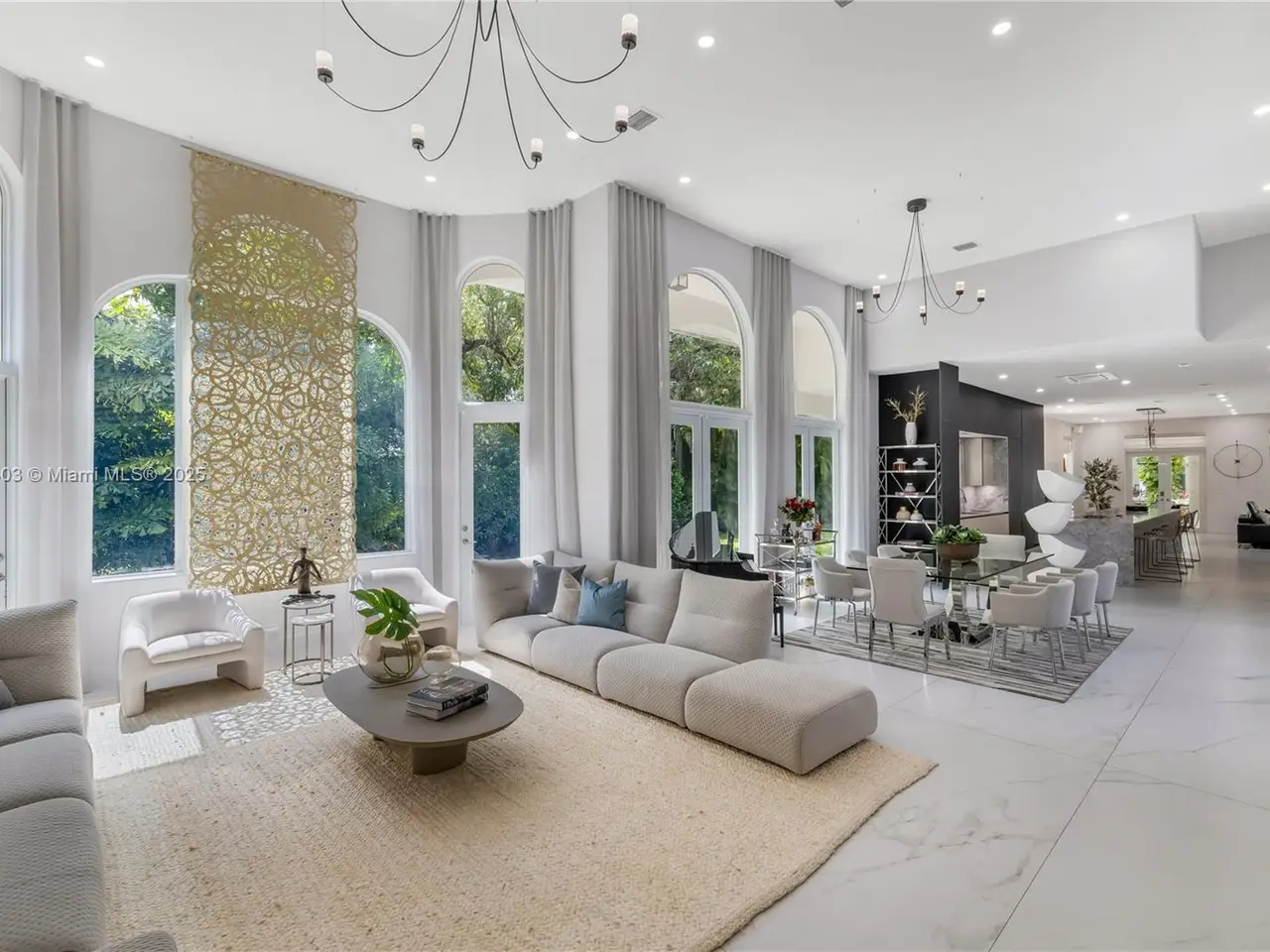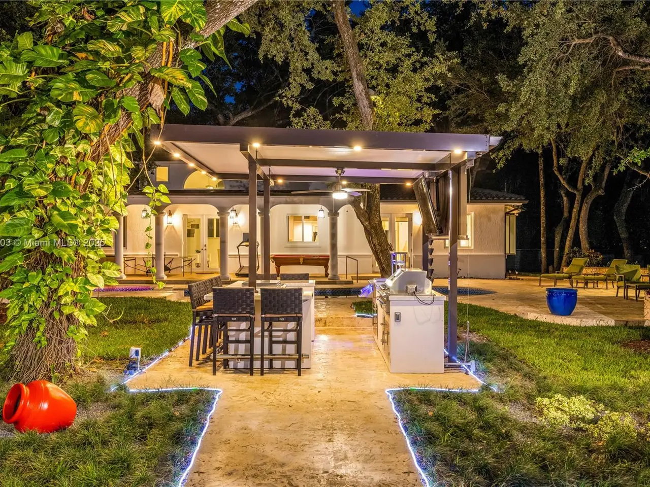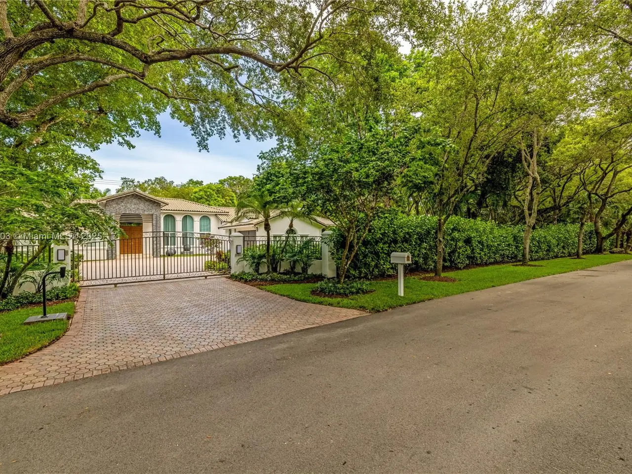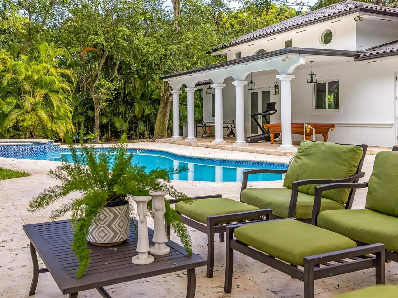 Stunning gated 1-story 8,126 total SF residence on a quiet cul-de-sac in prime North Pinecrest, steps from Gulliver & Beth Am. Set on a lush 1.1 acre with a 2-story, 1,300 SF guesthouse, treehouse, & ample parking. The 6-bed, 5.5-bath main home offers an office, new impact windows/doors, & Firenze Carrara polished marble tile throughout. Gourmet kitchen boasts a leather-textured marble island, Veneta Cucine cabinetry, & Miele appliances. Guest bath features full-height, single-slab Italian tile. Primary suite includes dual walk-in closets & a spa-style bath with Kohler DTV+ faucet less system for steam, audio, chromotherapy, & lighting. Whole-house Brilliant system manages lighting, Zoom intercom, & Sonos audio indoors/out. Outdoor oasis includes a new summer kitchen & resort-style pool.