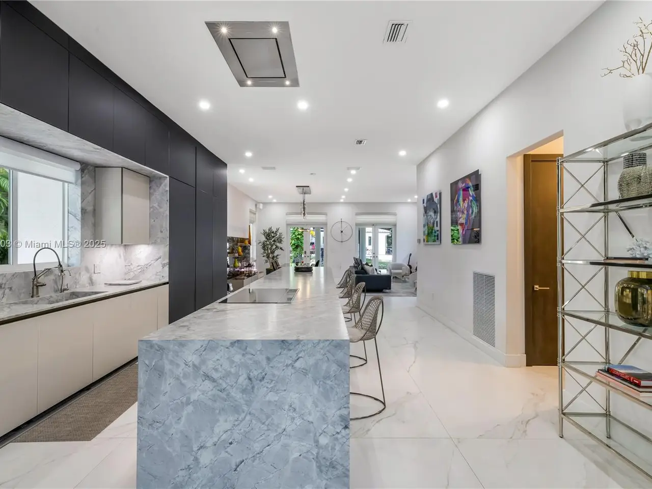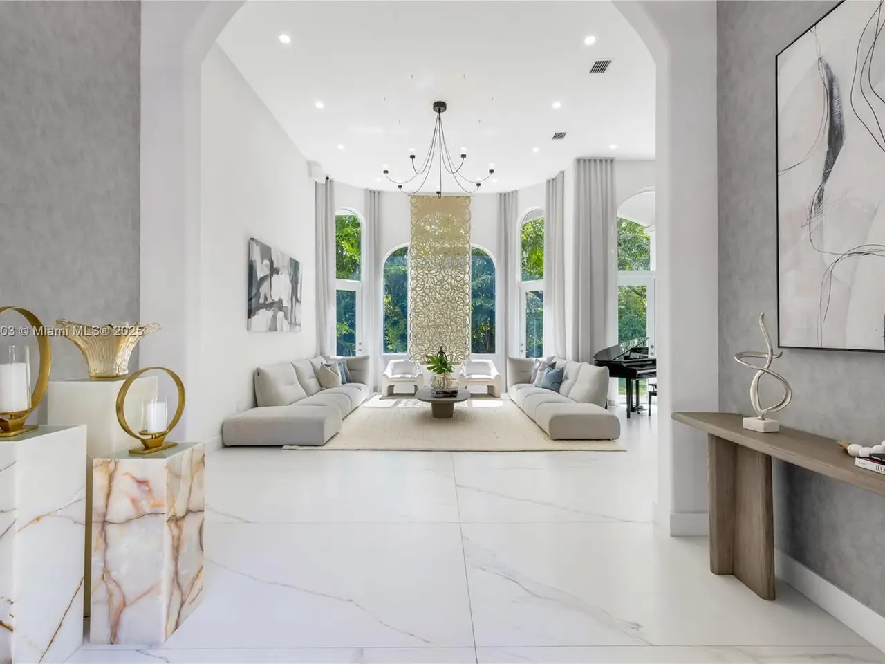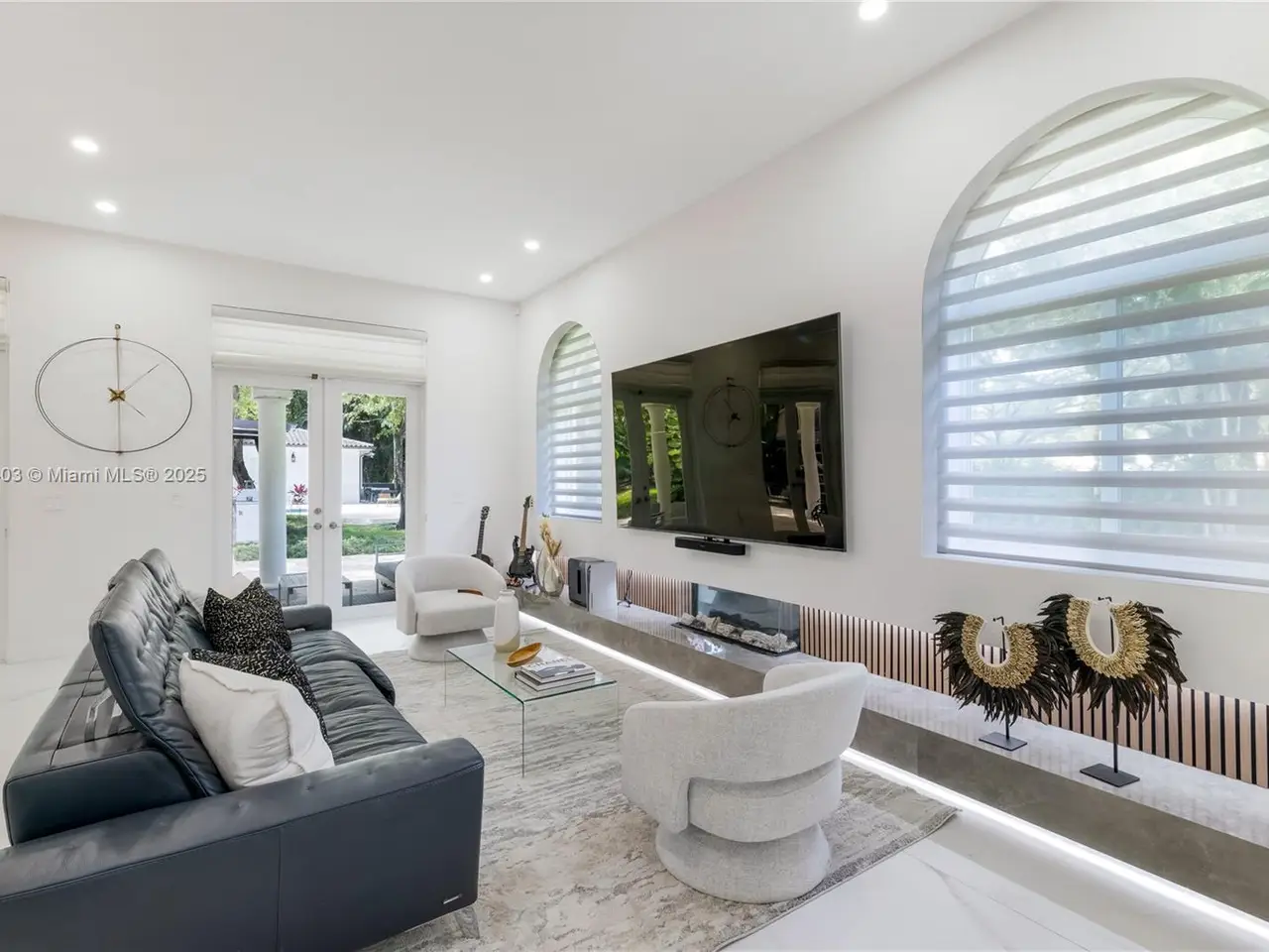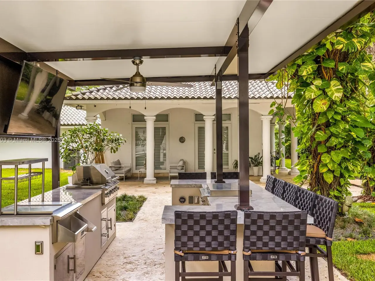 Stunning gated 1-story 8,126 total SF residence on a quiet cul-de-sac in prime North Pinecrest, steps from Gulliver & Beth Am. Set on a lush 1.1 acre with a 2-story, 1,300 SF guesthouse, treehouse, & ample parking. The 6-bed, 5.5-bath main home offers an office, new impact windows/doors, & Firenze Carrara polished marble tile throughout. Gourmet kitchen boasts a leather-textured marble island, Veneta Cucine cabinetry, & Miele appliances. Guest bath features full-height, single-slab Italian tile. Primary suite includes dual walk-in closets & a spa-style bath with Kohler DTV+ faucet less system for steam, audio, chromotherapy, & lighting. Whole-house Brilliant system manages lighting, Zoom intercom, & Sonos audio indoors/out. Outdoor oasis includes a new summer kitchen & resort-style pool.