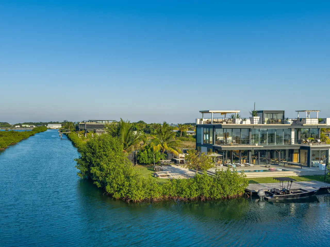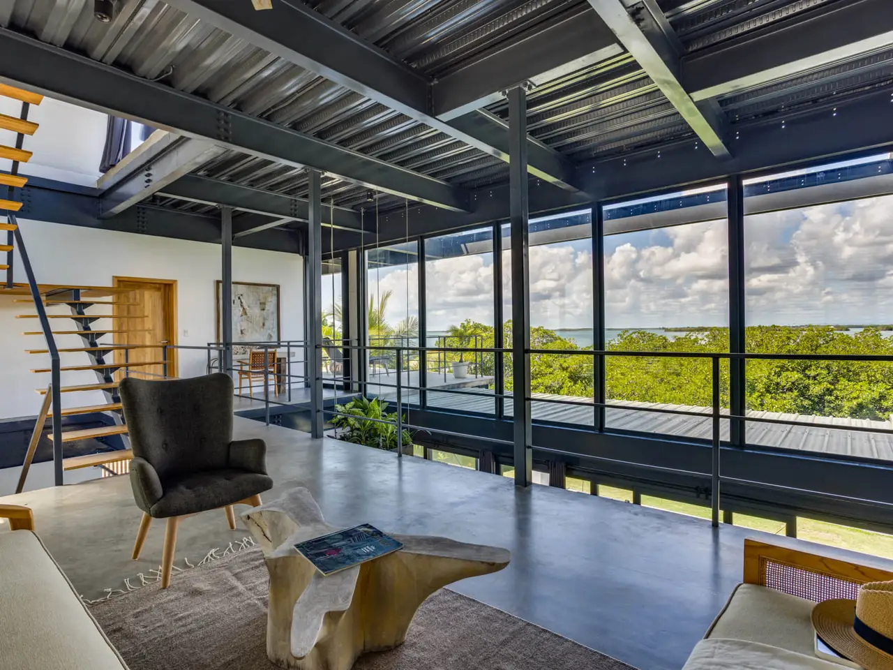 Discover Casa Balam, a striking 5,600 sq. ft. villa set on 200 ft. of lagoon frontage in a serene residential enclave on the Placencia Peninsula. Blending modern luxury with tropical living, this steel-and-concrete masterpiece was engineered with hurricane-resistant features and designed for style, comfort, and functionality. Inside, the open-concept great room boasts floor-to-ceiling hurricane-rated windows, a chef’s kitchen with commercial-grade appliances, and elegant living and dining areas. The lower level offers a guest suite with an ensuite bath, a second bedroom with a shared bath, and direct access to the expansive pool deck with a 40 ft. pool and private dock. Upstairs, a floating staircase leads to a mezzanine lounge with a custom workstation, flanked by two lavish master suites with private balconies and sweeping lagoon views. The primary master features a spa-like bath, oversized walk-in closet, and access to an outdoor entertainment area with a fire pit, picnic space, and wood-fire oven. For the ultimate in outdoor living, the rooftop deck includes a bar, shaded lounge, and dining area perfect for sunsets and stargazing. Premium finishes throughout include Balinese and local furnishings, custom chandeliers, alpaca rugs, and built-in entertainment features such as a media lounge and full-size table tennis setup. Surrounded by manicured, edible landscaping and fully air-conditioned for year-round comfort, Casa Balam also generates up to $1,500 USD per night as a luxury rental making it an exceptional residence and investment opportunity.