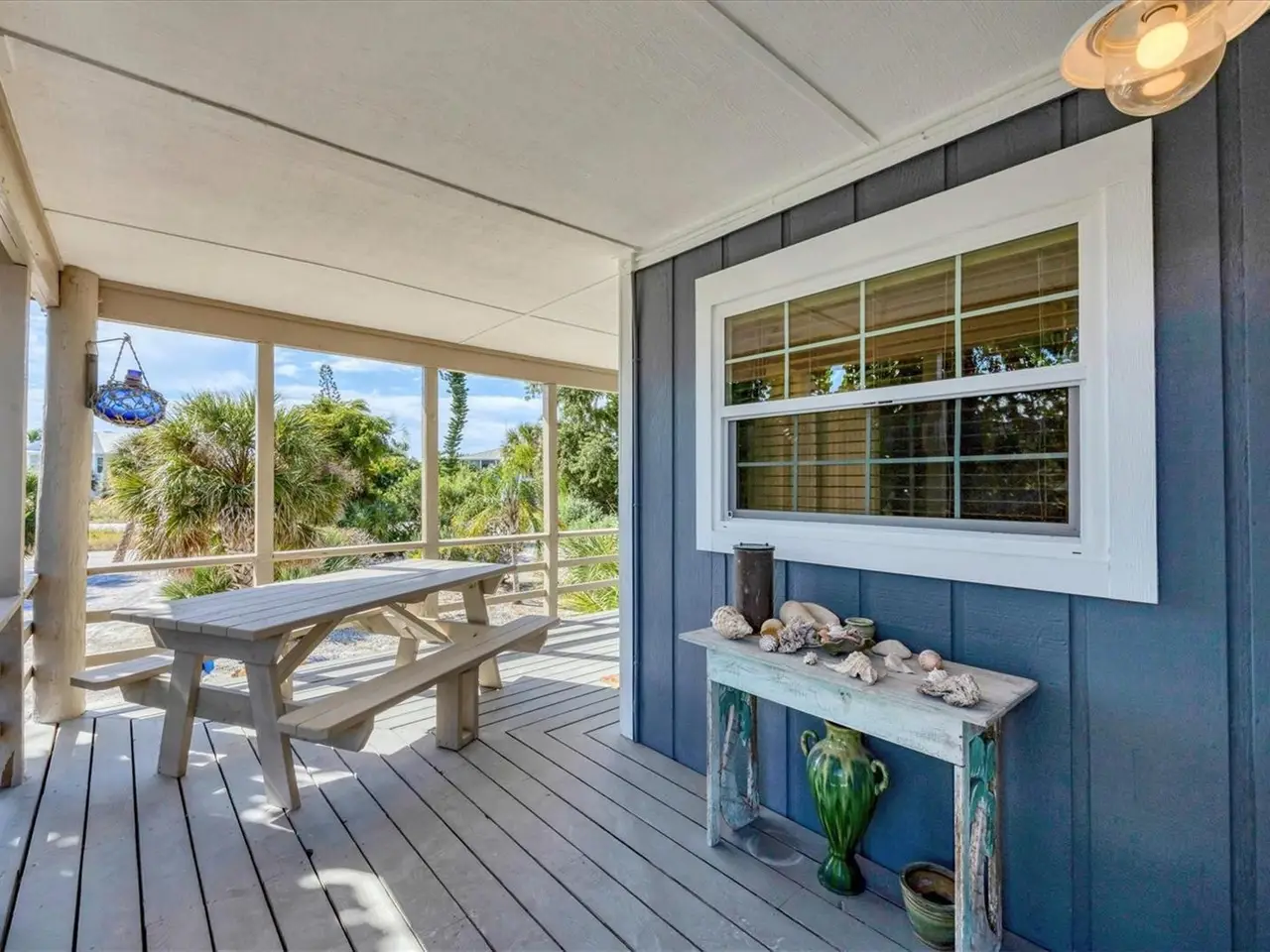 Welcome to Don Pedro Palm Island. This home is uniquely located on sailboat deep water with one of the largest open views of Old Bocilla Pass. These properties rarely become available. You have the opportunity to purchase this Key West Pole Barn designed home with large wrap around covered porches, a separate free standing 12x16 shed/work shop plus a private dock with AZEK decking and 10,000-pound boat lift all situated on an oversized parcel that has plenty of space for a private pool. No bridges to the ICW and the Gulf of Mexico for your boating pleasure. As you enter the home, you'll notice the vaulted ceilings, southern pine walls, and open floor plan. 3 sets of glass sliders in the great room that bring the outdoor living indoors with access to the covered porches. There's also a wood burning fireplace surrounded by a coral mantel. The spacious updated kitchen opens to the dining and living area for easy entertaining. There is a beautiful second floor loft with travertine flooring plus an office space, large entertainment area plus the primary suite that offers two sets of French doors and beamed ceilings. The primary bath offers dual sinks, updated cabinetry and walk in shower. The third-floor bedroom does not have a door or closet but is considered to be a 3rd bedroom by county records. Please call to view this custom home with high impact windows or accordion hurricane shutters with many recent upgrades including in 2024 upgraded electrical, hardy board siding, crab trap and hot water heater. In 2023 new HVAC system. In 2022, a new metal roof on the house and shed and in 2019 plumbing upgraded to PEX, plus in 2018 a new drain field. Come see what Palm Island has to offer.