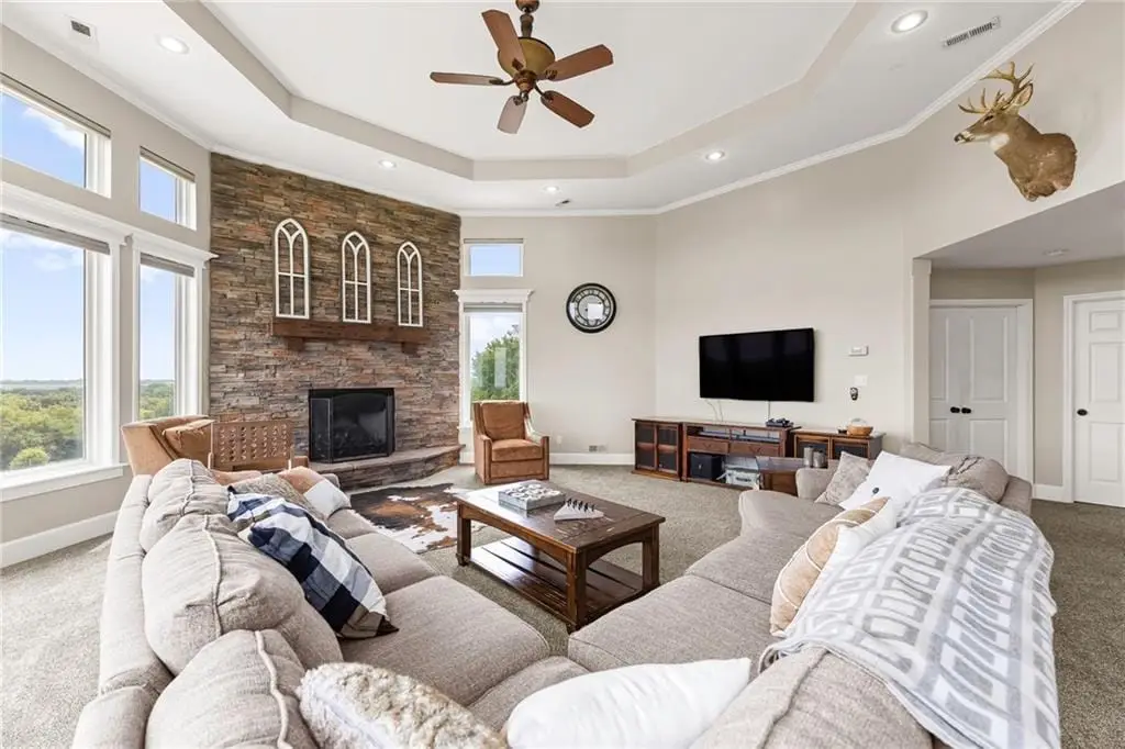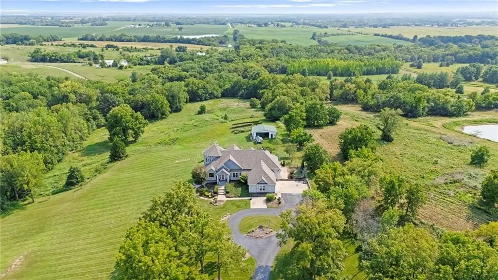 STUNNING PRIVATE ESTATE FOR SALE! Live in luxury and enjoy VERY LOW UTILITY BILLS DUE TO NEARLY NEW SOLAR ARRAY SYSTEM WITH WARRANTY! Explore all the spectacular features of this architecturally custom-designed home that is suited for the setting. See for many miles from the upper level living room, or from the lower level suite designed as an living area for multi-generation occupants. There are 3 Primary Suites within this property! Commute to downtown KC in 45 minutes, Lake Ozark in 2.5 hours, Pleasant Hill or Harrisonville in 15 minutes, and Lee's Summit in 20 minutes. The barn, chicken coop, garden boxes and winding trails through the woods and creek offer many hours of enjoyment for kids and grandkids. Come explore the hidden treasures on this property. Come back to live in a quiet natural-habitat!