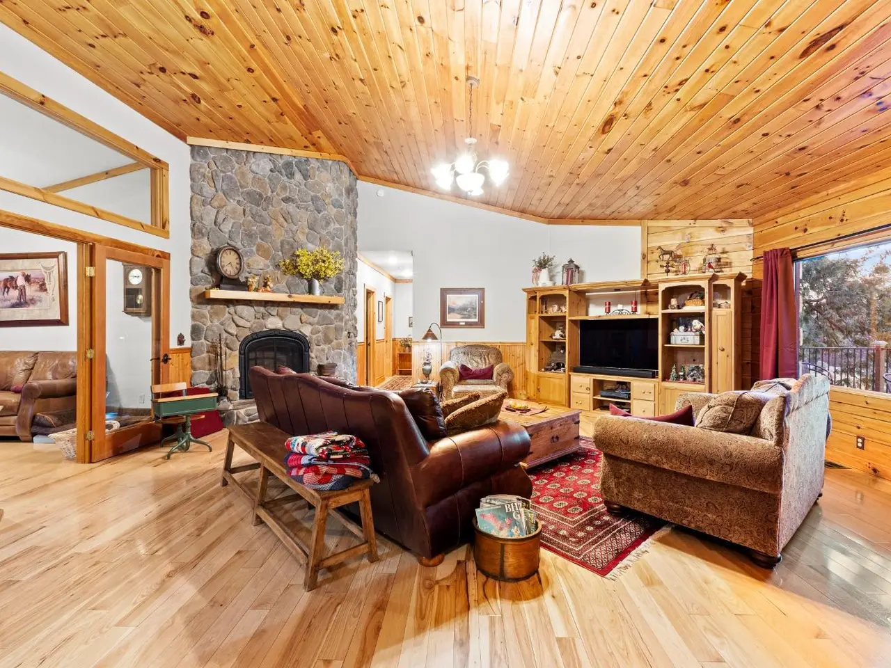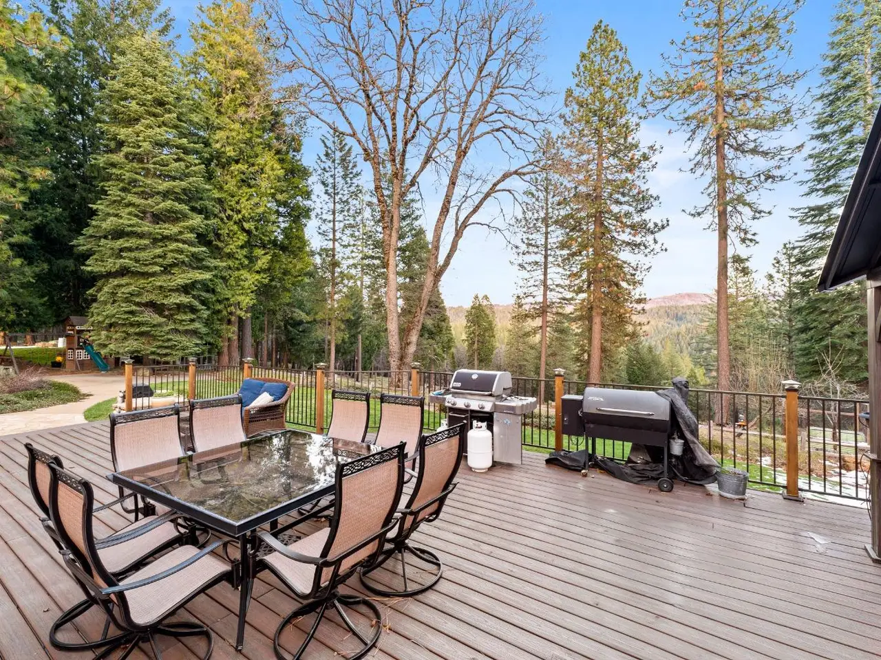 Escape to the peace and beauty of the Sierra Mountains with this stunning 10-acre log cabin retreat, perfectly designed for both comfort and country living. This 3-bedroom, 3-bathroom home showcases wood floors, custom brick tile work, granite countertops, and a cozy wood stove that sets the tone for mountain living. Large windows and expansive decks invite you to take in the breathtaking views and soak up the serenity of your private haven. Ideal for horse lovers, the property features a 3-5 stall barn, a tack room, a fenced horse area, and plenty of space for riding and roaming. Whether you're tending to the garden, sipping coffee on the deck, or enjoying the golden hour with your horses nearby, this home is your own slice of rustic paradise. Located just minutes from scenic Jenkinson Lake, you'll have easy access to kayaking, paddle boarding, fishing, and hiking. Enjoy the charm of nearby Apple Hill with its orchards, seasonal festivals, and family-run farms, or spend the day exploring local award-winning wineries just a short drive away. For a full mountain escape, South Lake Tahoe is just an hour away. Ideal for skiing, boating, dining, and entertainment year-round.
