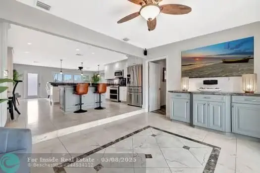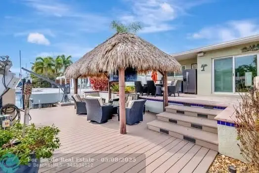 Paradise awaits! Discover your new waterfront home in Pompano Beach, featuring NO FIXED BRIDGES and 77 feet of water frontage with a composite dock and direct ocean access. Boating enthusiasts will love the remote-controlled 25,000 lb boat lift and submersible jet ski lift. Step into your private resort-style backyard, complete with a heated pool, outdoor kitchen, and a luxurious tiki hut equipped with lighting, surround sound, cable, and a ceiling fan. Inside, this beautifully designed home offers 3 bedrooms, 2 bathrooms, a spacious interior laundry room, and a attached garage. The open floor plan includes two living areas and an oversized, remodeled kitchen—perfect for entertaining. All of this is just blocks from the beach, top-rated restaurants, shopping, and private schools.
