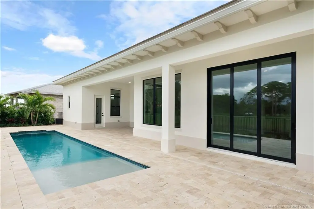 Refined liv??ng at ??ts be??t ??n th???? C??stal Modern offering b?? GH?? Homes. Featuring twelve ft. high ceiling with oversized storm guard windows & doors along with a large covered patio overlooking the pool. Family room, kitchen & dining create a one of kind living experience. Club room with full cabana bath is ideal for play or could be a 4th Bedroom. The kitchen features: Cafe series appliances, natural gas cooktop, 42'' double door frig., build in convection wall oven, quartz counter tops, stacked upper cabinets with glass accent doors along with walk in pantry. The primary suite feature, two closets with custom shelfs, 12 ft high tray ceiling, oversized sliding door with access to covered patio/pool area. Primary bath has two vanities, soaking tub & premium shower. Move in ready home.