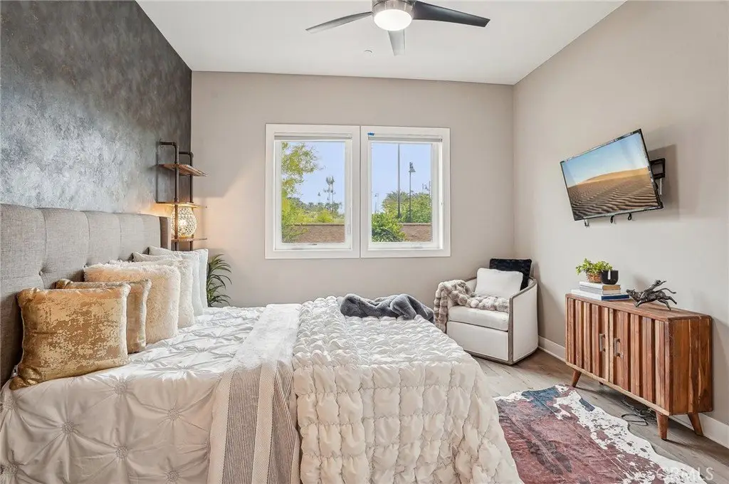 Discover this beautifully crafted home in the prestigious gated community of Avila at Porter Ranch, where luxury, energy independence, and peace of mind come together. The grand entryway features custom stone walls and a warm wood ceiling, setting the tone for a residence that blends elegance and comfort. Inside, the open floor plan offers 4 spacious bedrooms, 4 bathrooms, and a versatile loft, all framed by soaring 10-foot ceilings on the main level and designer railings along a sweeping staircase. At the heart of the home, the gourmet kitchen impresses with quartz countertops, a built-in refrigerator, soft-close cabinetry, a walk-in pantry, and an oversized island ideal for gatherings. The great room’s 15-foot stacking sliding doors open to a covered outdoor lounge, creating seamless indoor-outdoor living enhanced by a cozy fireplace and automatic window shades. Upstairs, the primary suite serves as a tranquil retreat with a private balcony and mountain views, a custom walk-in closet, and a spa-like bath featuring dual vanities, a soaking tub, and an oversized shower with surround sound. Designed for energy efficiency and resilience, the home includes a fully paid Tesla solar system with 20+ panels and three Tesla Powerwall batteries, often yielding zero electrical costs under normal use. Security and comfort are elevated with Riot Glass reinforced sliding doors on both levels, security film on all windows, and a Campbell Security steel-reinforced side garage door. Motorized patio and balcony screens allow fresh airflow while maintaining privacy. A whole- house water softener, air-scrubber system, and polished concrete finishes add quality and value. Residents of Avila enjoy exclusive access to a resort-style pool, spa, cabanas, and a private banquet room, surrounded by top-rated schools, parks, and The Vineyards at Porter Ranch for premier shopping and dining. This home delivers the ultimate blend of security, sustainability, and sophistication.