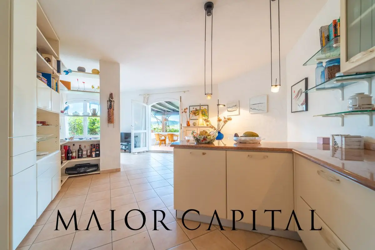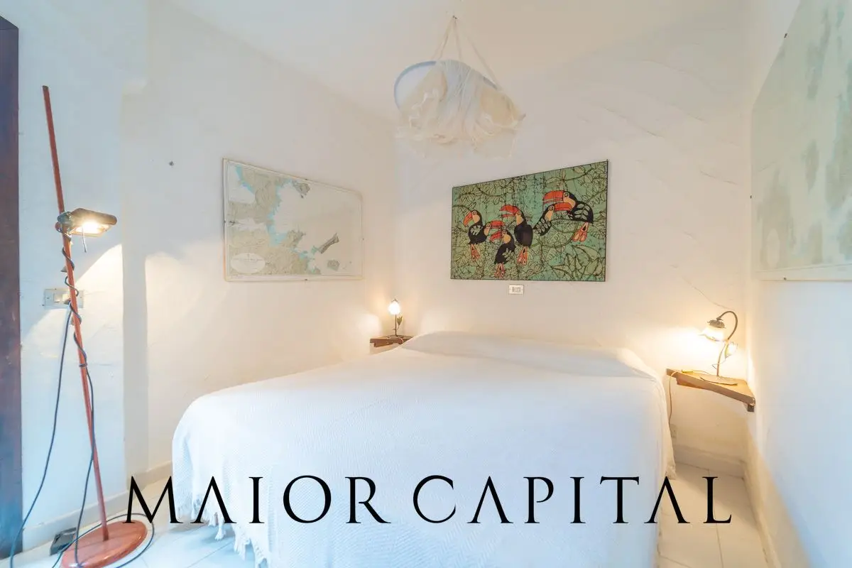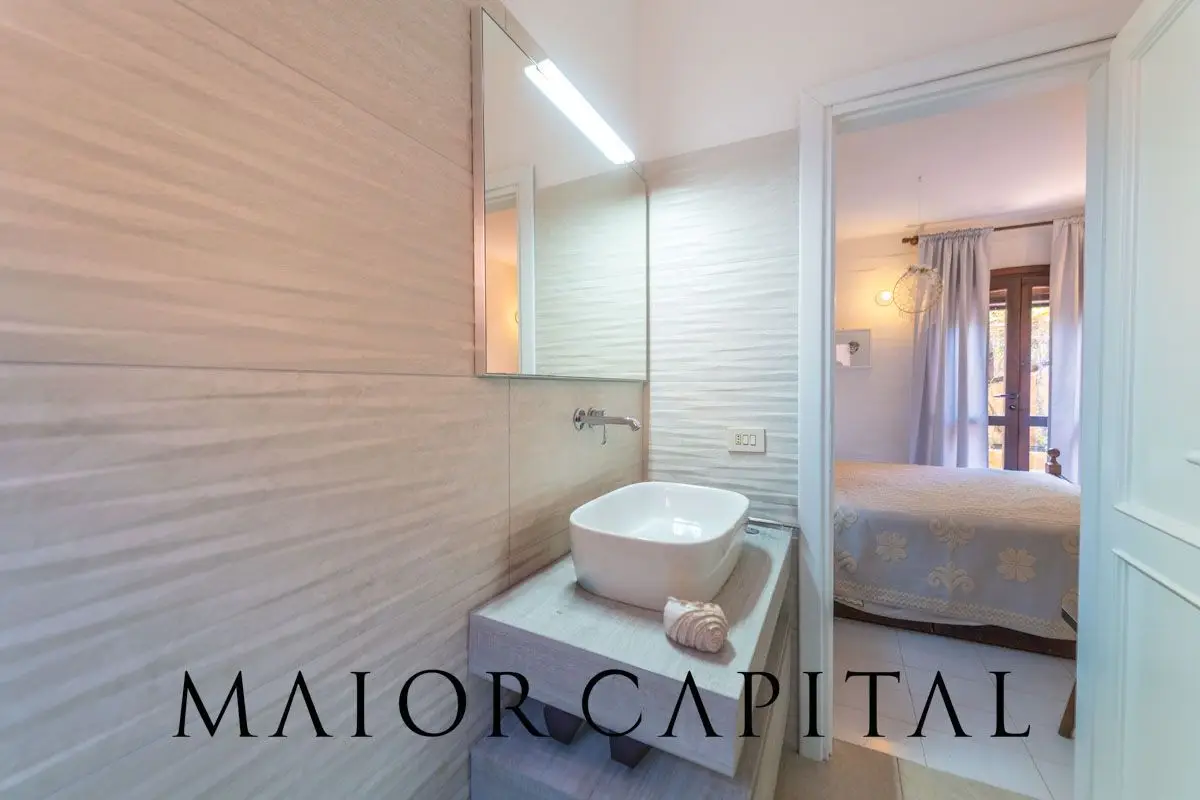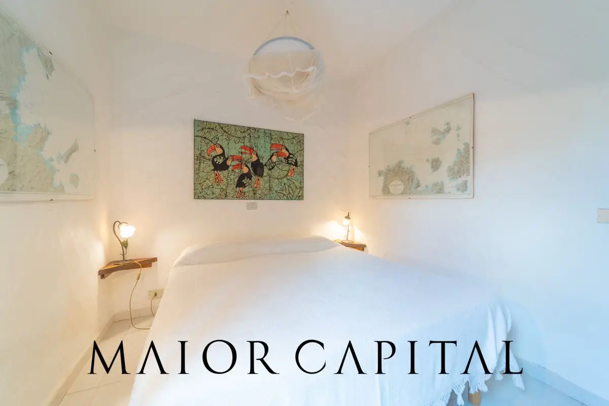 The home preserves the charm of 1980s Sardinian architecture, reinterpreted with tasteful updates. Interiors are spacious and airy, with openings that enhance natural light and provide a seamless connection with the outdoors. The sleeping area includes three bedrooms and two bathrooms, recently renovated with high-quality materials and modern finishes, ideal for hosting family or guests in total comfort.