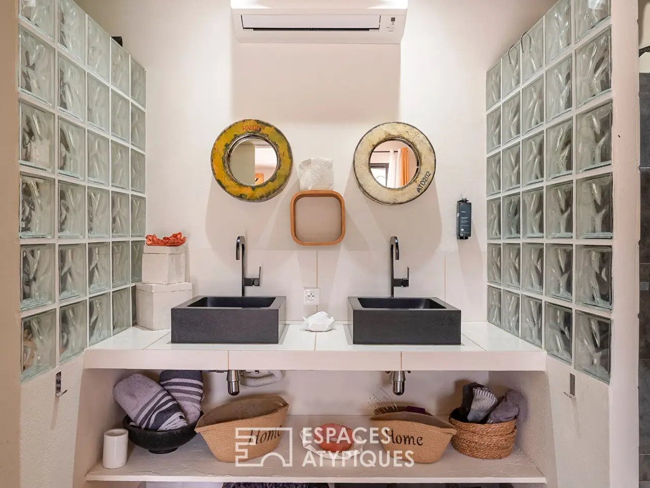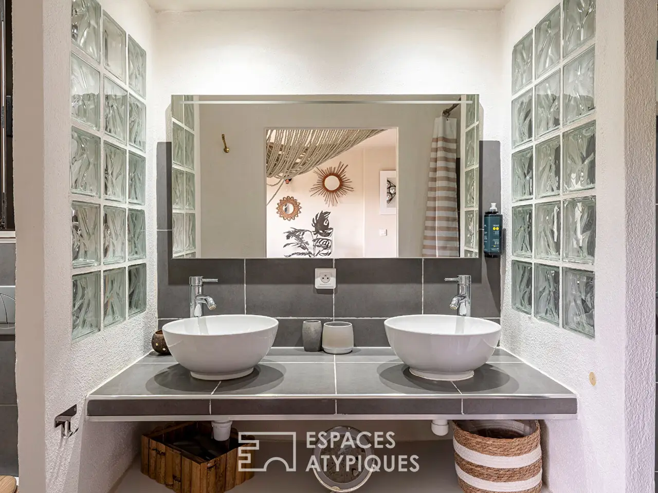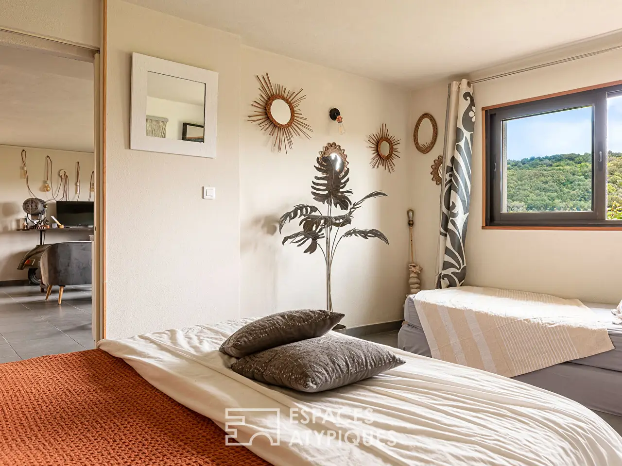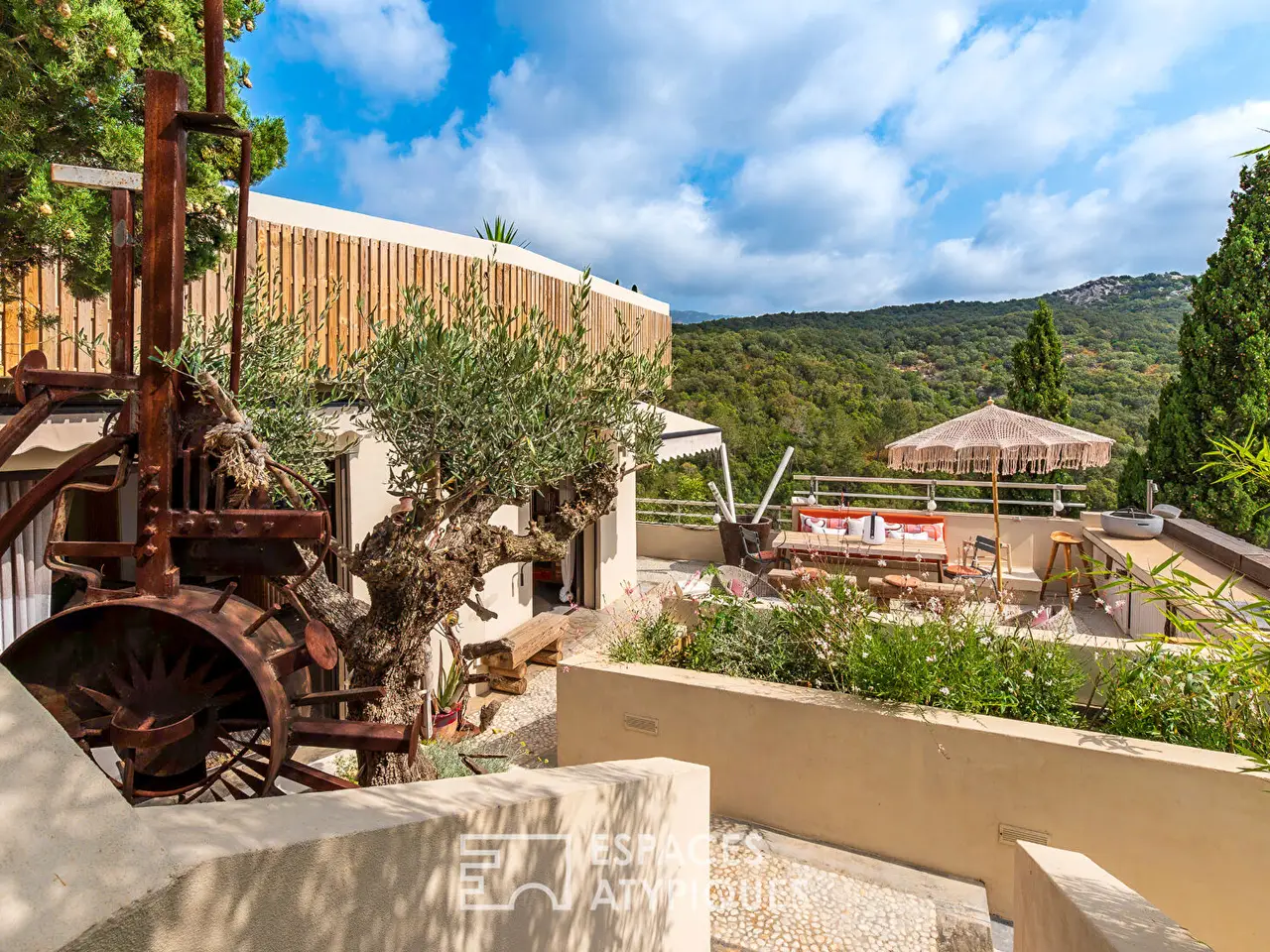 Sea and scrubland view - contemporary house in Porto-Vecchio In the heart of a green setting, on the emblematic Ospedale road, a few minutes from Porto-Vecchio, this contemporary house of 183 sqm (155 sqm living space) is nestled on the hillside, in an intimate and panoramic setting. The architecture is based on raw lines, highlighted by carefully selected materials. The aesthetic approach combines contemporary purity and bohemian chic spirit, in a setting open to the landscape. The whole blends into the vegetation of the maquis, without artifice, with controlled elegance. On the main level, a vast living room opens to the exterior through large windows. Natural light structures the volumes with fluidity. A fitted kitchen extends the living space, two master suites, an office and a separate studio complete this level. The upper floor accommodates three bedrooms, accompanied by a bathroom and separate toilets. Below, a two-room, self-contained apartment echoes Corsican hospitality. Ideal for hosting guests or creating a secluded, personal space, it adds flexibility and modularity to the ensemble. The infinity pool nestles at the edge of the terrace, offering a spectacular view of the Gulf of Porto-Vecchio. The view plunges over the ridges, escapes towards the sea, and disappears into the horizon, in a silence disturbed only by the surrounding nature. The property is part of a small, no-charge condominium complex, in a preserved environment where one can access the most popular beaches without the summer bustle. The perfectly maintained grounds include a parking area for five vehicles and a space dedicated to wintering a boat. This turnkey house combines comfort, discretion, and disconnection. It is aimed at aesthetes looking for an atypical property in one of the most sought-after areas of the Mediterranean. ENERGY CLASS: D CLIMATE CLASS: A Estimated average amount of annual energy expenditure for standard use, established based on energy prices for the year 2023: between 2540 and 3480 euros. REF. 11345 Additional information * 7 rooms * 5 bedrooms * Outdoor space : 927 SQM * 5 co-ownership lots * Property tax : 2 077 € Energy Performance Certificate Primary energy consumption d : 217 kWh/m2.year High performance housing