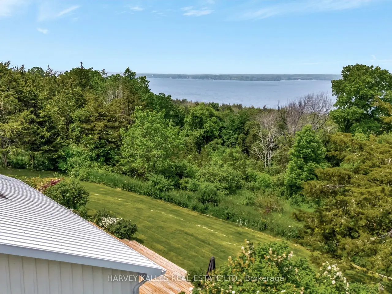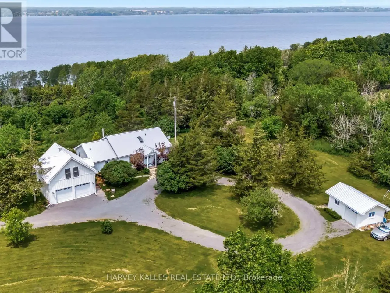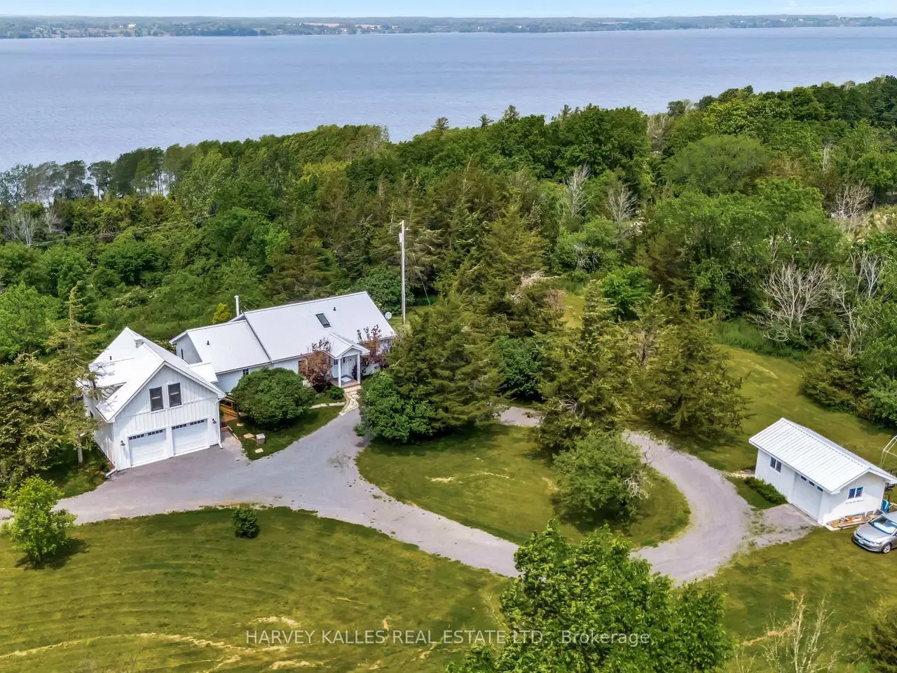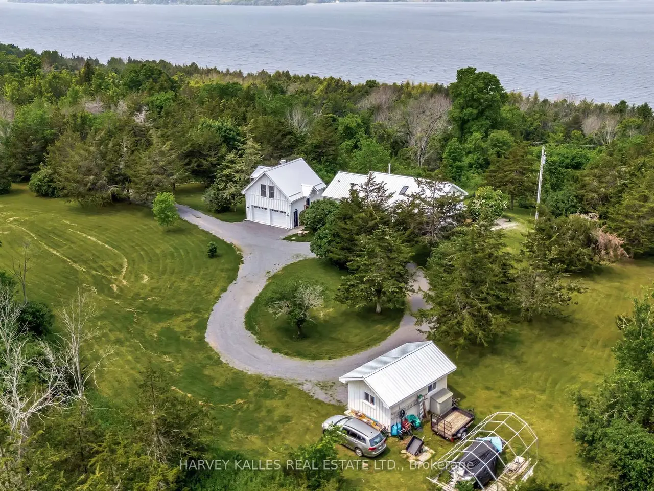 Escape to this stunning, private rural retreat with breathtaking water views laid out before you. Combining the charm of countryside living with plenty of space for guests, extended family, and even more could be developed here! Your retreat sits at the end of a private winding driveway up to the Main house. This plateau location shows off the Panoramic water views of Lake Ontario, East of Adolphus Reach from your 30 ft deck the width of the house. Spectacular sunsets and sunrises and silence. The Main house has dramatic vaulted ceilings and sunlight pours n the numerous windows. Large kitchen and living room anchor this two bedroom main house, with both an ensuite bathroom off primary bedroom, and a second 3-piece bathroom near the second bedroom. Steps out your front door is the (stylistically) matching but separate Annex house and garage. Two upstairs bedrooms and a 3 piece bathroom in the Annex. The third building off the circular drive is a Workshop with rollup door thru and everything else you need to the honey do list completed with ease. This 7 acre offering For Sale is actually two separate pins - both with RR2 zoning - allowing for up to 2 residences on each individual pin. Currently the adjoining lot is vacant. Sp enjoy your 2 large lots, or separately develop new buildings on the (now) vacant lot (subject to permits - buyer to do their due diligence). Whether seeking a peaceful escape or the perfect spot to entertain, this idyllic location provides an unbeatable waterview backdrop for every season.