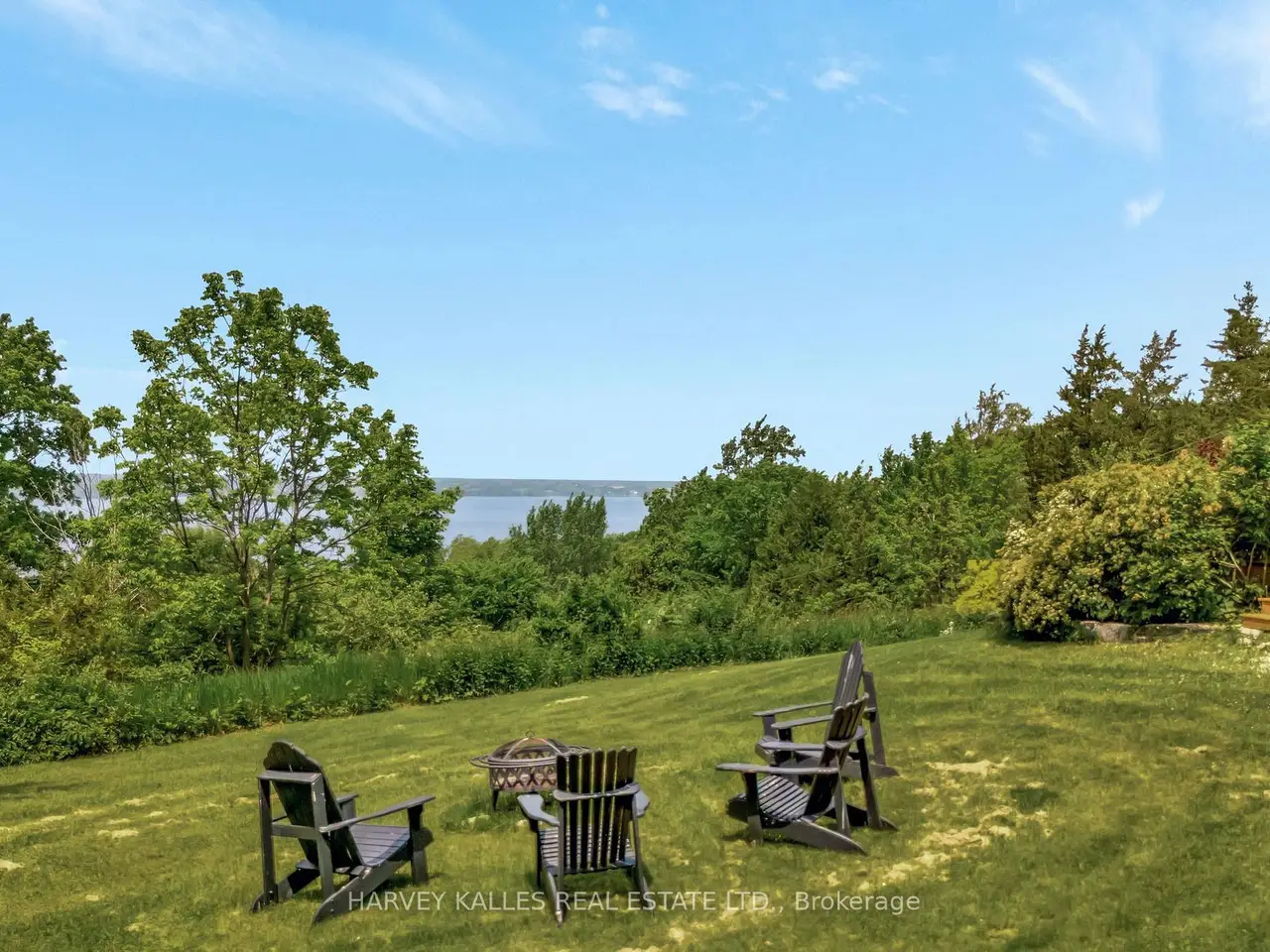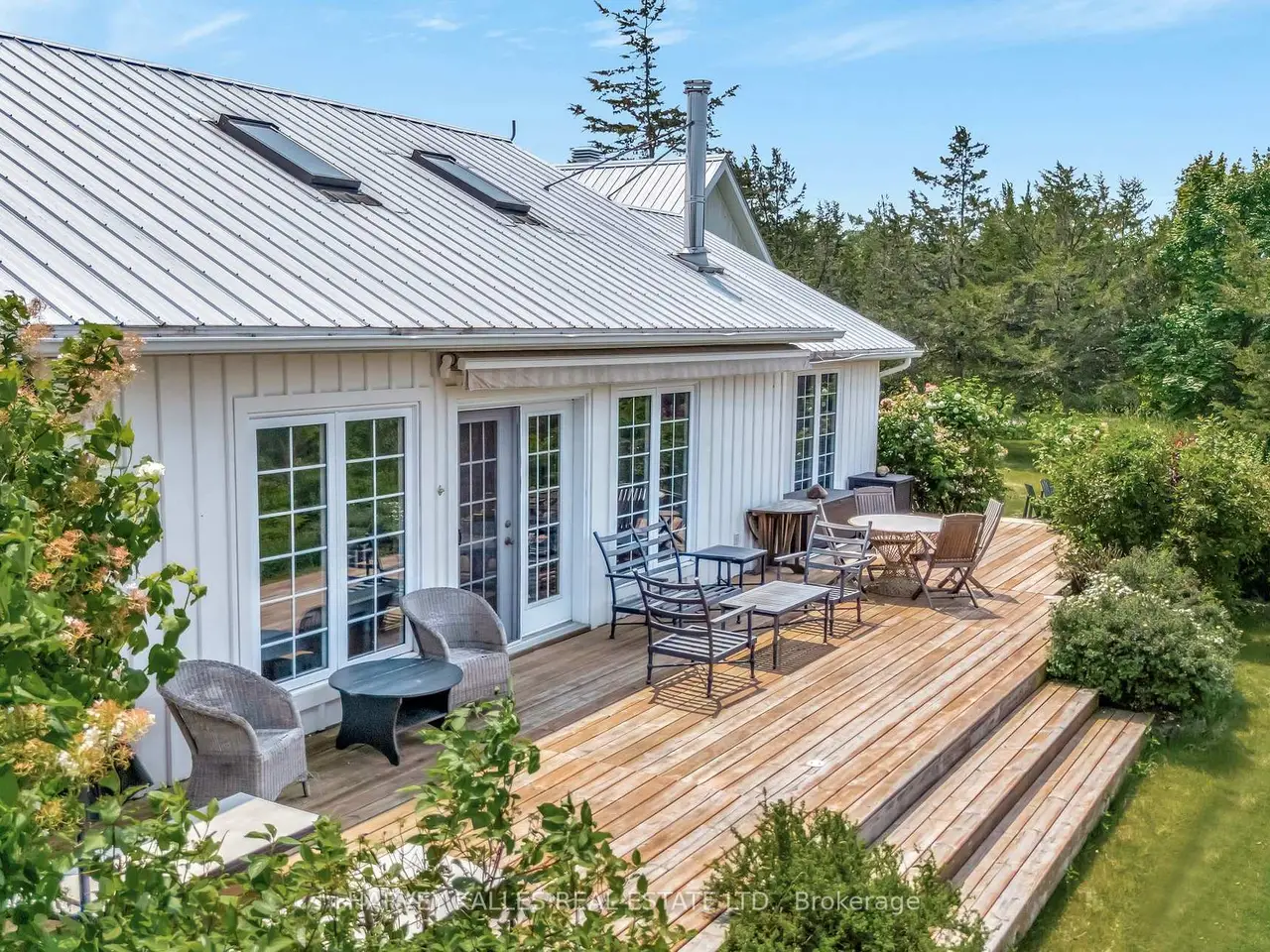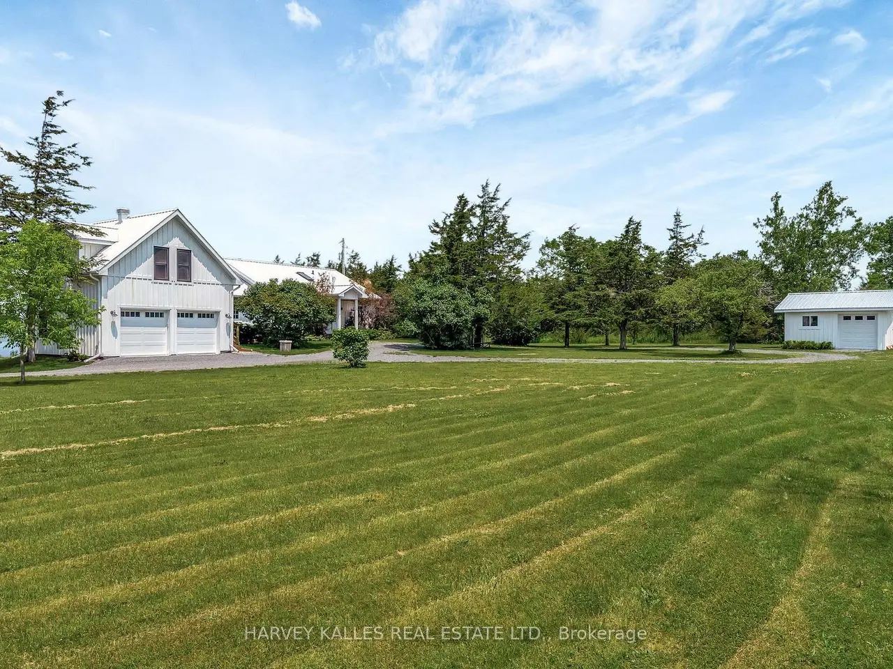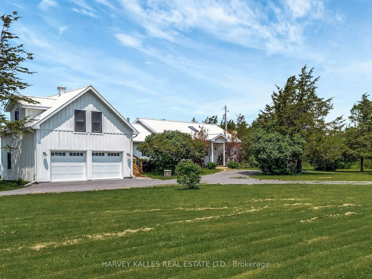 Escape to this stunning, private rural retreat with breathtaking water views laid out before you. Combining the charm of countryside living with plenty of space for guests, extended family, and even more could be developed here! Your retreat sits at the end of a private winding driveway up to the Main house. This plateau location shows off the Panoramic water views of Lake Ontario, East of Adolphus Reach from your 30 ft deck the width of the house. Spectacular sunsets and sunrises and silence. The Main house has dramatic vaulted ceilings and sunlight pours n the numerous windows. Large kitchen and living room anchor this two bedroom main house, with both an ensuite bathroom off primary bedroom, and a second 3-piece bathroom near the second bedroom. Steps out your front door is the (stylistically) matching but separate Annex house and garage. Two upstairs bedrooms and a 3 piece bathroom in the Annex. The third building off the circular drive is a Workshop with rollup door thru and everything else you need to the honey do list completed with ease. This 7 acre offering For Sale is actually two separate pins - both with RR2 zoning - allowing for up to 2 residences on each individual pin. Currently the adjoining lot is vacant. Sp enjoy your 2 large lots, or separately develop new buildings on the (now) vacant lot (subject to permits - buyer to do their due diligence). Whether seeking a peaceful escape or the perfect spot to entertain, this idyllic location provides an unbeatable waterview backdrop for every season.