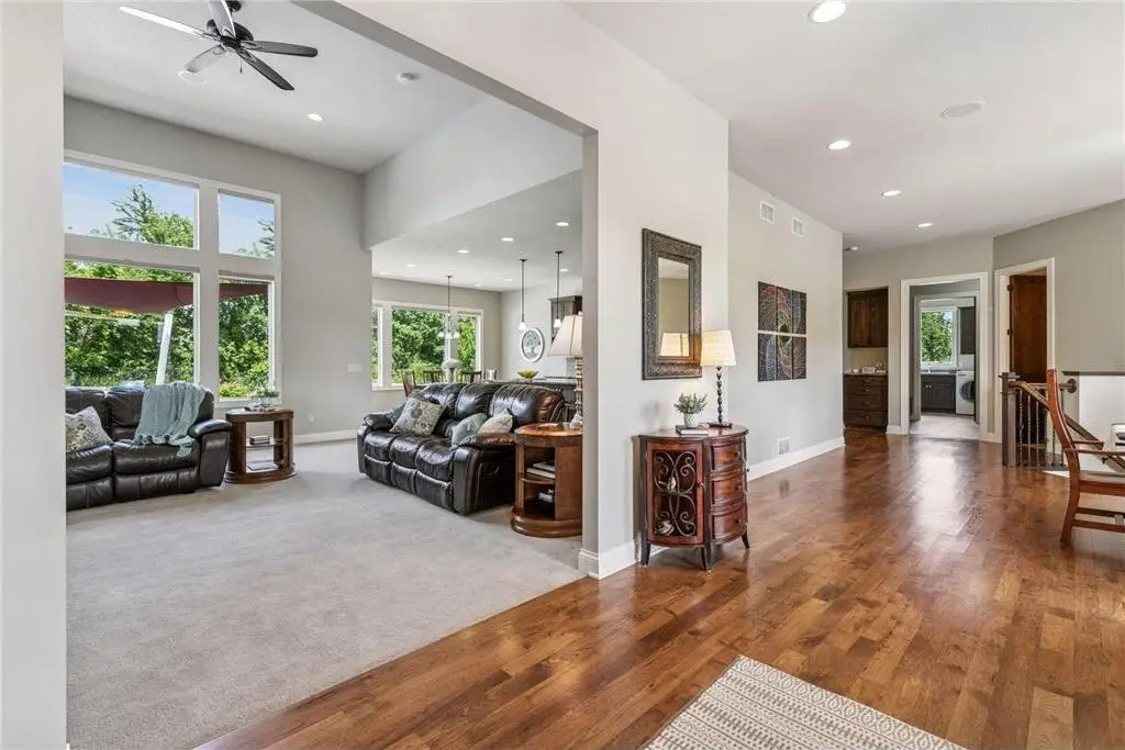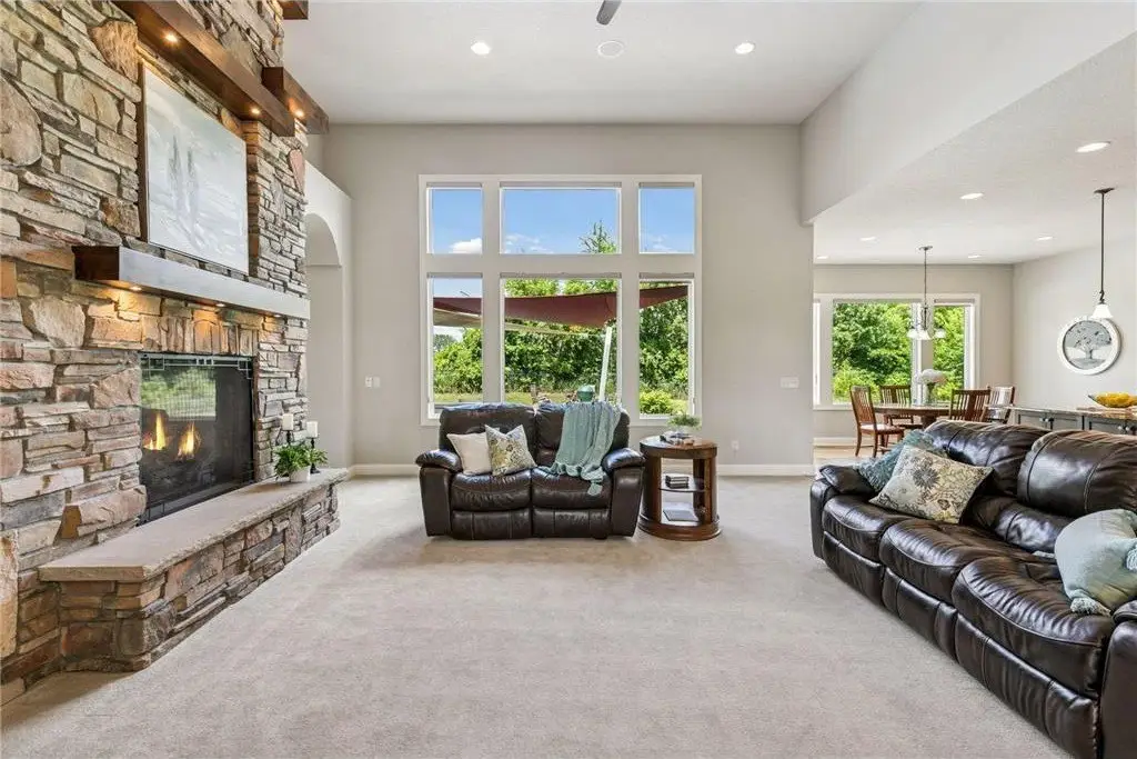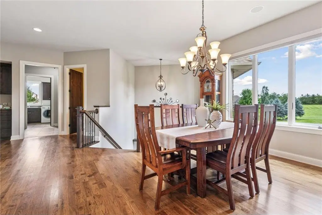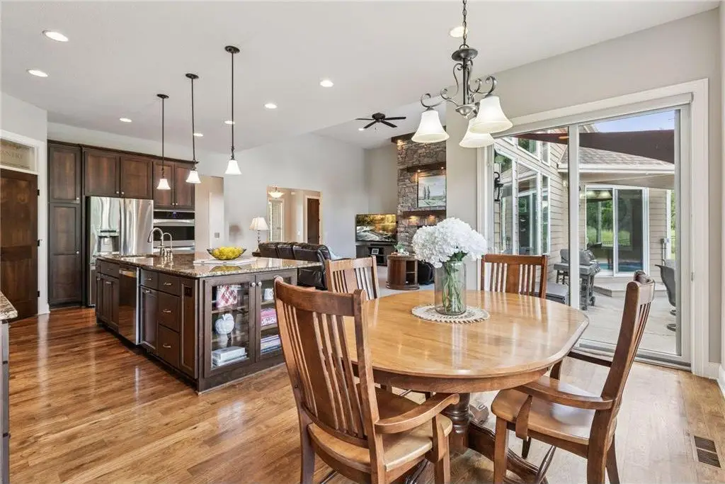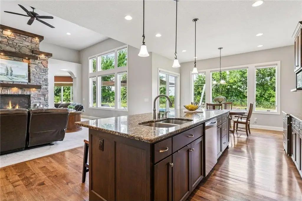 Experience refined luxury in this custom walkout rambler designed and built by JB Woodfitter in 2012, set on 2.51 acres of manicured grounds and prairie beauty. This 4BR/5BA masterpiece offers soaring ceilings, dramatic windows, and high-quality finishes throughout. Enjoy a gourmet kitchen with abundant Knotty Alder cabinetry, oversized island with bar seating, solid surface counter tops, tile backsplash, stainless steel appliances, double wall ovens, and a walk-in pantry. A grand two-story great room with a floor-to-ceiling fireplace with accent down lighting presents an impressive focal point. Gorgeous and inviting hearth room with a heated tile floor, cosmopolitan fireplace, and wet bar designed to offer a seamless indoor-outdoor entertaining space. A convenient 3/4 bath located near the hearth room was designed for a quick rinse after a dip in the pool. Walkout from the hearth room to a heated in-ground pool, sprawling patio, and firepit to unwind and entertain in style. A spacious main level office with French doors and full wall of built-ins welcomes a private work from home space. This lovely home welcomes both formal and in-formal dining spaces, perfect for large gatherings. The main-level primary suite connects to a spa-like bath, complete with a steam shower, that adjoins the laundry for your added convenience. Enter from the garage into a fabulous mud room with a tile floor, built-in lockers and closet for everyday storage. A wide staircase leads you to this homes equally impressive lower level that boasts a spacious family room with a dramatic corner fireplace, billiard area, stunning wet bar, craft/flex room, three bedrooms (one Jack-n-Jill style that share a 3/4 bath) and a separate third bedroom that walks through to a sparkling full bath, plus a lower 2+ garage for all your toys. The upper level three car garage is angled, with an epoxy floor and floor drains, built-in storage cabinetry, (2) 220-volt electric charging stations and a convenient side service door. Surrounded by estate homes and tranquil views, this home blends country serenity with city convenience. Nearby Legends Golf Course offers a challenging game, and a fabulous dining and social experience. This highly sought after neighborhood attends highly sought after Lakeville schools and is not part of the Scottview Estates homeowner's association. Go ahead and fall in love with this spectacular home - its easy to do here.