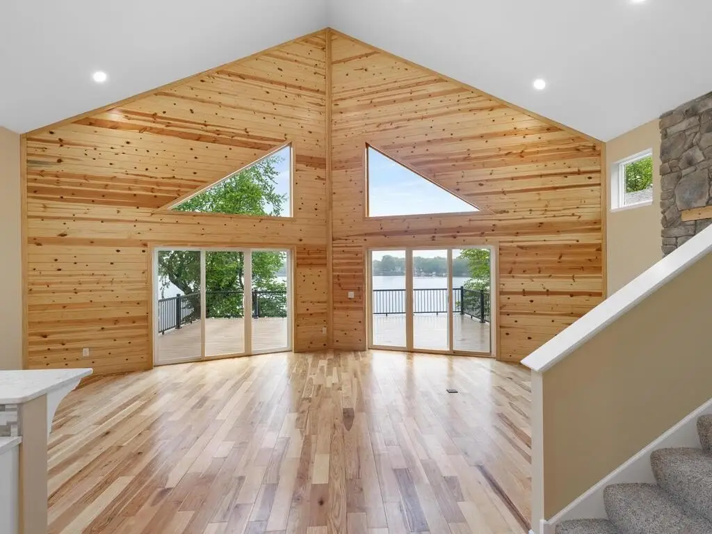 Experience luxury living at its finest with this new construction home on the pristine shores of Spring Lake. Offering nearly 5,000 sq. ft. of expansive living space, this home features 2 bedrooms on the main floor, including the luxurious primary suite, plus 2 additional bedrooms on the upper level. The open-concept main floor boasts vaulted ceilings, wood accents, and a floor-to-ceiling stone fireplace, creating a warm and inviting atmosphere. The spacious kitchen with a large center island flows into the great room and out to a large Trex deck, offering sweeping lake views. Upstairs, you'll find a loft area perfect for gaming or study. The lower level is an entertainer's dream with a 12' cedar ceiling, in-floor heating, an indoor heated pool, sauna, wet bar, and direct access to the lakefront patio. Above the garage, a bonus room offers endless possibilities, with easy access via spiral staircase or side garage door. Just minutes from Prior Lake Schools, parks, and year-round recreation, this home provides the ultimate lakefront lifestyle.