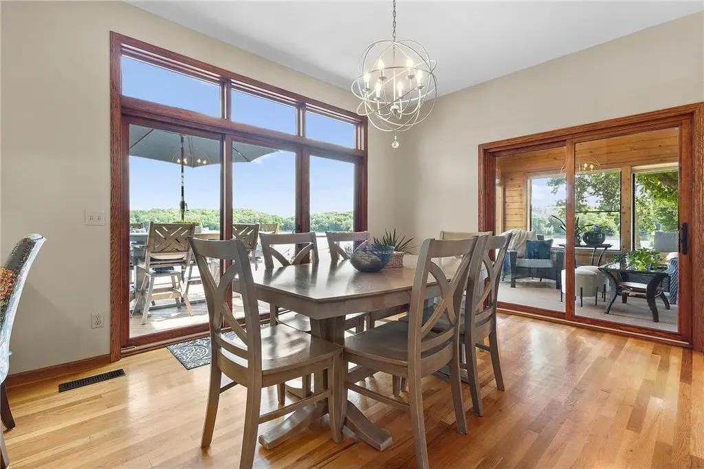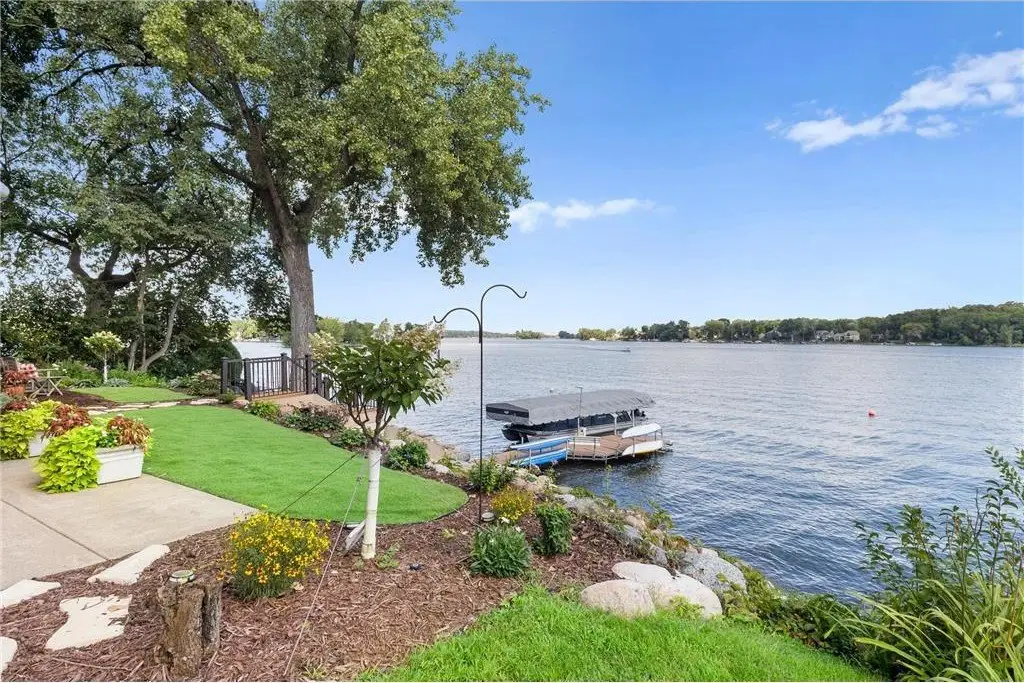 Spectacular lakeshore retreat with 99 feet of sandy shoreline and panoramic sunrise views! Nestled in a premier location on the lake, this walkout two-story home offers an incredible vantage point for 4th of July fireworks, big water views, and peaceful privacy. The heart of the home features a dramatic two-story great room with expansive windows that frame the lake and fill the space with natural light. Multiple levels provide versatile entertaining spaces, including a three-season porch, perfect for morning coffee or evening gatherings. Whether you're lounging by the shore, taking in the sunrise, or hosting family and friends, this property is designed for year-round enjoyment of lake life. Don't miss this rare opportunity to own one of the most desirable lots on the lake!