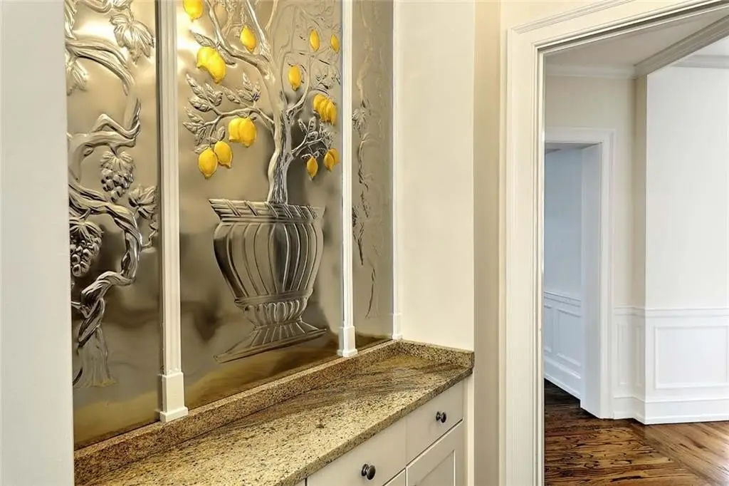 • Quartz counters with custom embossed backsplash