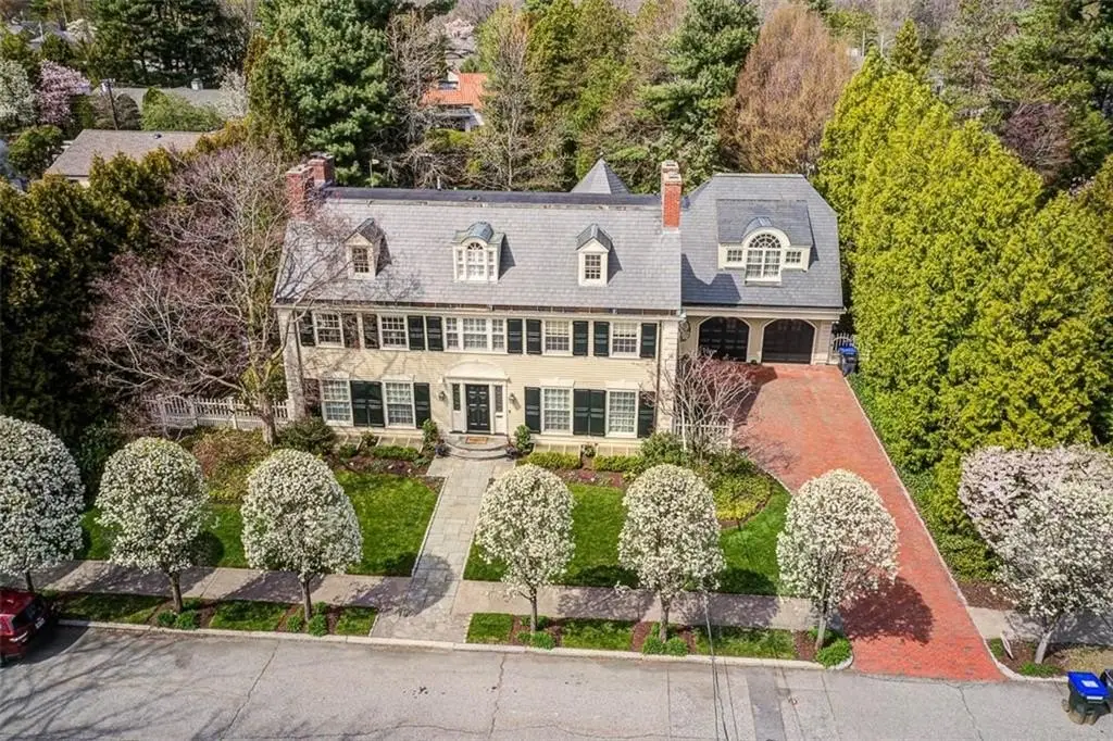 Exquisite Colonial Revival set among some of the grandest homes in the city's Upper Elmgrove neighborhood. This private mini estate has a half-acre of parklike grounds. Step into the grand entry hall and be immediately impressed by the gracious staircase extending three levels. To the right is the dining room with raised paneled walls, corner China cabinets and floor to ceiling windows. To the left is the living room where the raised paneled walls and floor to ceiling windows continue. A fireplace with custom surround creates a stunning focal point. Through a set of double doors is an expansive family room with entertainment center and a curvilinear bay of windows with views to the garden. The showstopping kitchen is immediately adjacent with a large center island, top of the line appliances, quartz counters with a custom embossed backsplash and lovely breakfast room. A butler's pantry, powder room and mudroom leading to the garage complete this level. Upstairs is the newly redesigned primary suite with custom built-ins, walk in closet and a spa like bath with a dual vanity and a glass enclosed shower. A second bedroom suite, laundry room, two additional bedrooms sharing a full tile bath and a private home office finish this floor. The third level has two more bedrooms and full tile bath. Down to the lower level is a rec room, gym and full bath. Outside the blue stone patio overlooks the expansive grounds. All just steps to shopping, parks and recreation. Unparalleled.