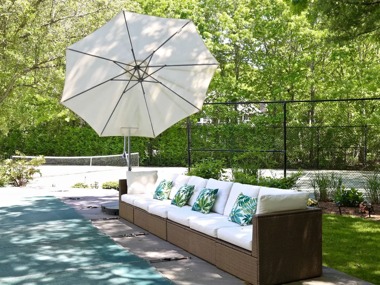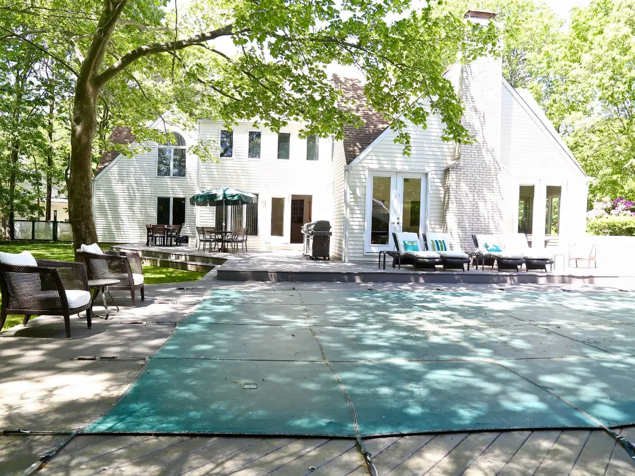 In a lovely location, in the village of Quogue, resides this 4 bedroom, 4.5 bath Contemporary. The home has an open living room, nice-sized kitchen, and dining room. The primary suite has a cozy loft and an enclosed porch overlooking the pool. The private yard features a large deck surrounding the heated pool, and a Har-Tru tennis court. Only minutes to the beach and village. Listing ID: 756412